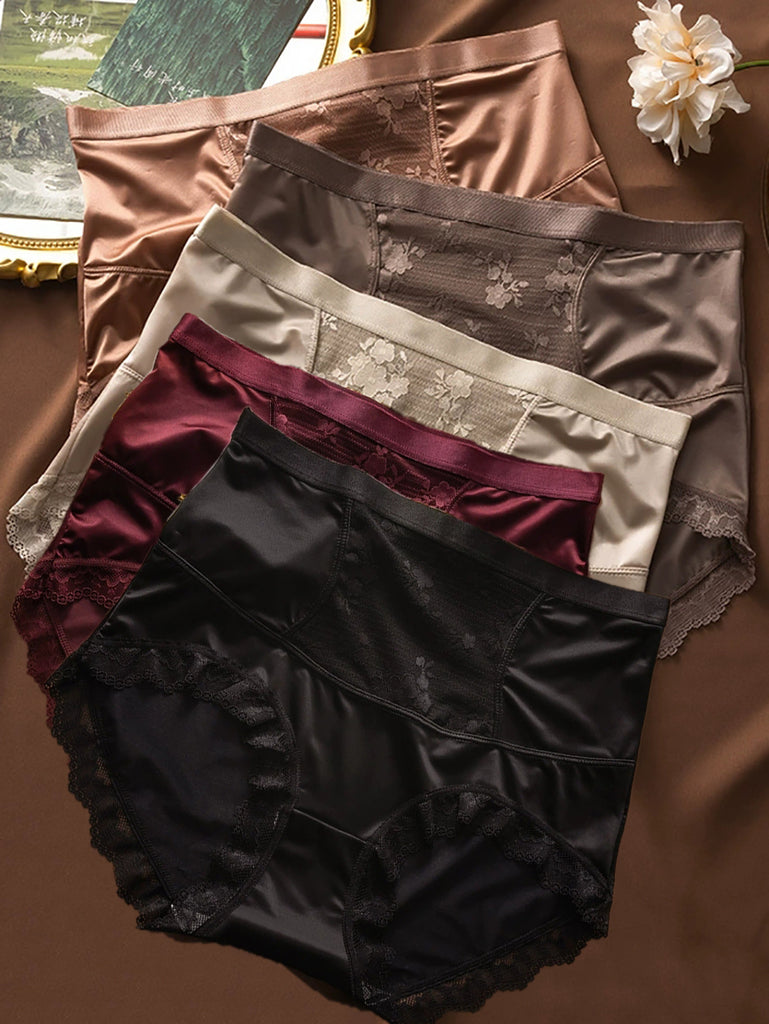 5 stk. højtaljede undertøj til kvinder med kunstnerisk blondeprint