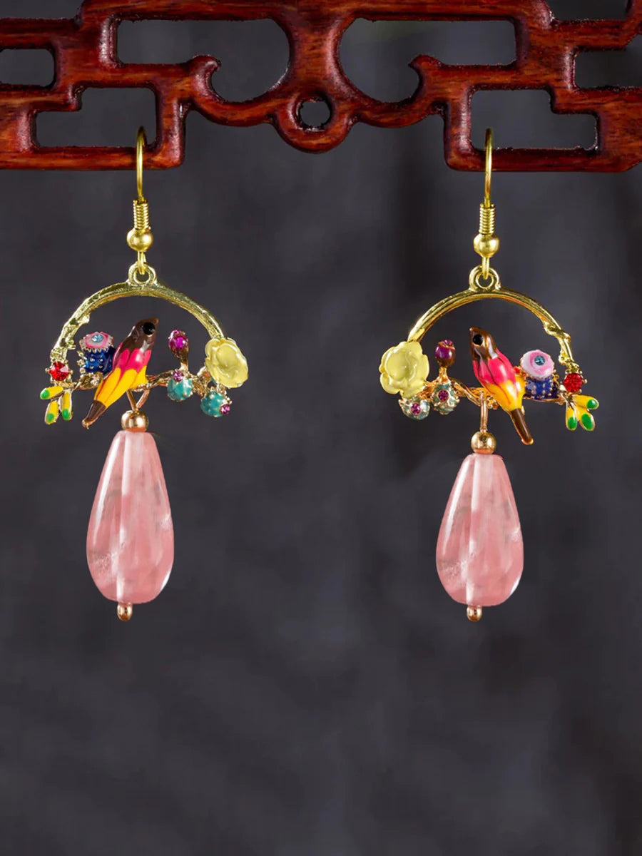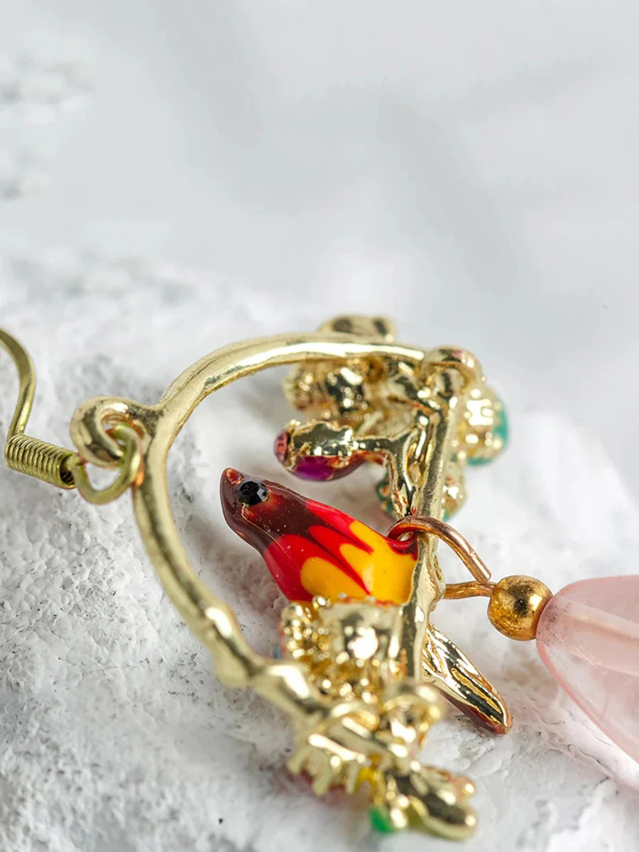 Fugl og blomst Chalcedon vedhæng øreringe