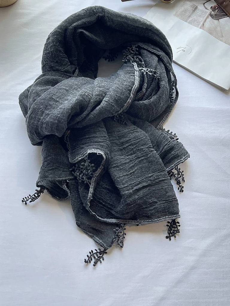Kunstnerisk tørklæde i ren farve med blonder og splejset sjal til kvinder