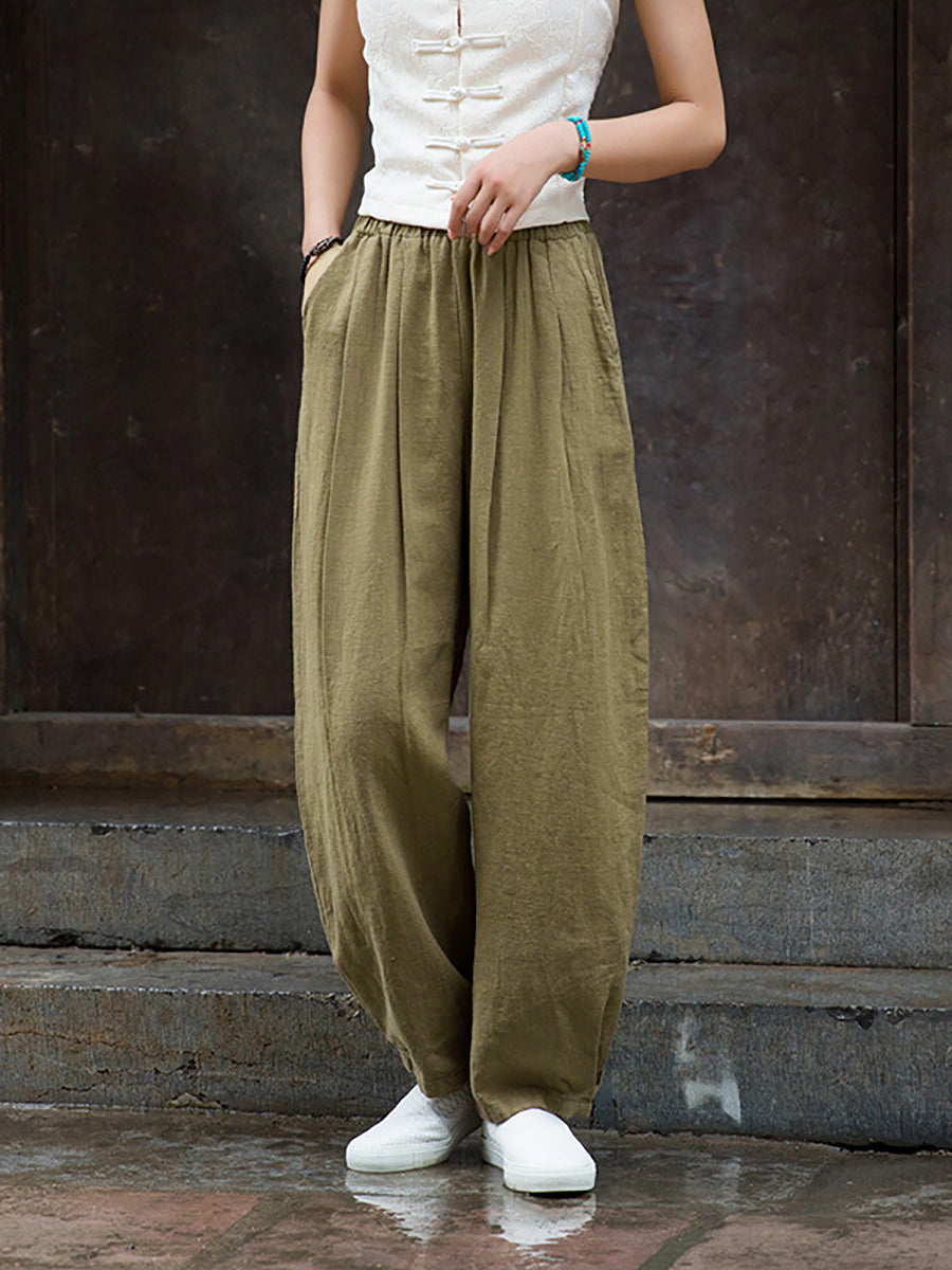 Disse retro-stil bukser har en elastisk talje og et solidt mønster, hvilket gør dem til et ideelt valg til fuld længde. Med tilføjelsen af lommer og en perfekt pasform til efterår og vinter er disse bukser et must-have til enhver garderobe.