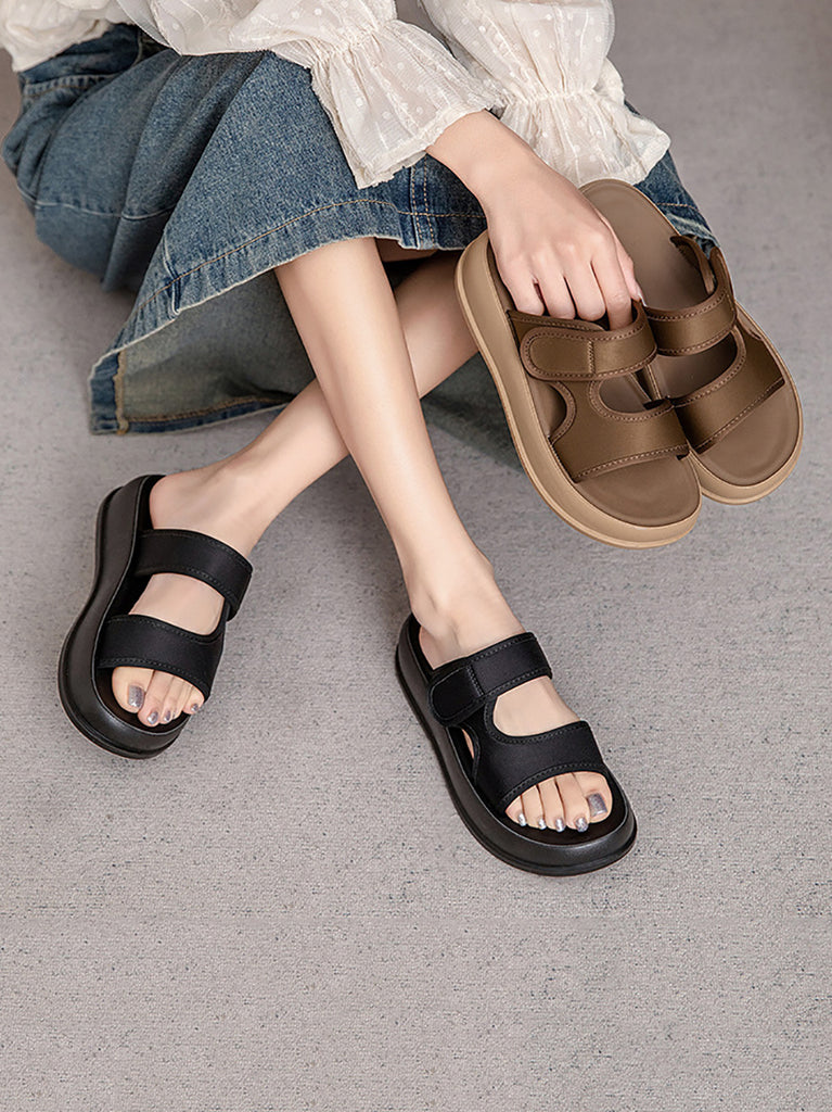 Kvinder Sommer Casual Ægte Læder Platform Tøfler