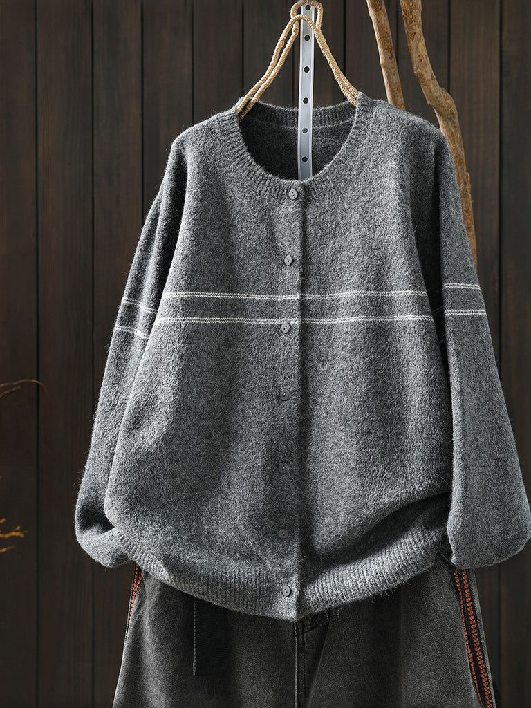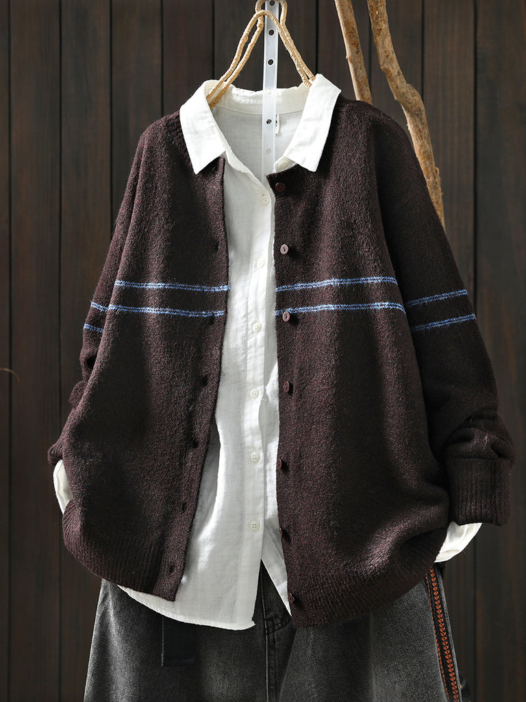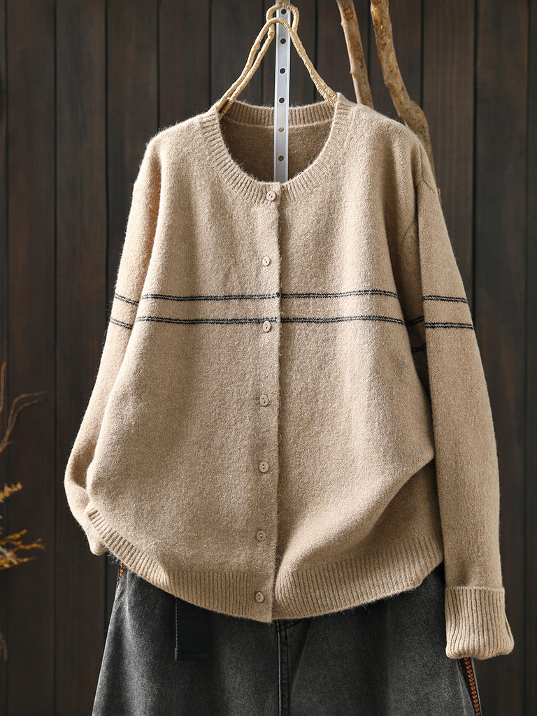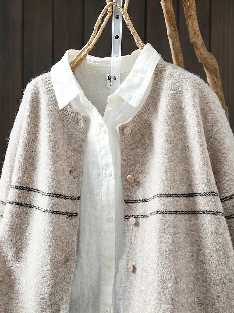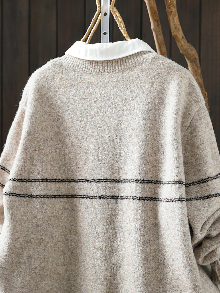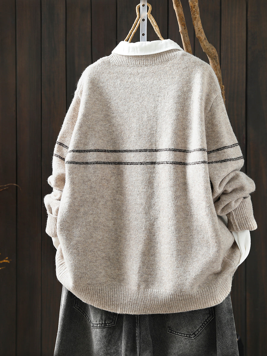 Kunstnerisk stribet strikket sweater til kvinder efterår