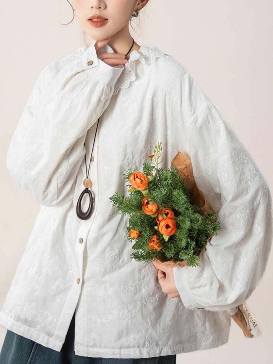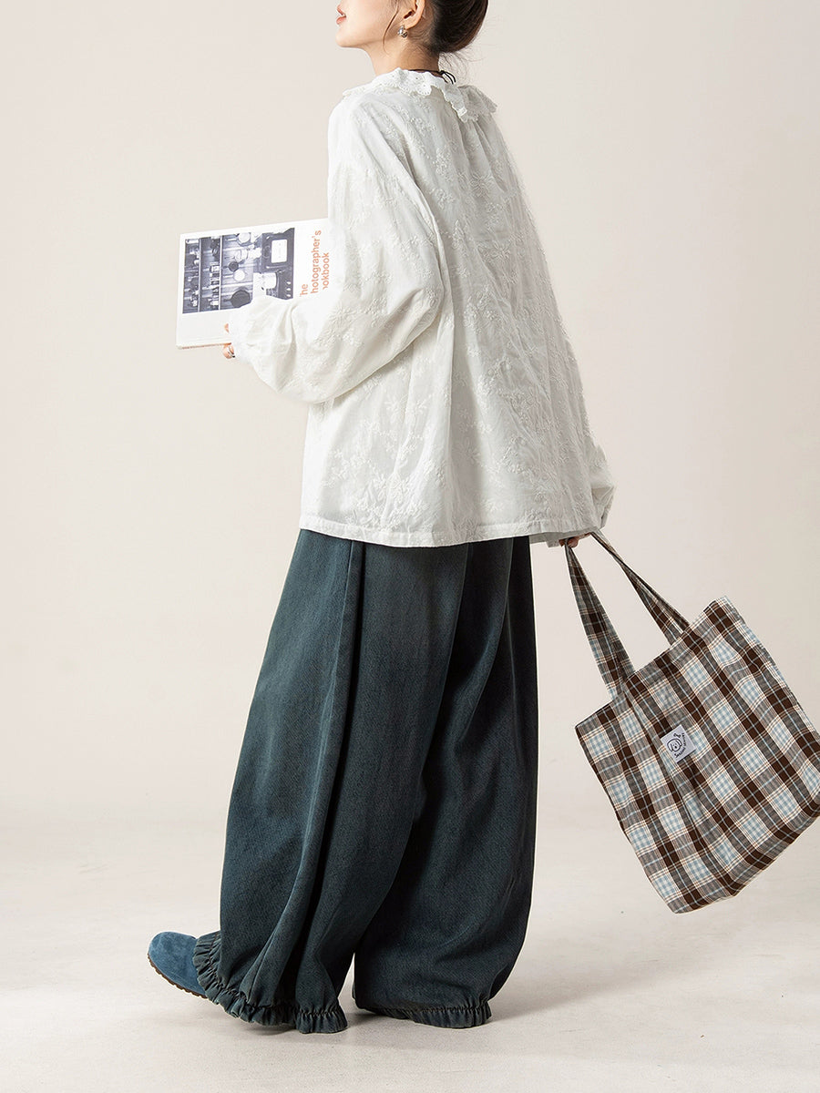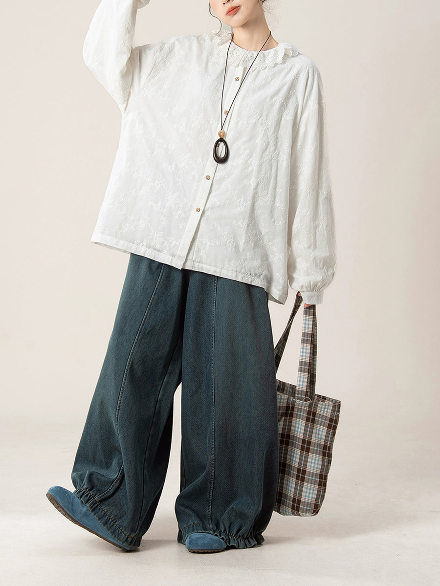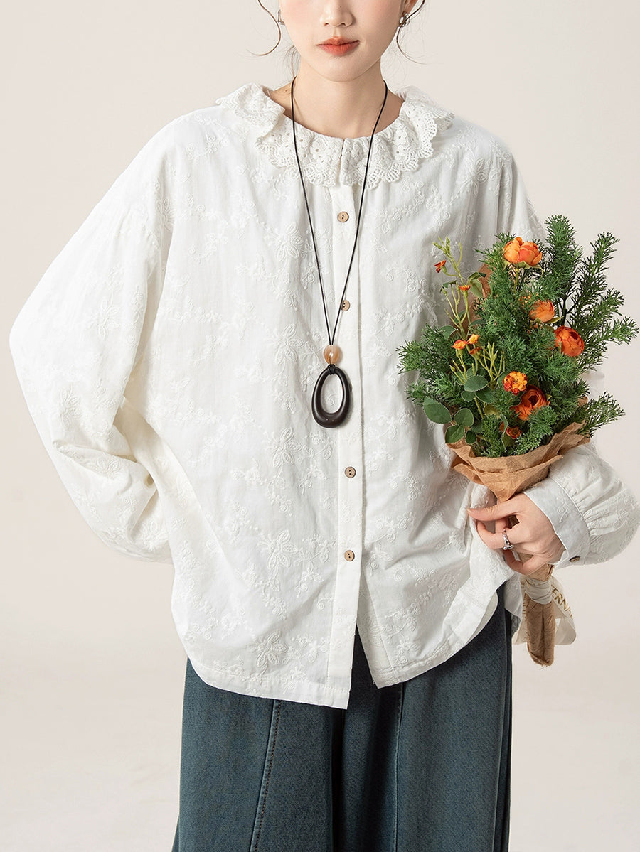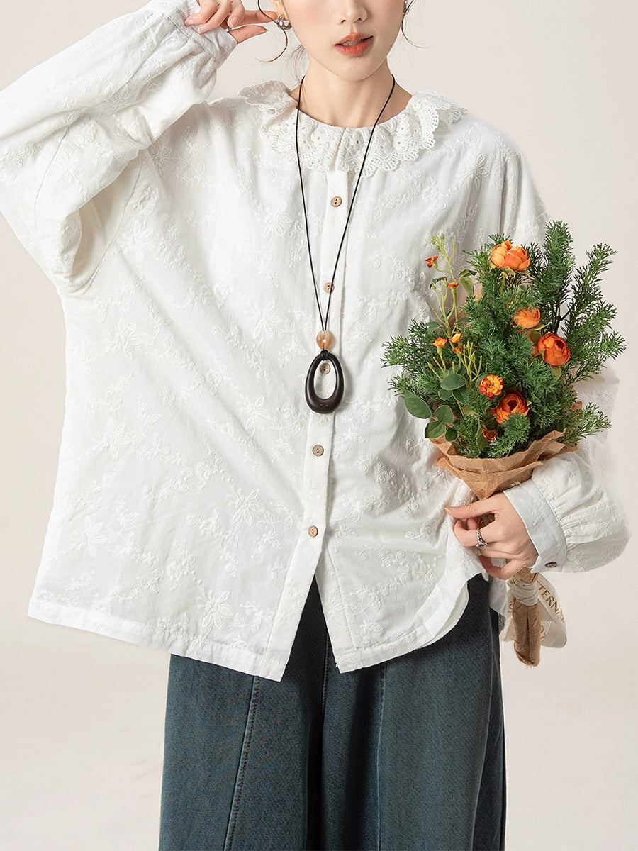 Kunstnerisk efterårsskjorte med broderi og nedadgående krave til kvinder