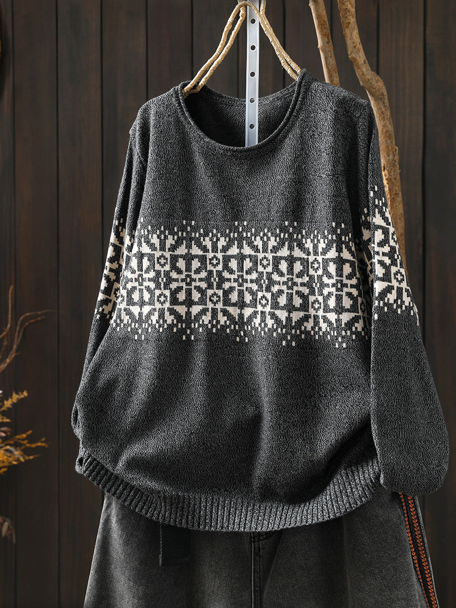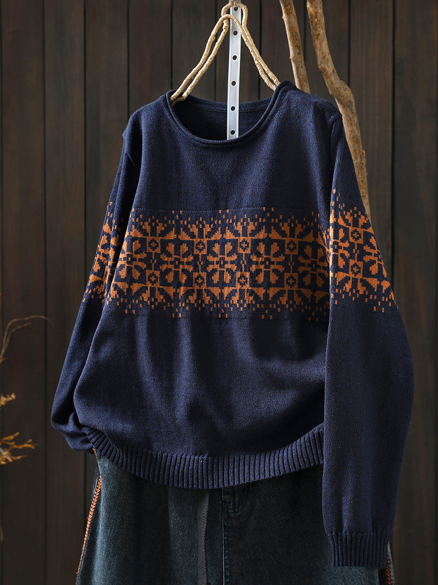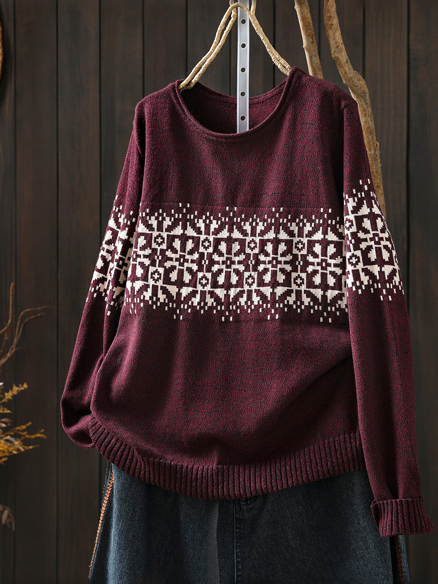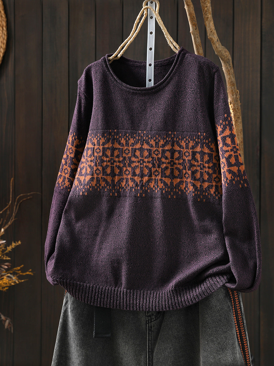 Kvinder Efterår Kunstnerisk Blomsterstrikket O-hals Sweater