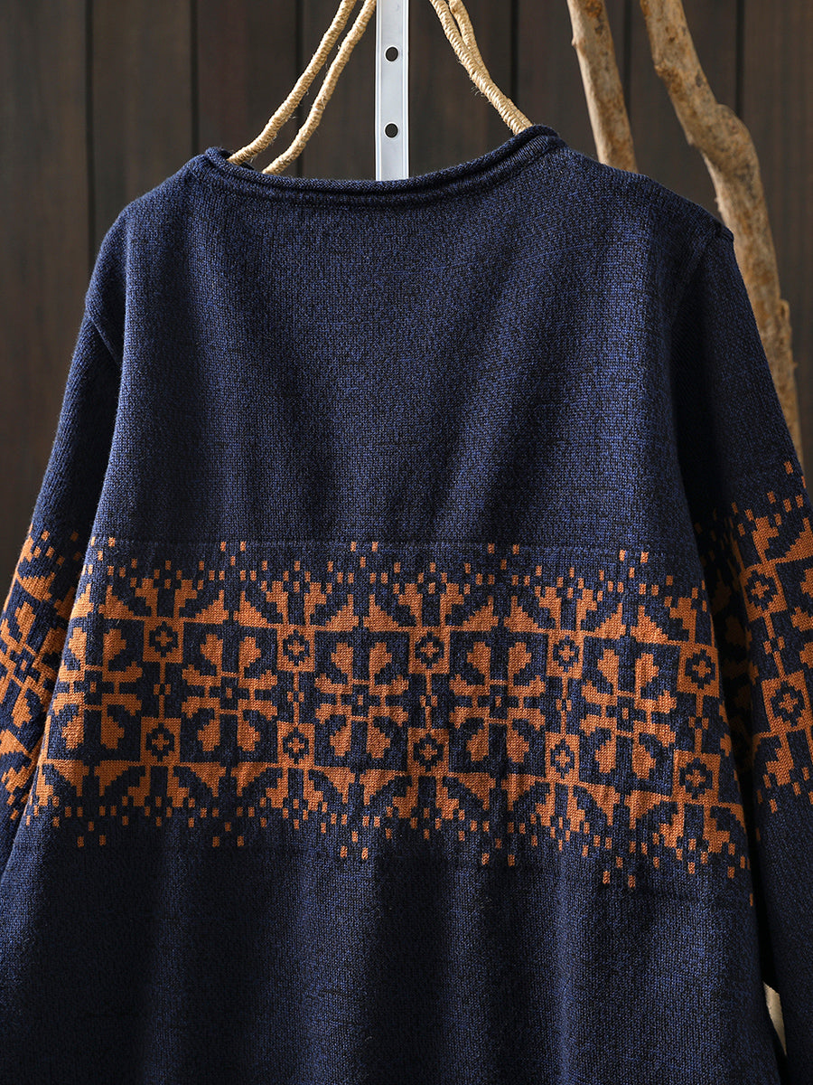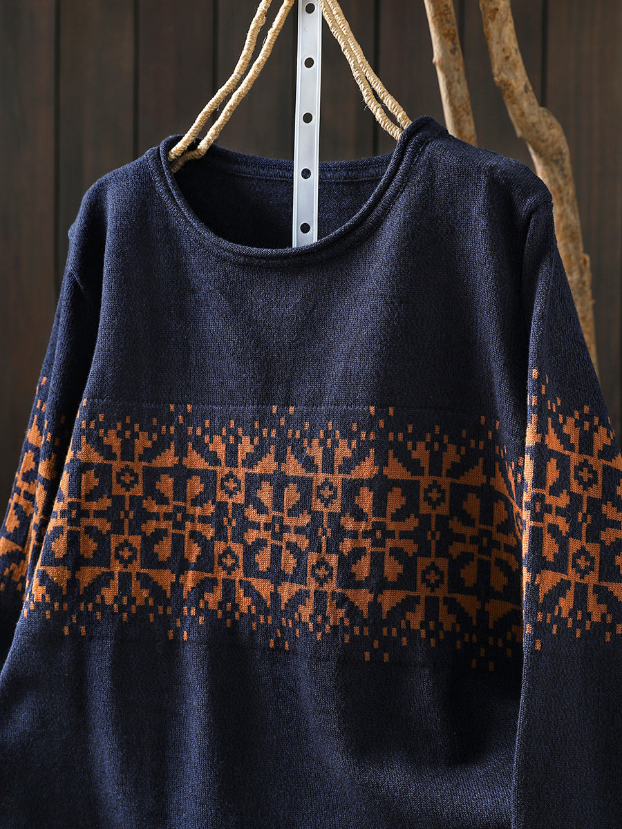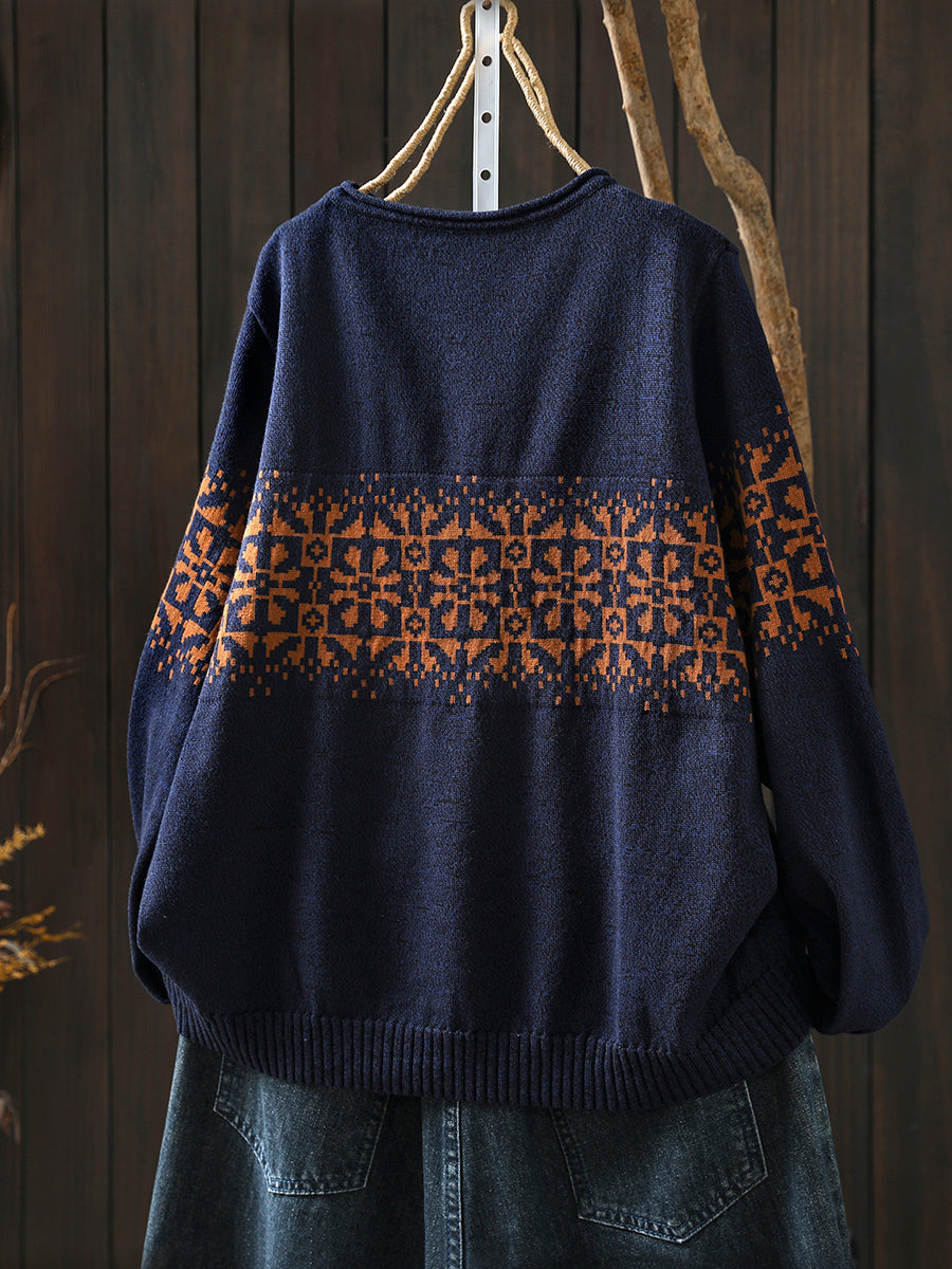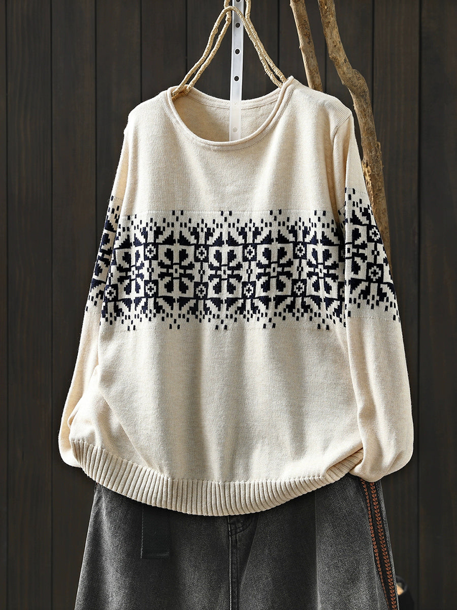 Kvinder Efterår Kunstnerisk Blomsterstrikket O-hals Sweater