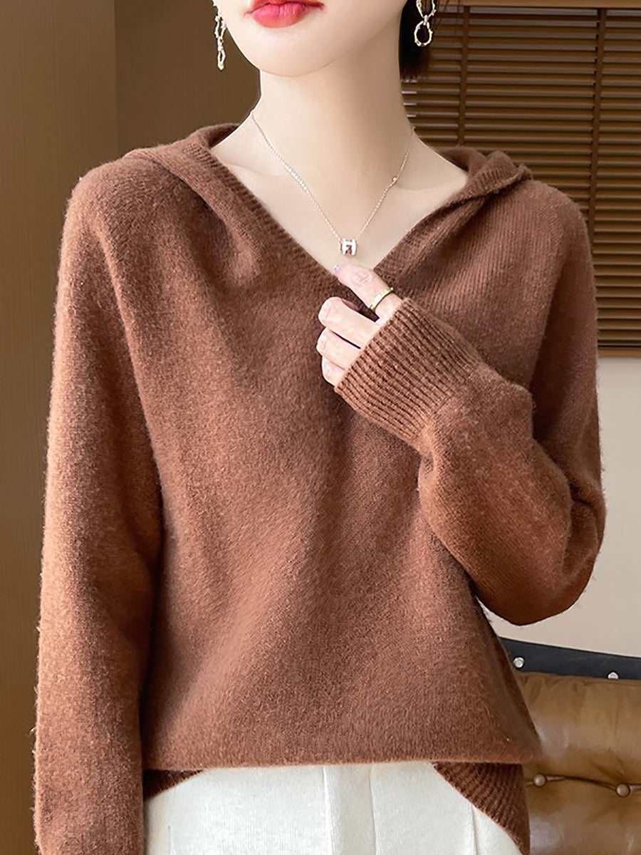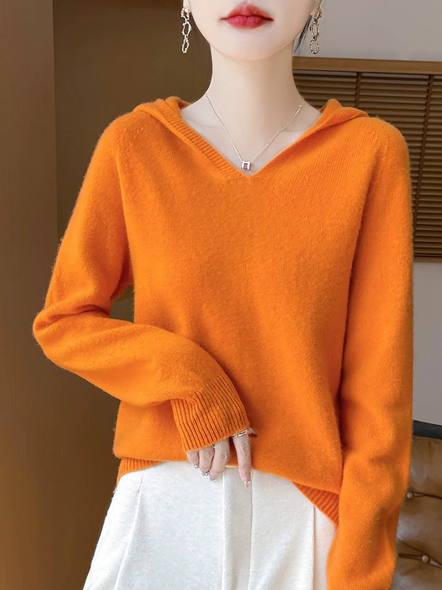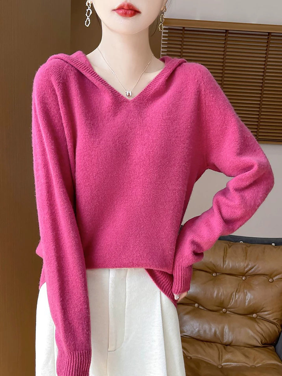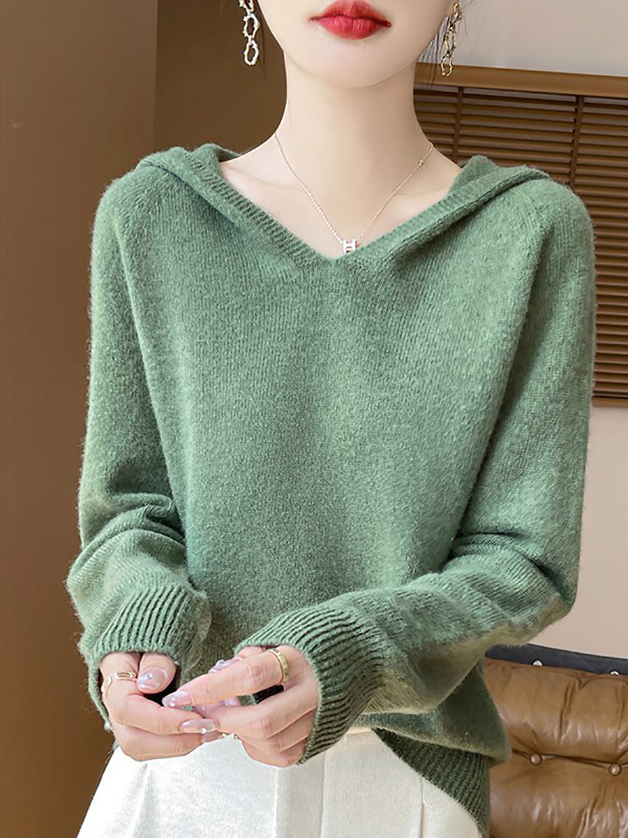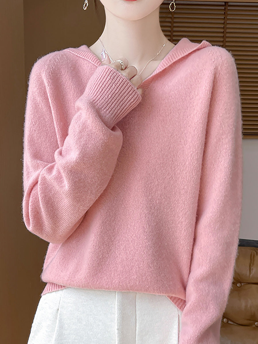 Kvinder Efterår Kunstnerisk Ren Farve Hættetrøje