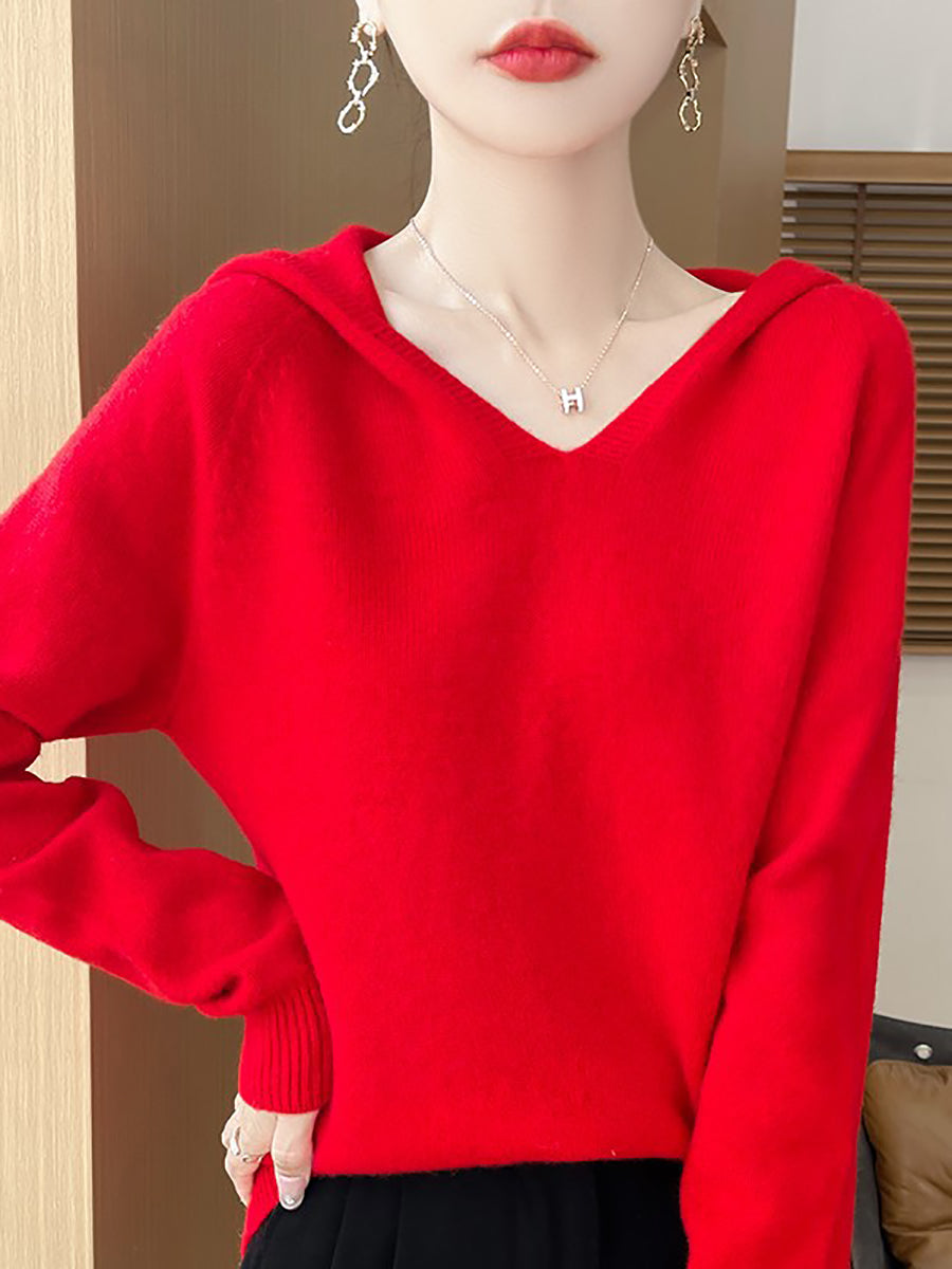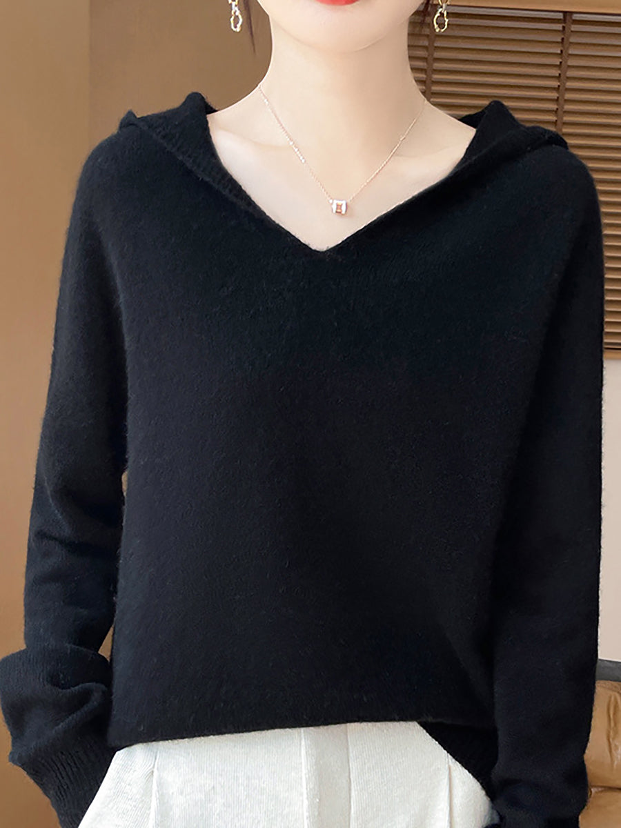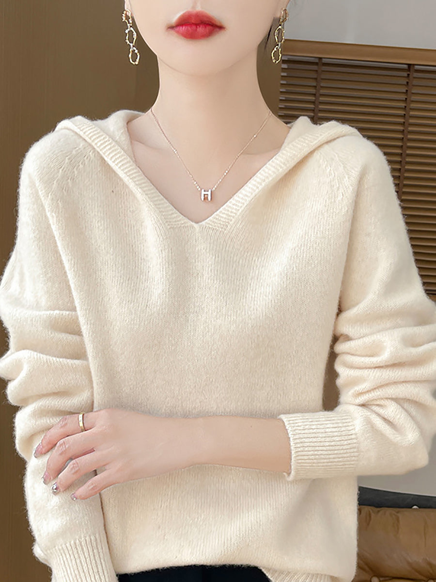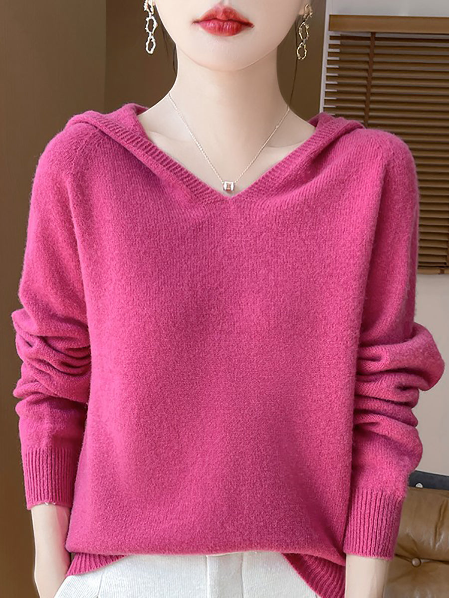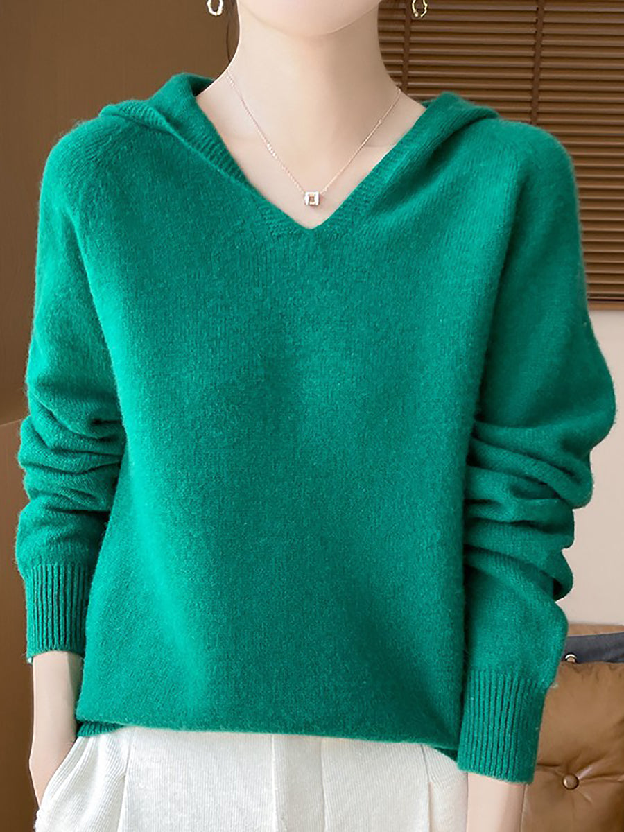 Kvinder Efterår Kunstnerisk Ren Farve Hættetrøje