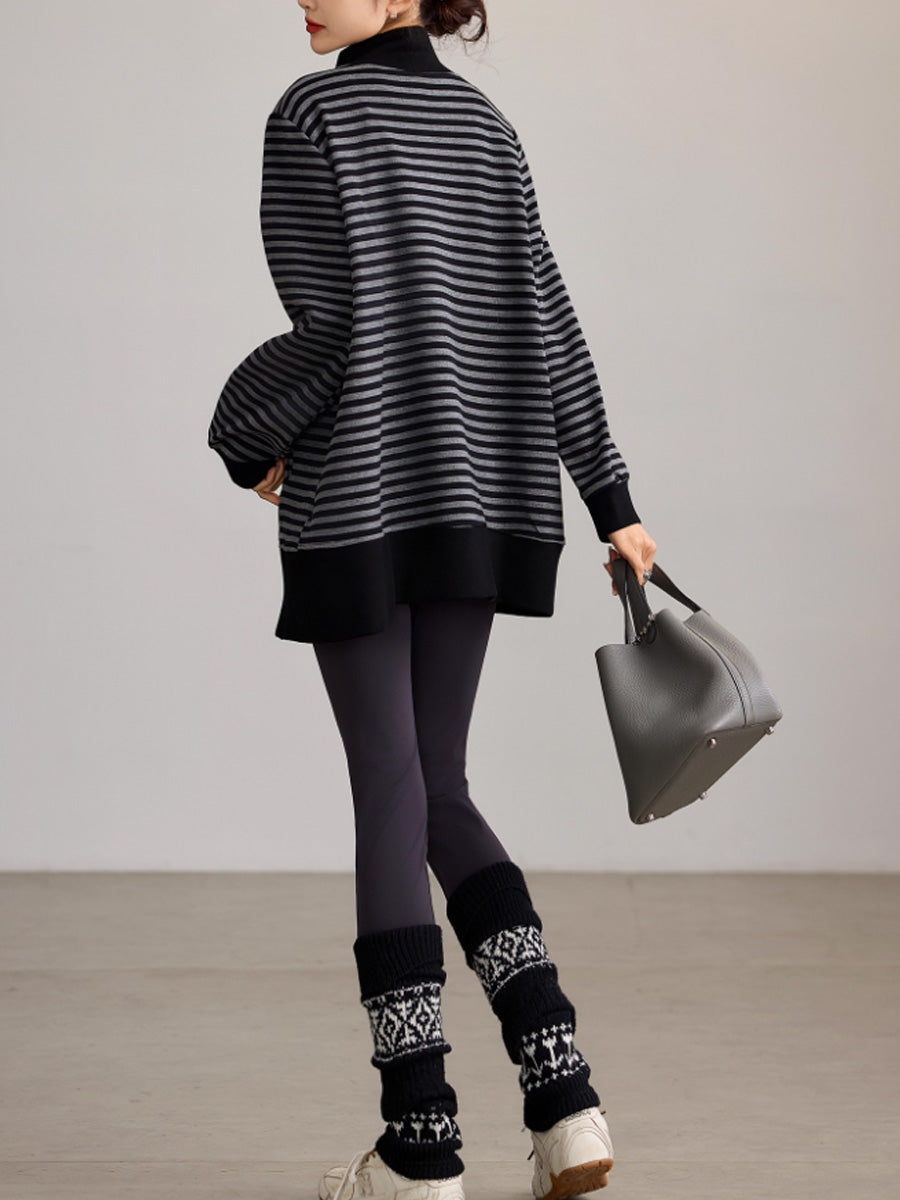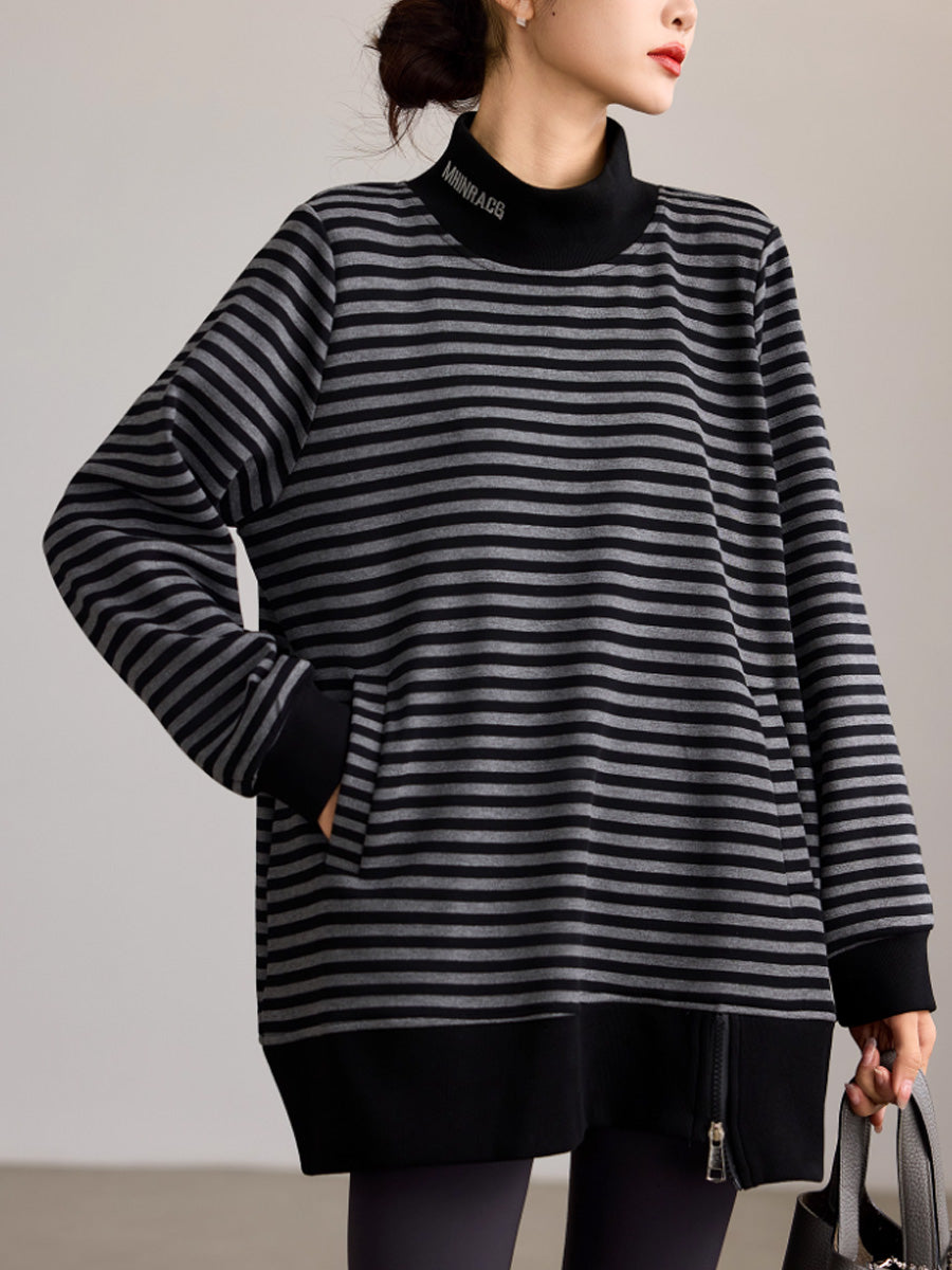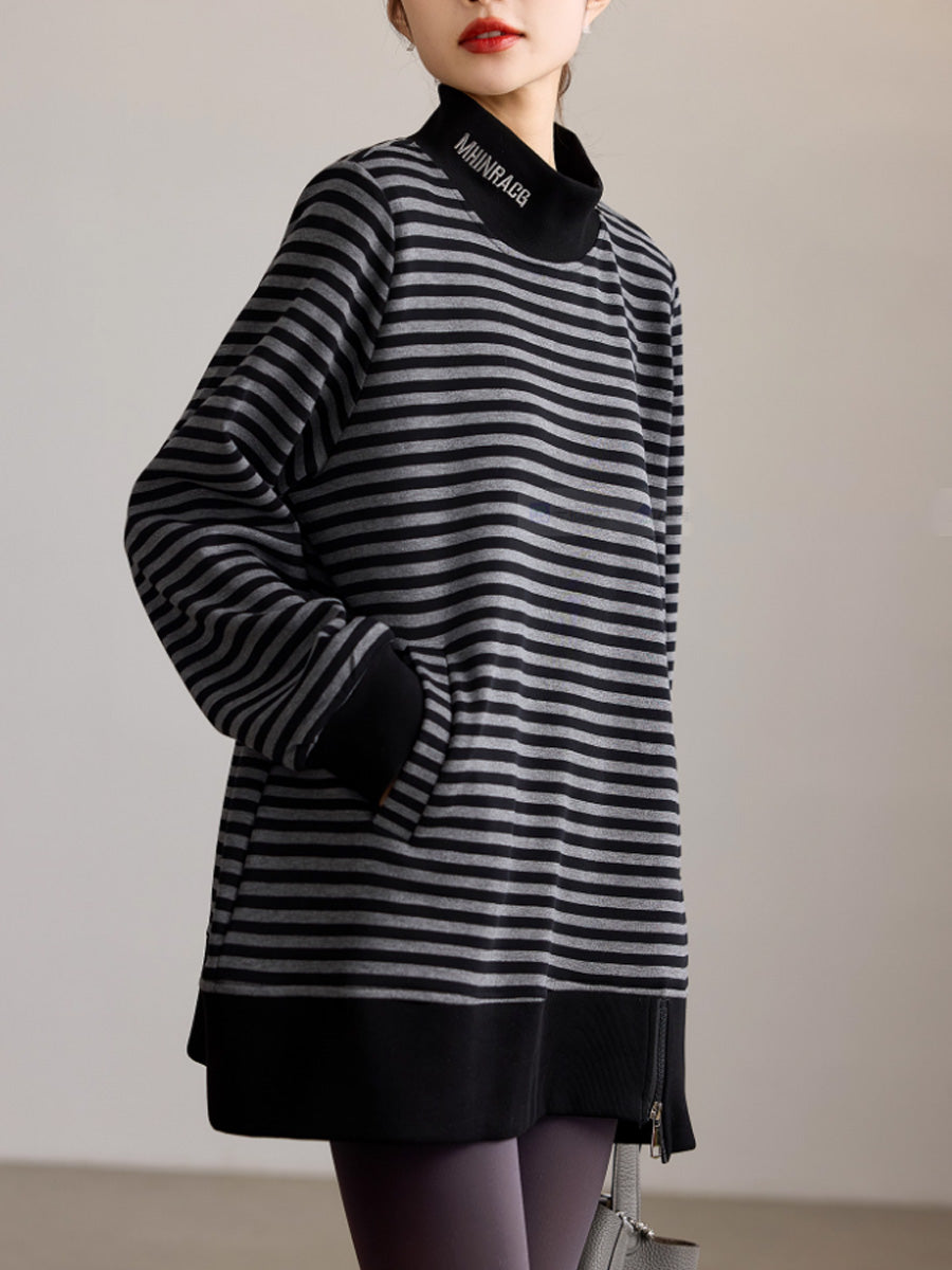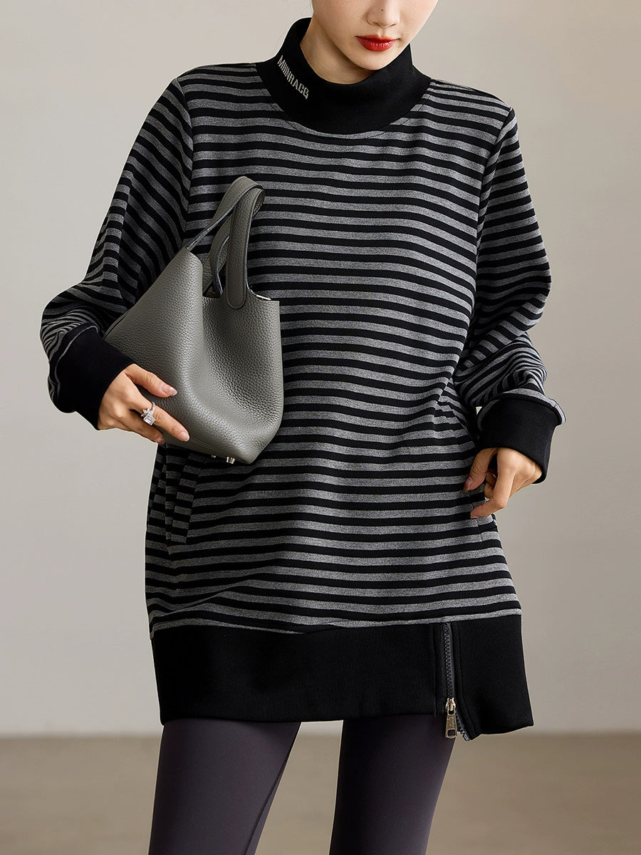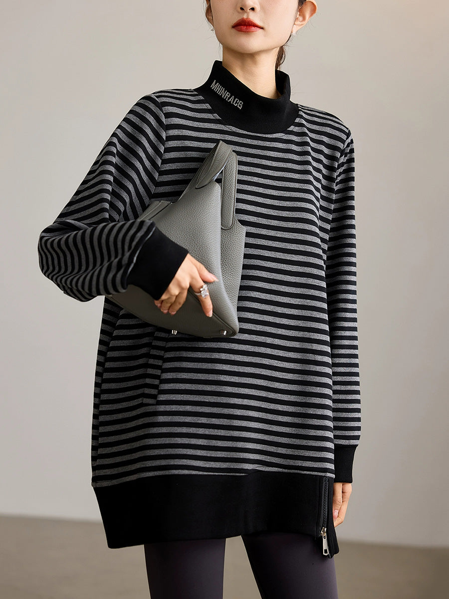 Kvinders kunstneriske efterårsstribede rullekravebluse