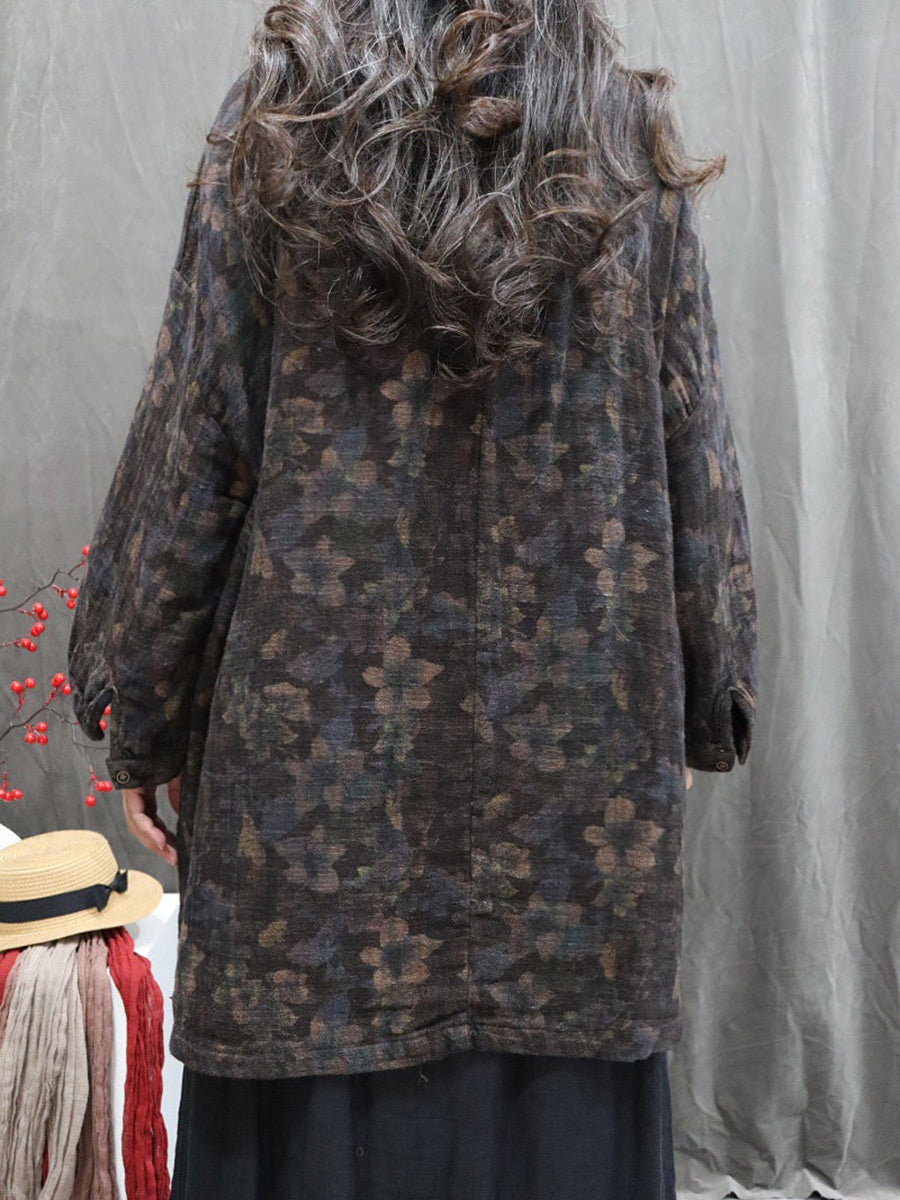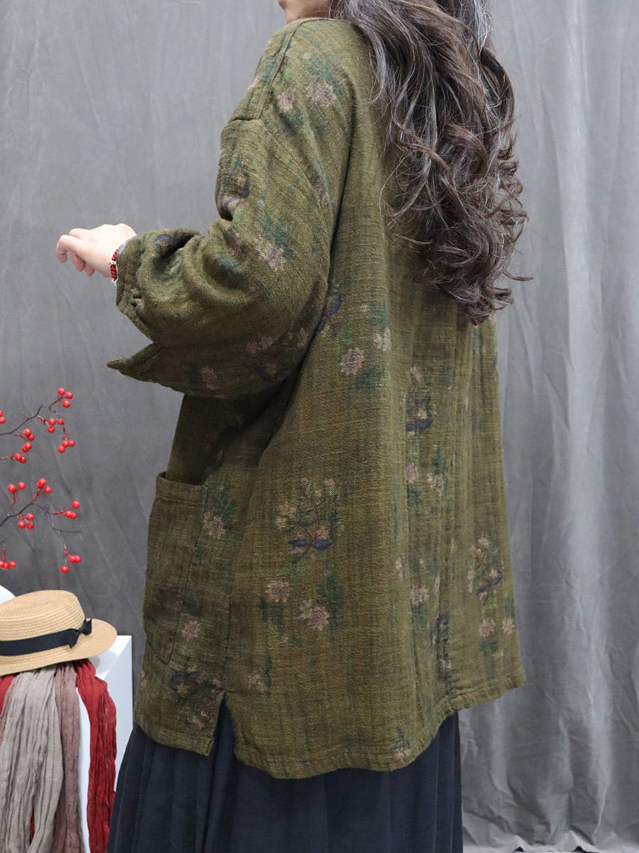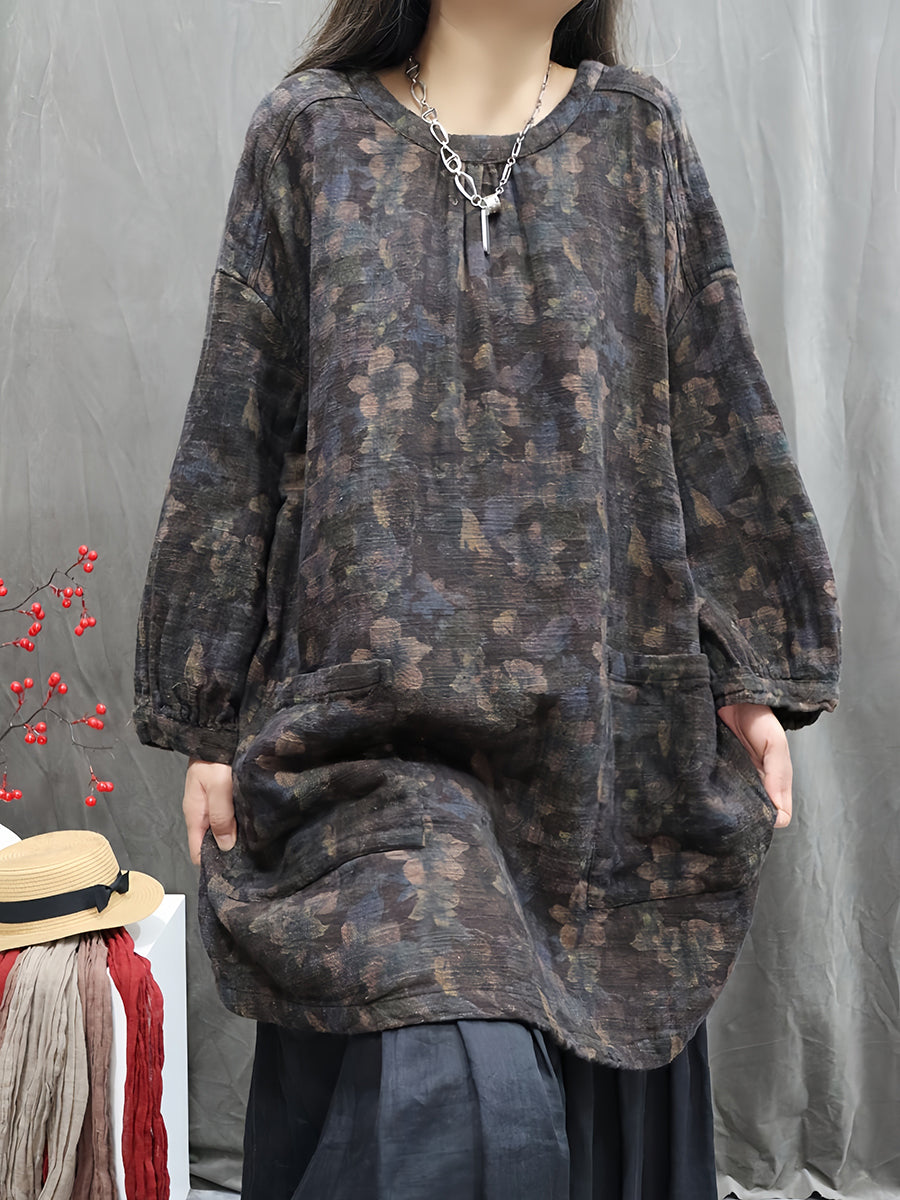 Kunstnerisk efterårsblomst O-hals bluse til kvinder i 100% hør