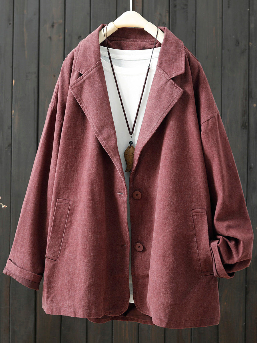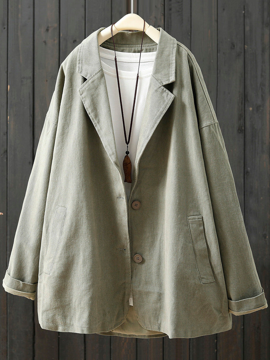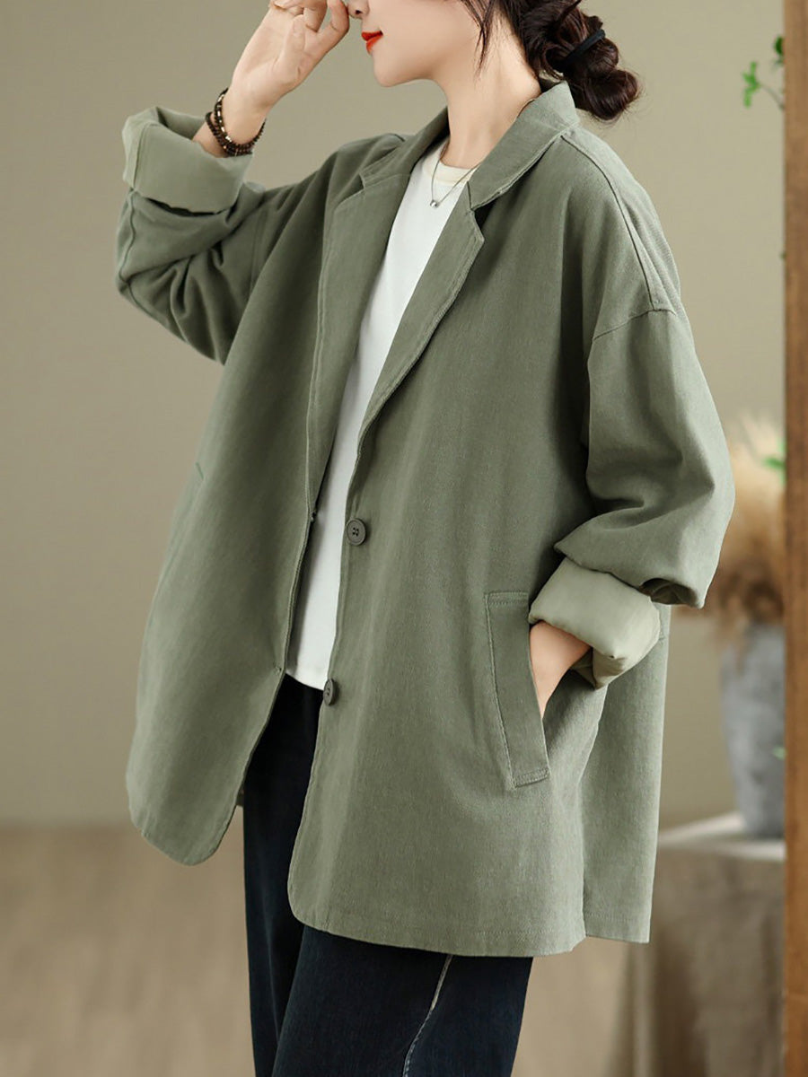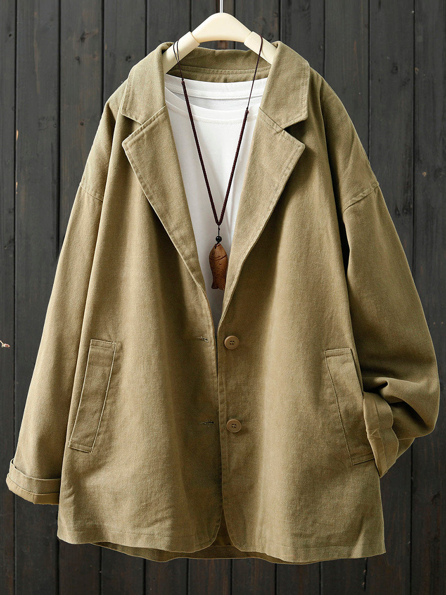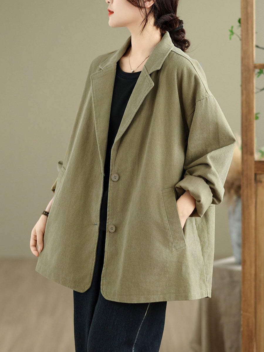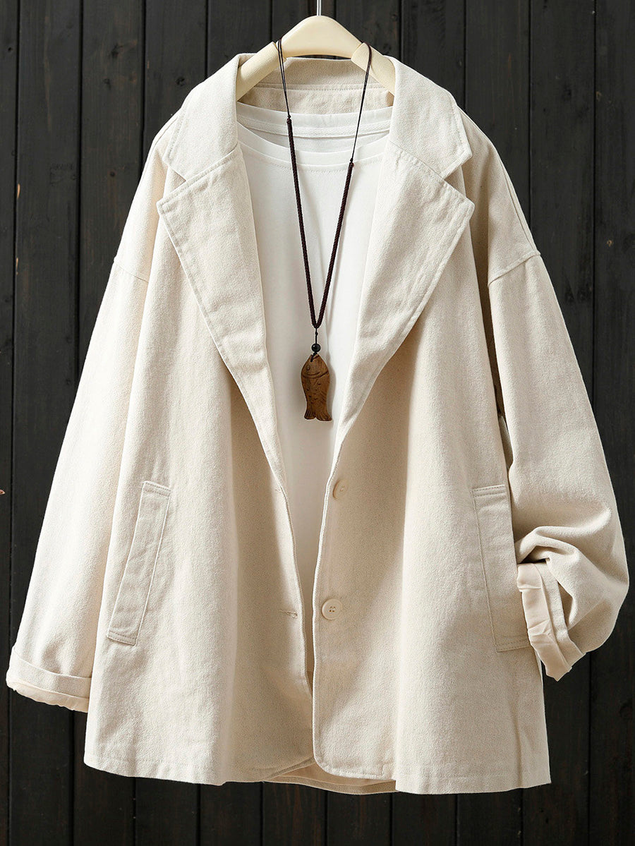 Kvinder Forårs Casual Ren Farve Turn-down Krave Jakke