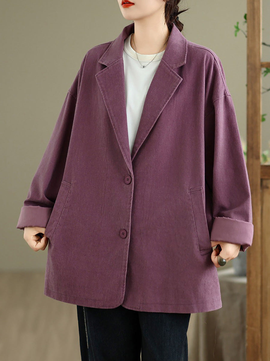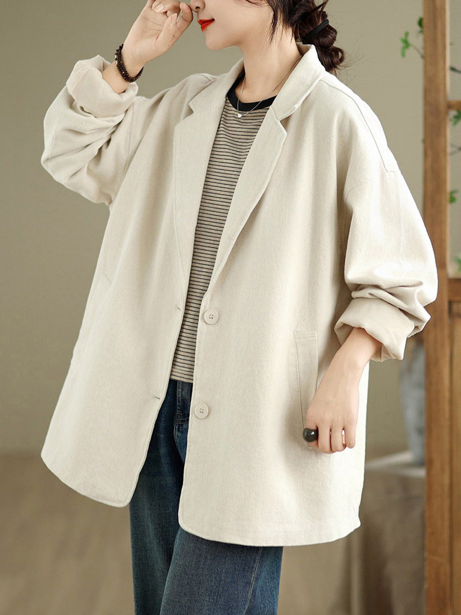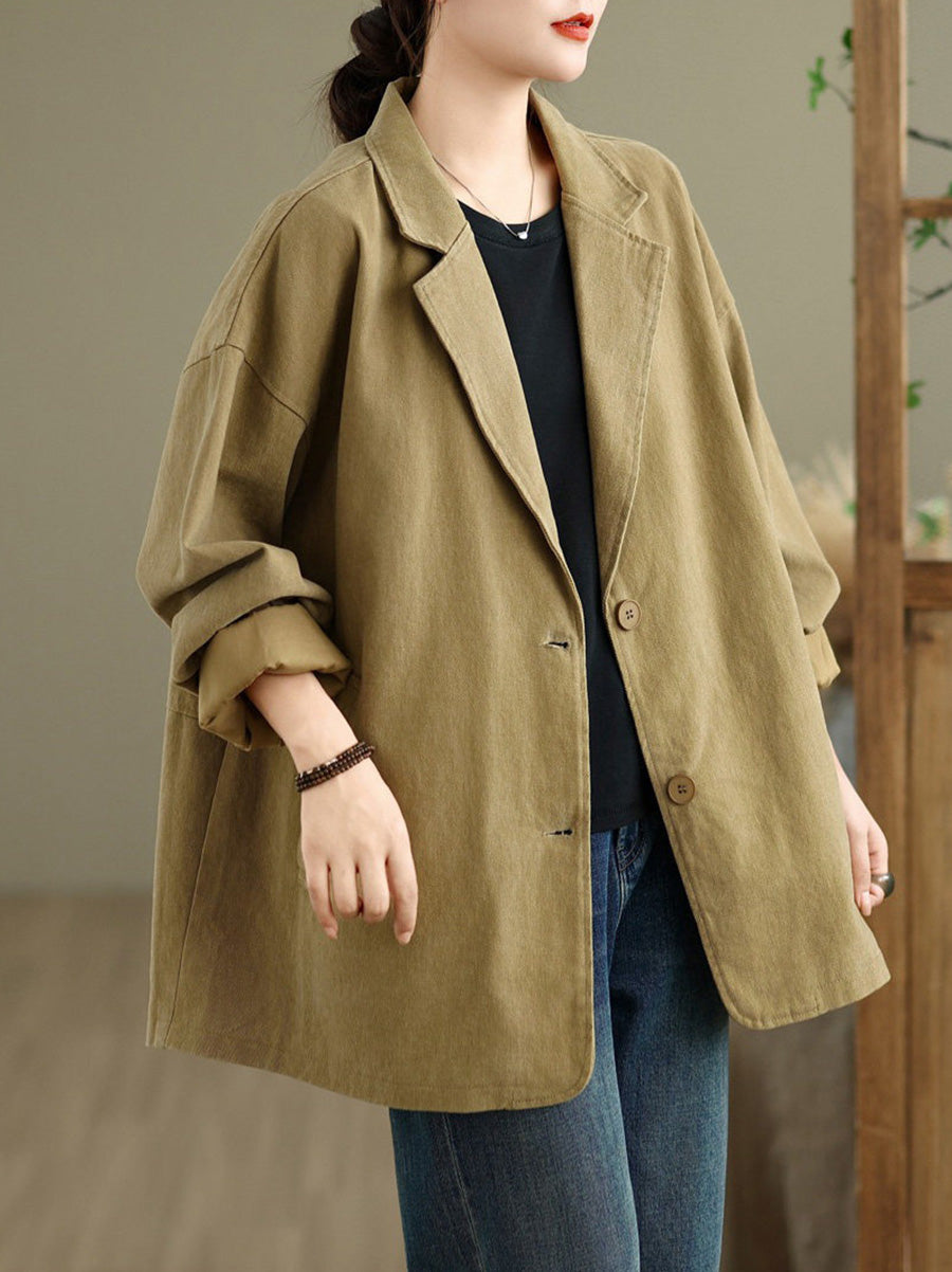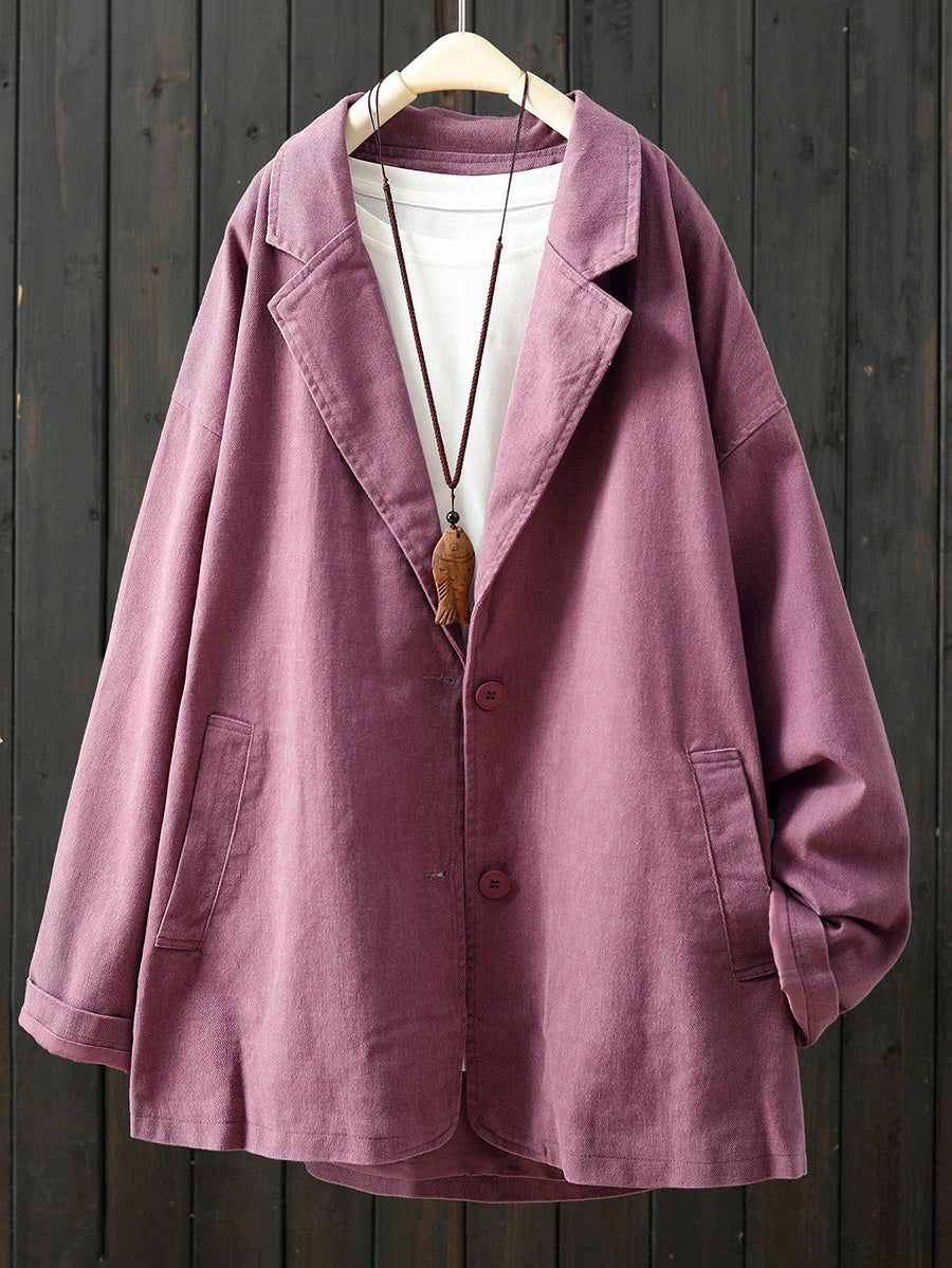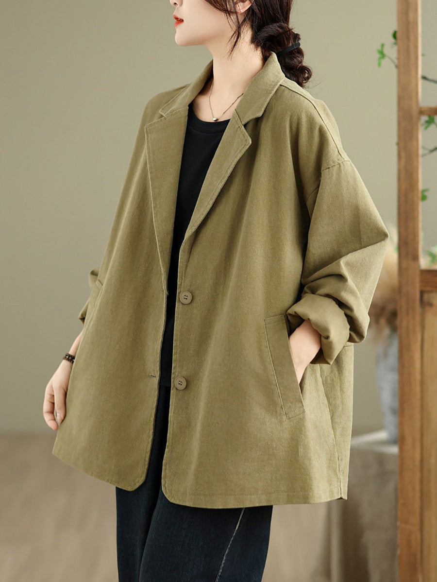 Kvinder Forårs Casual Ren Farve Turn-down Krave Jakke