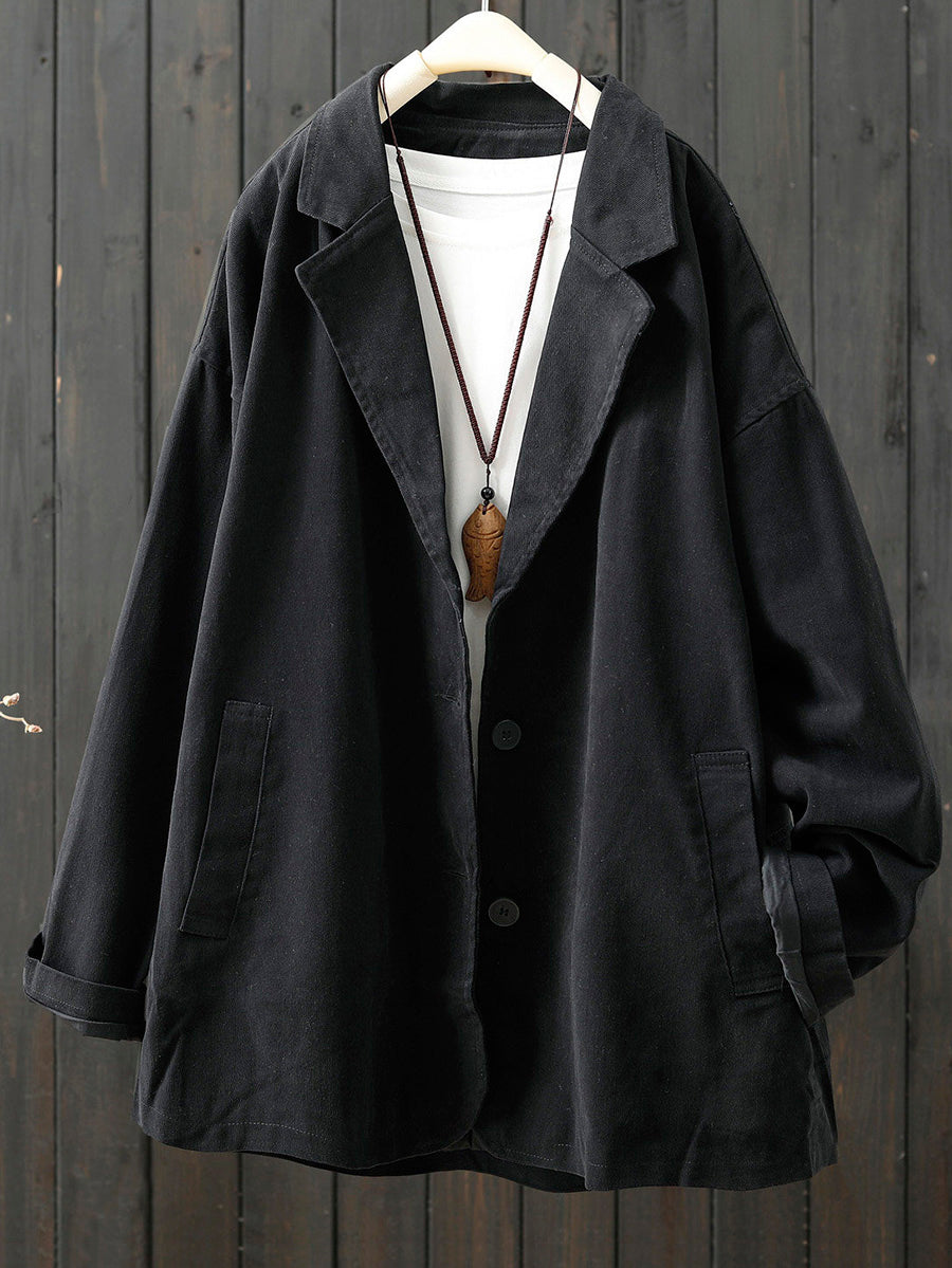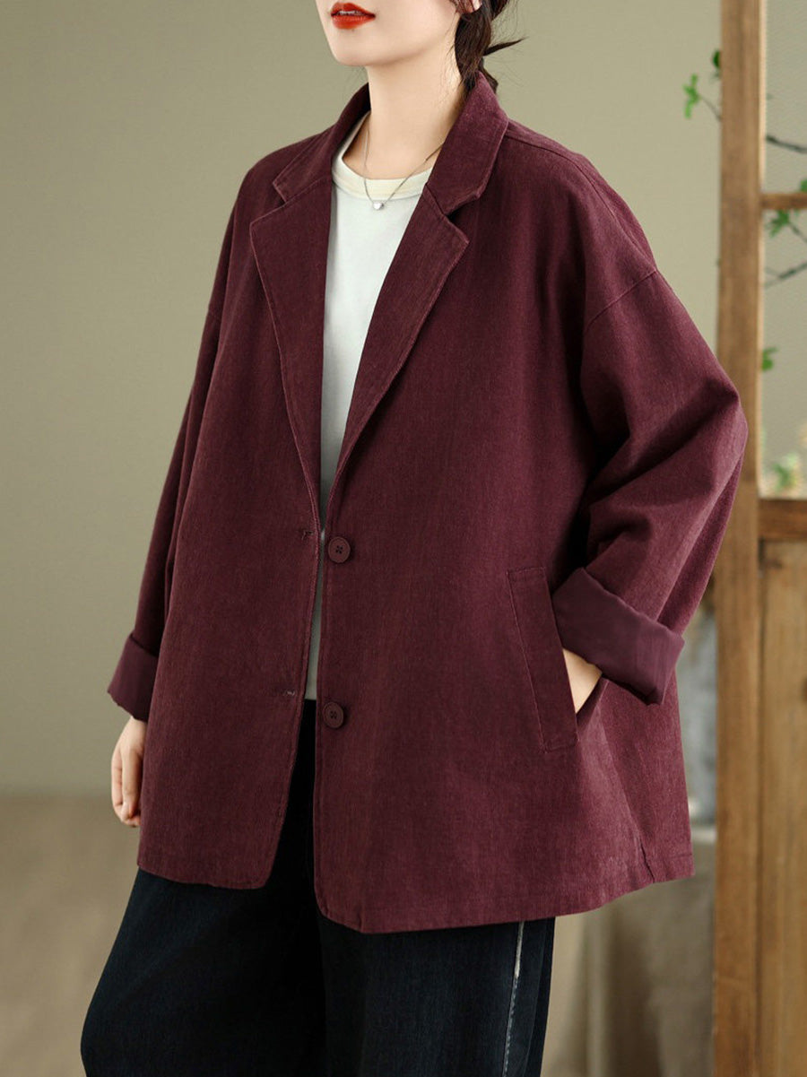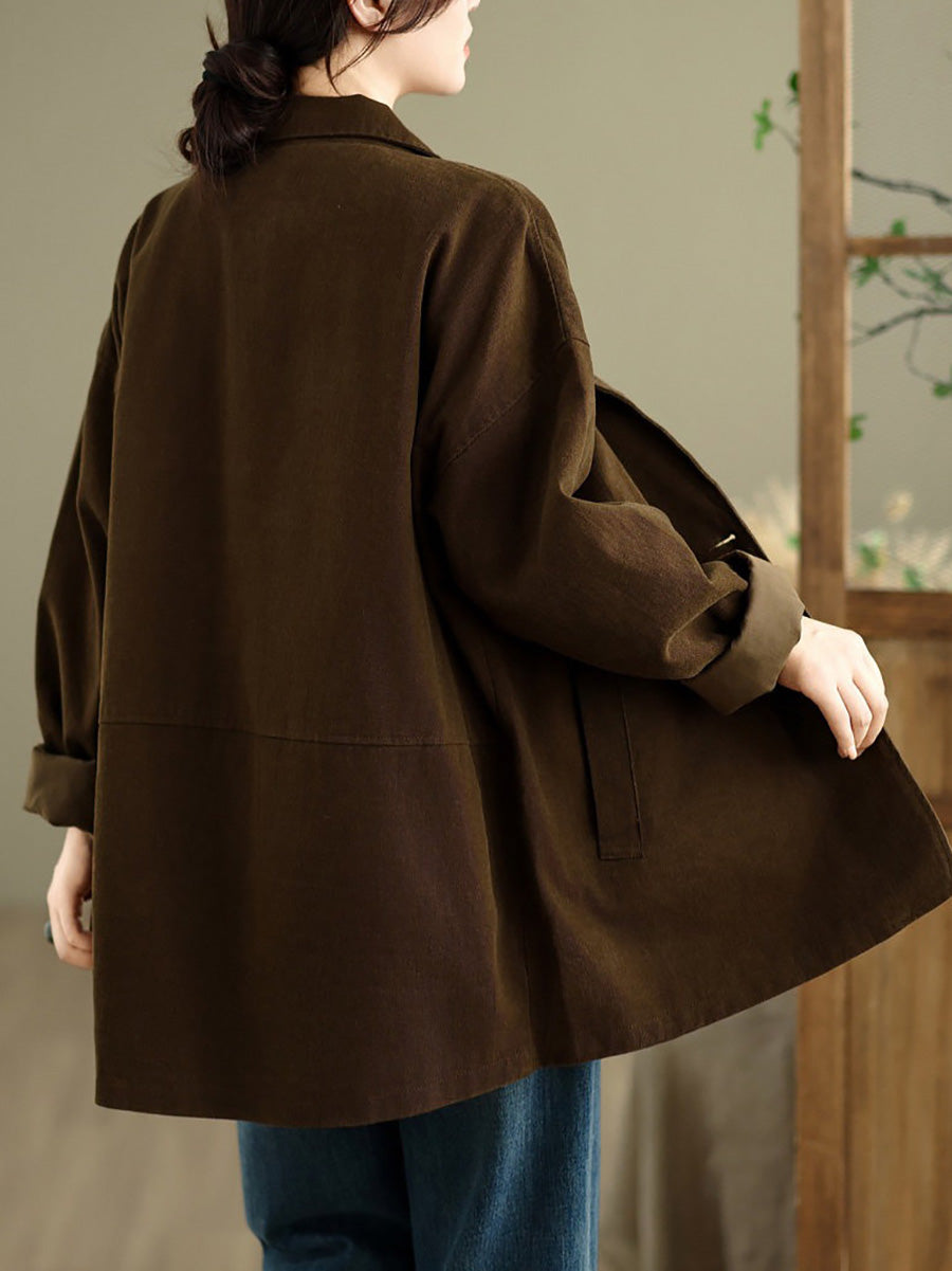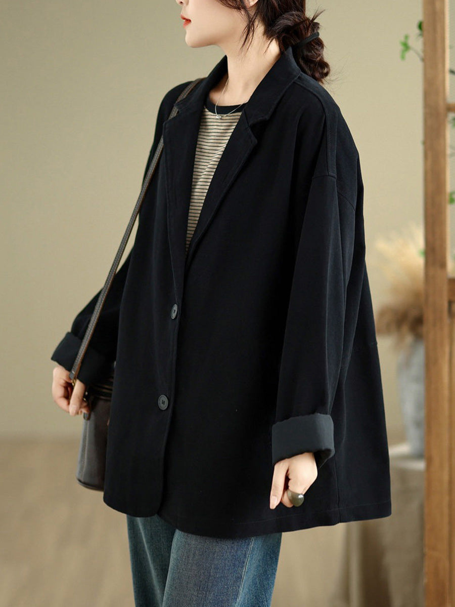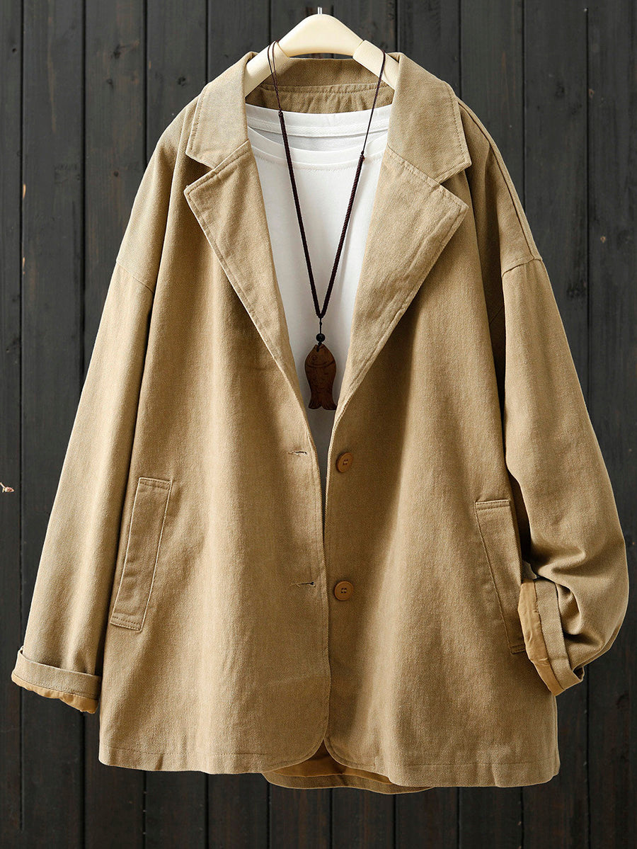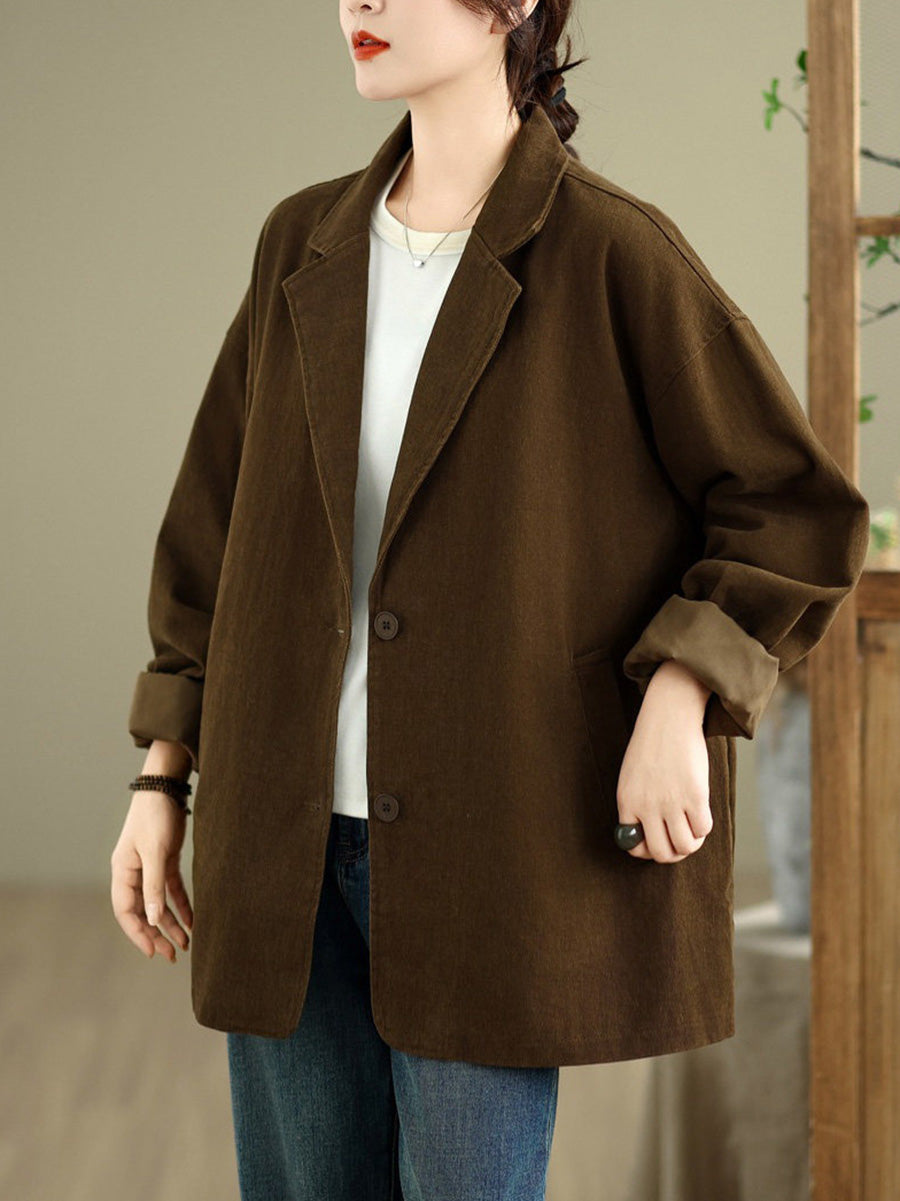 Kvinder Forårs Casual Ren Farve Turn-down Krave Jakke