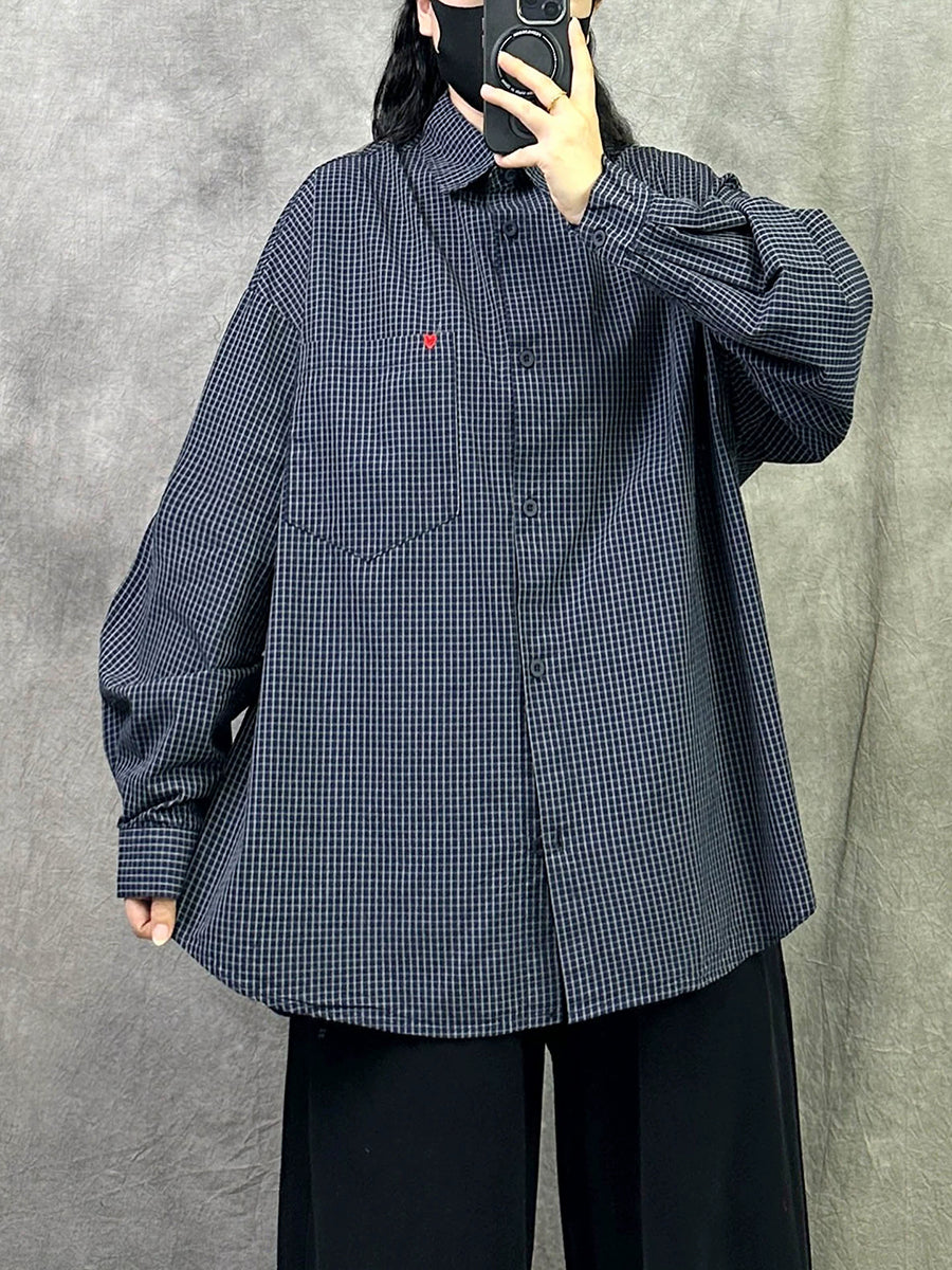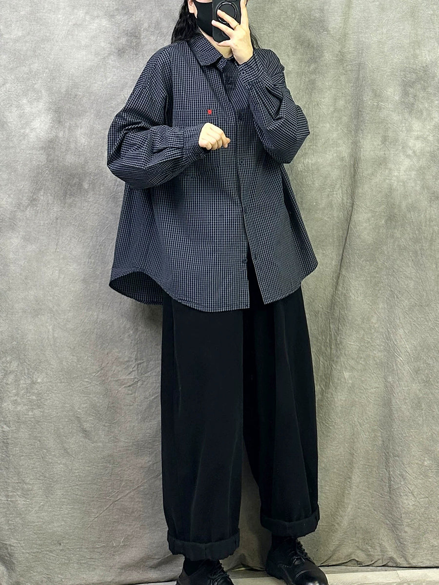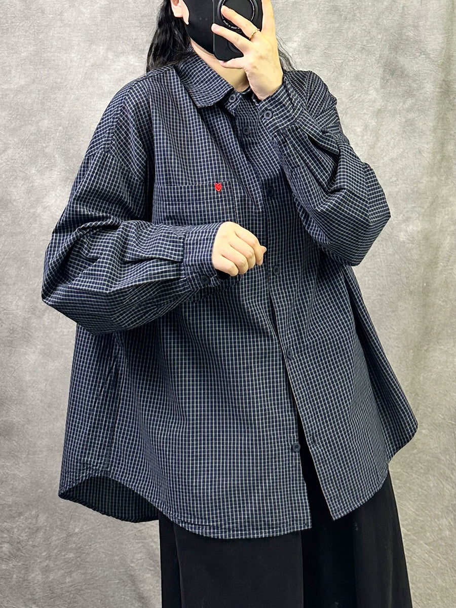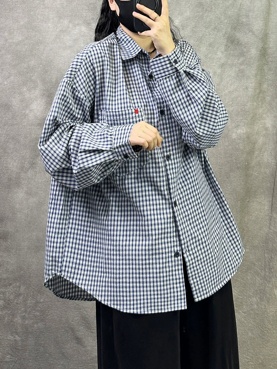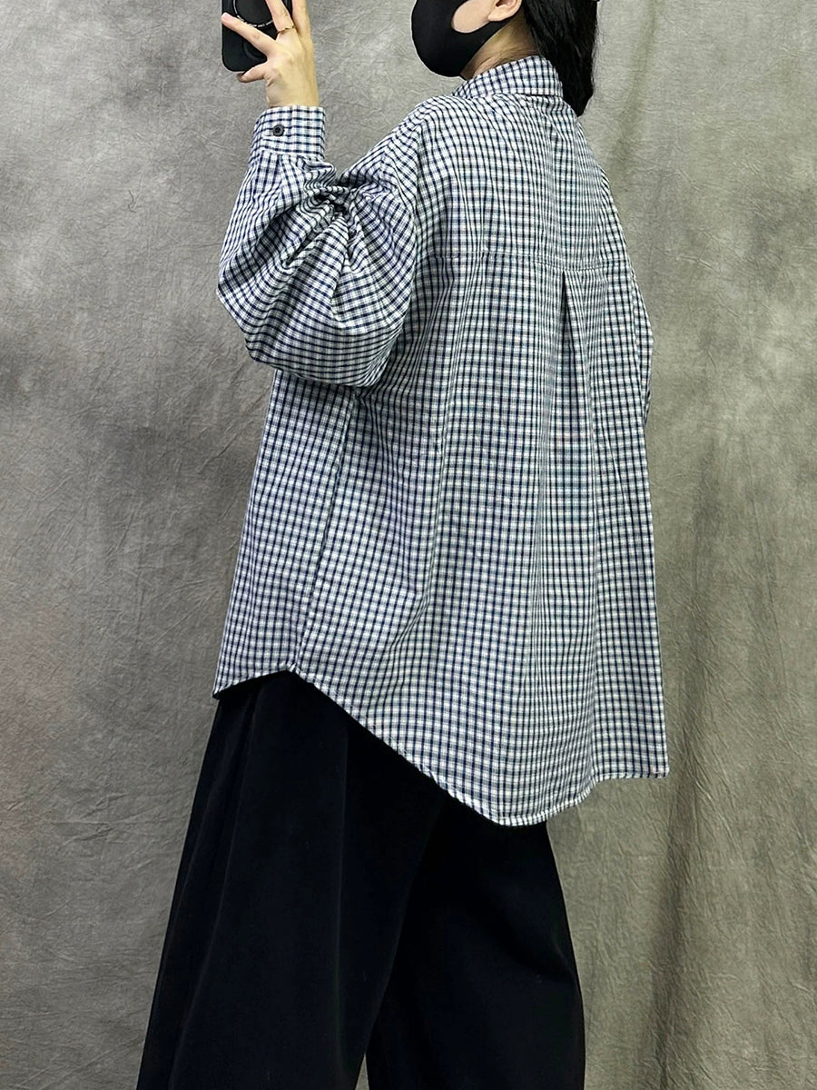 Dame Kunstnerisk Forårsskjorte med Gitterkrave i Bomuld