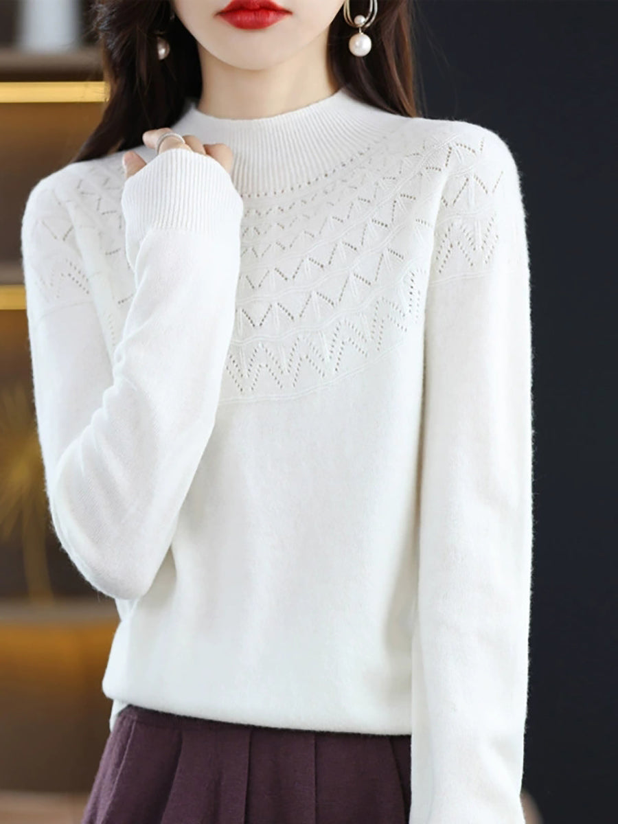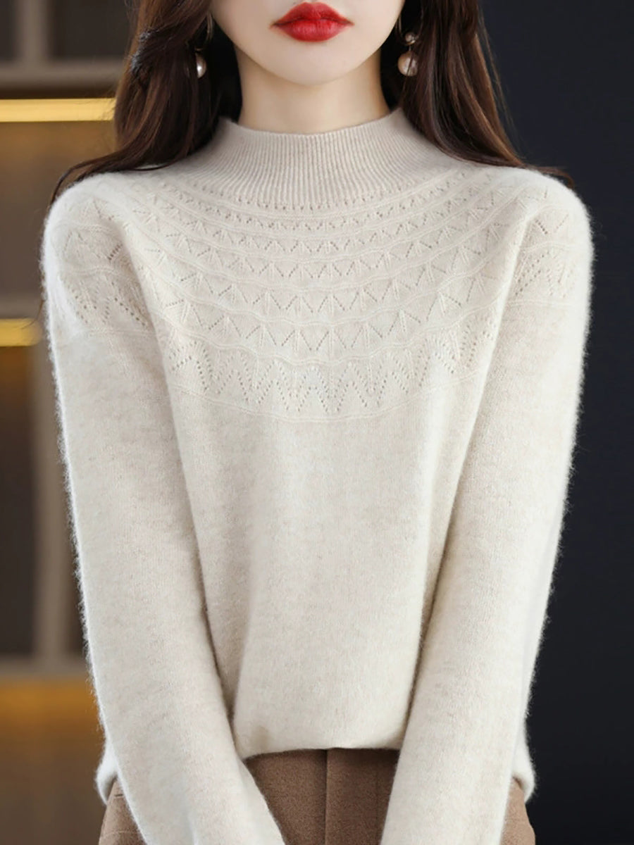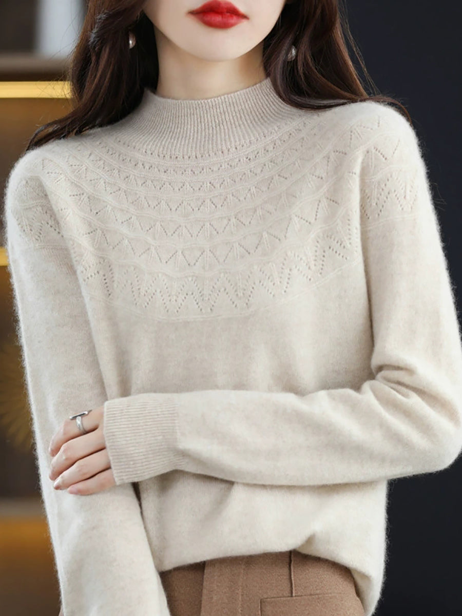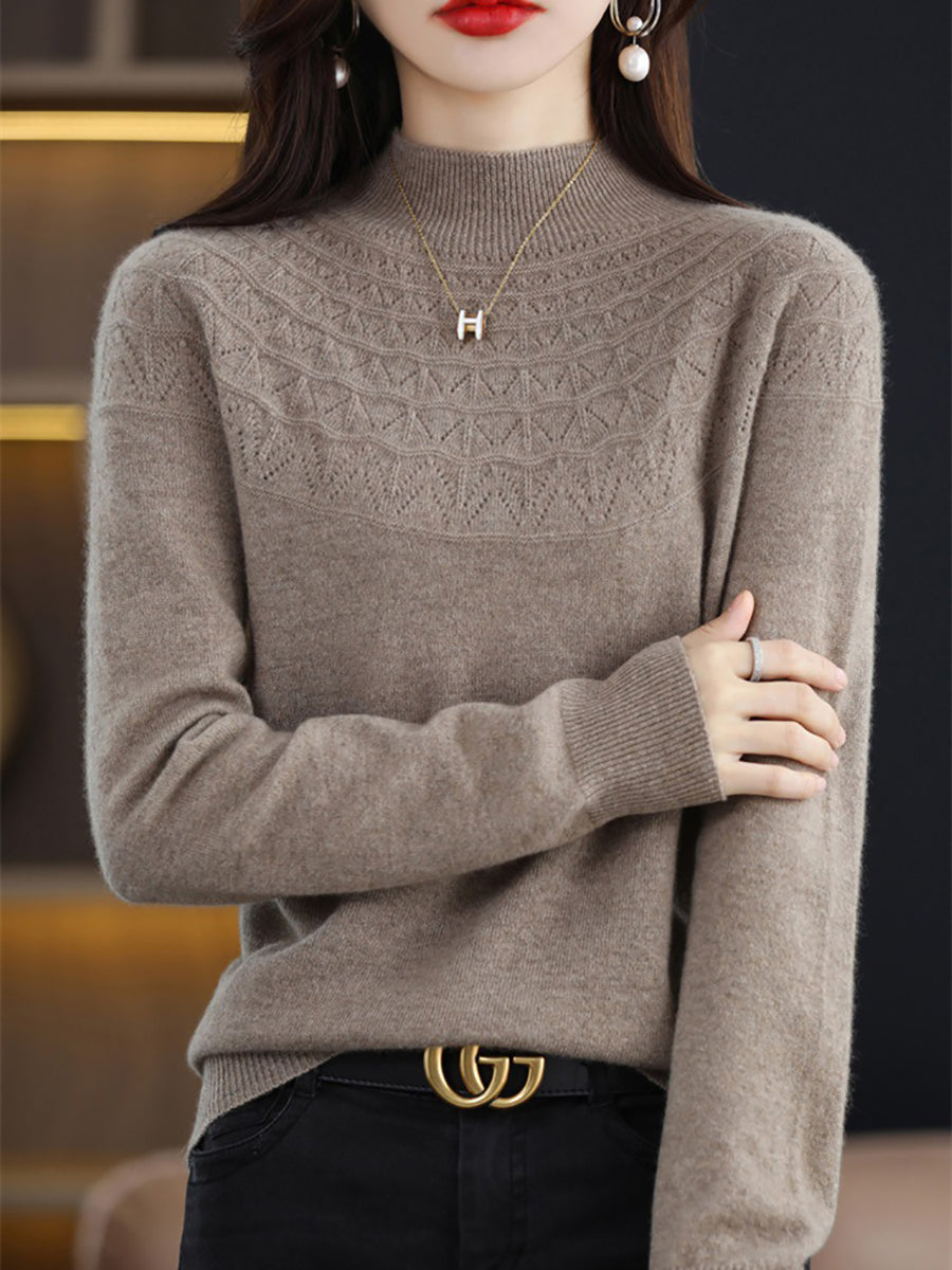 Kunstnerisk strikket sweater med høj hals til kvinder