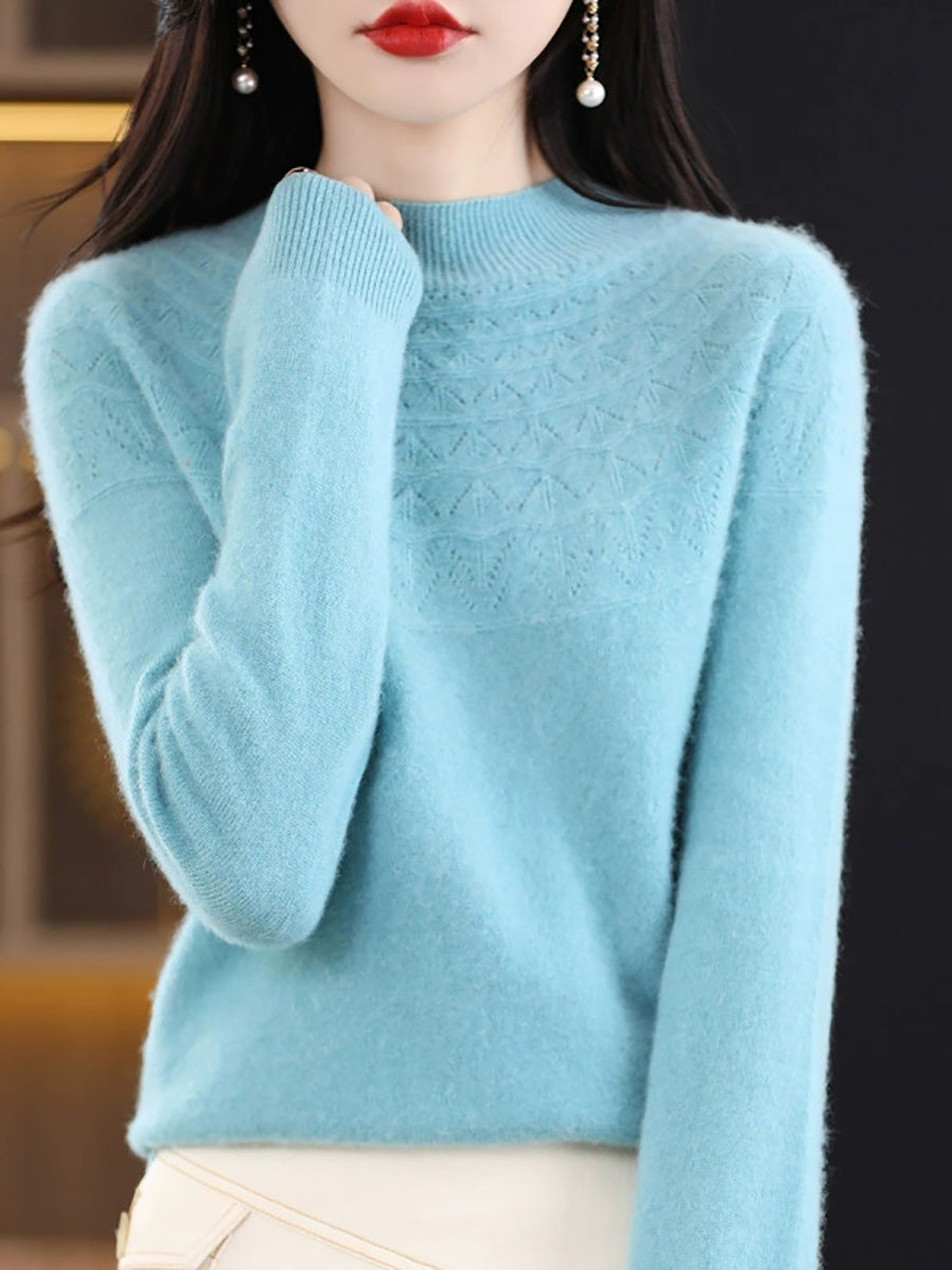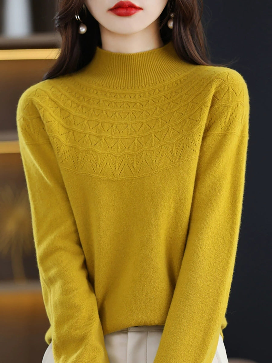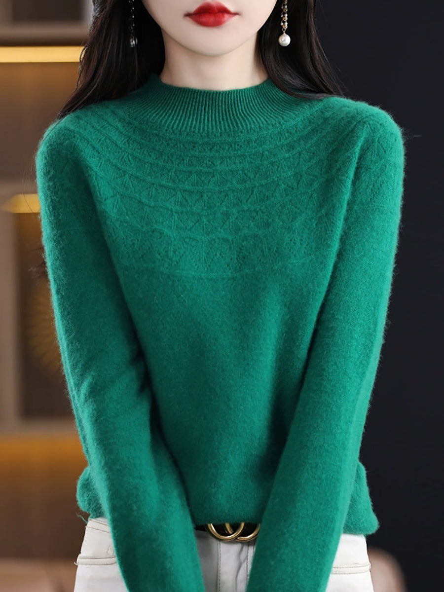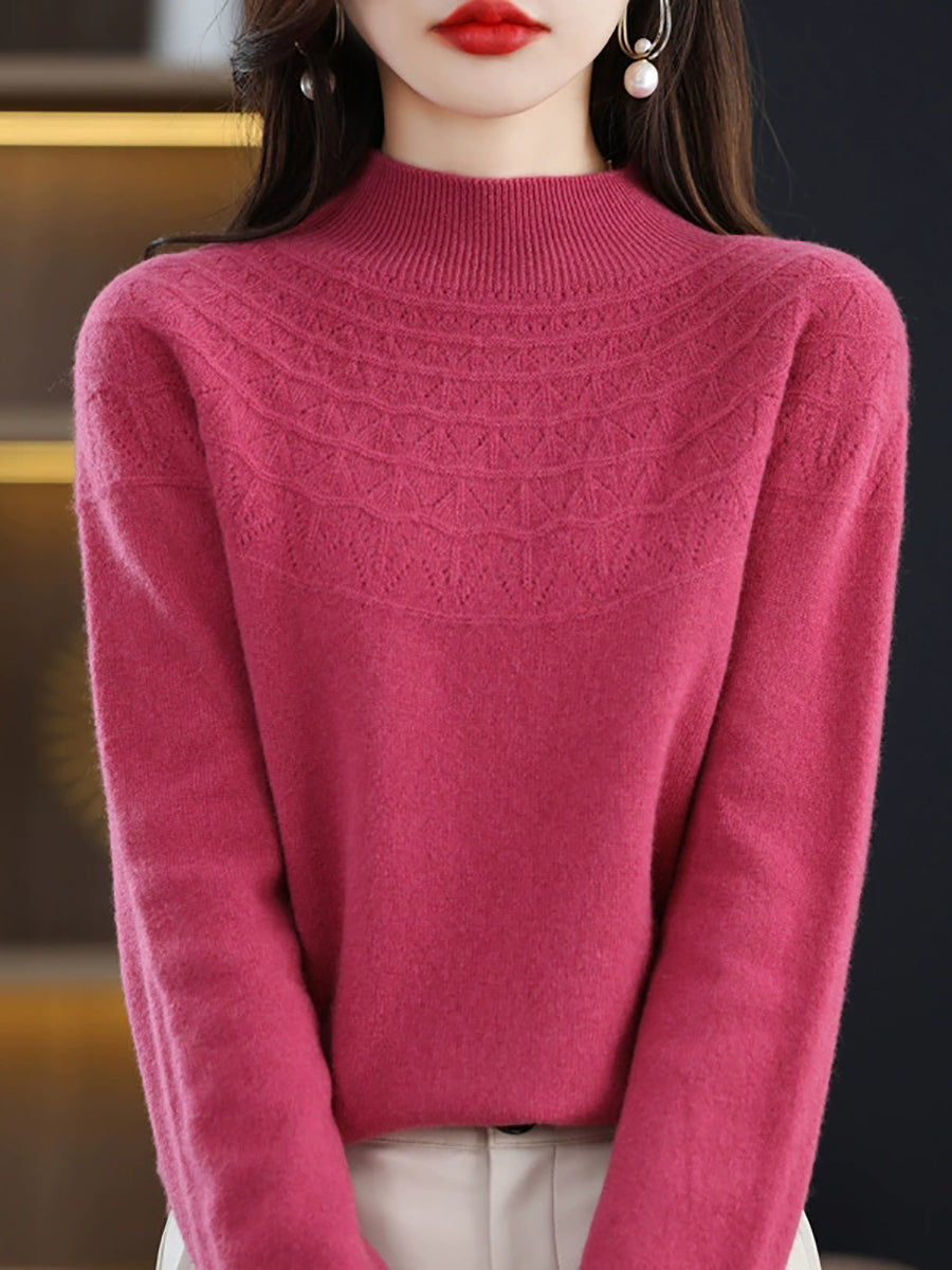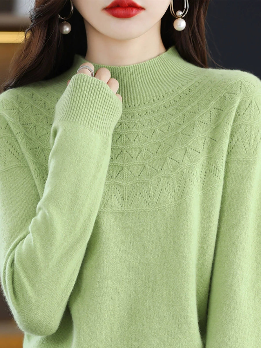 Kunstnerisk strikket sweater med høj hals til kvinder