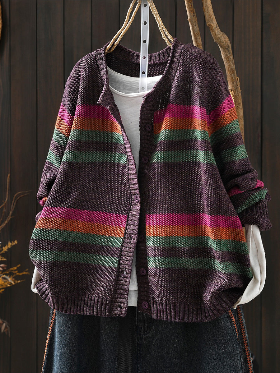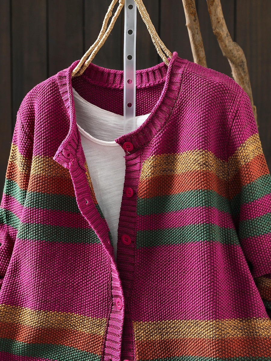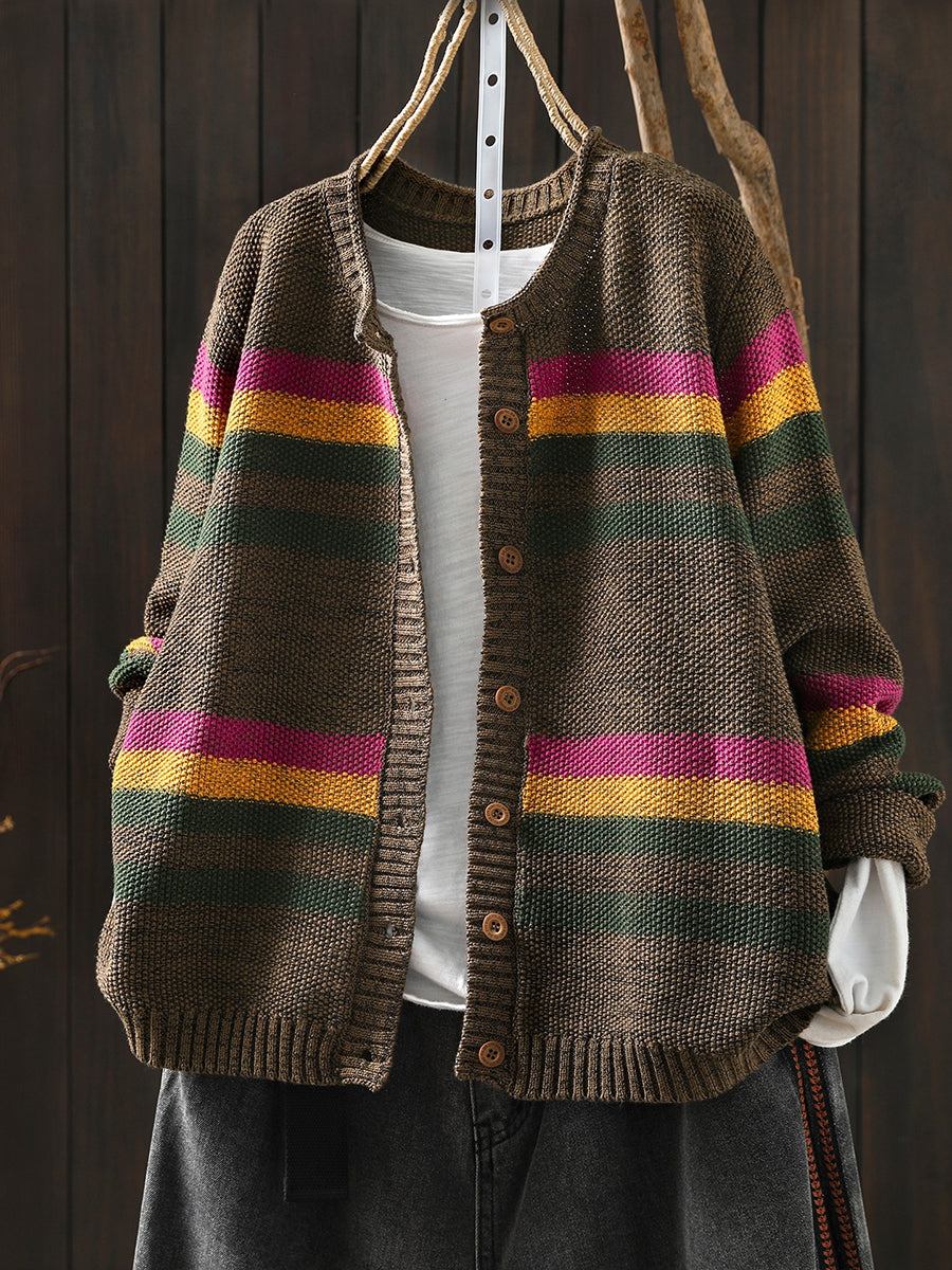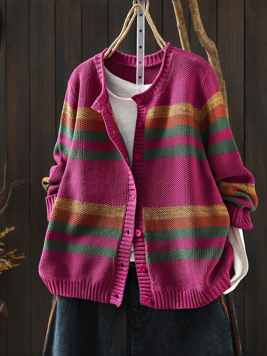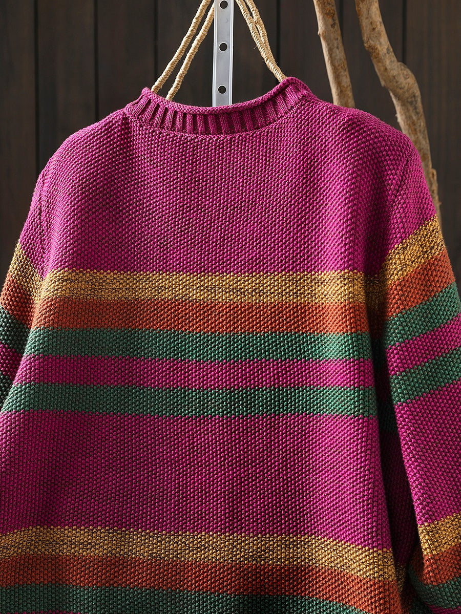 Kvinders forårskunstnerisk farveblokstribet O-hals-trøje