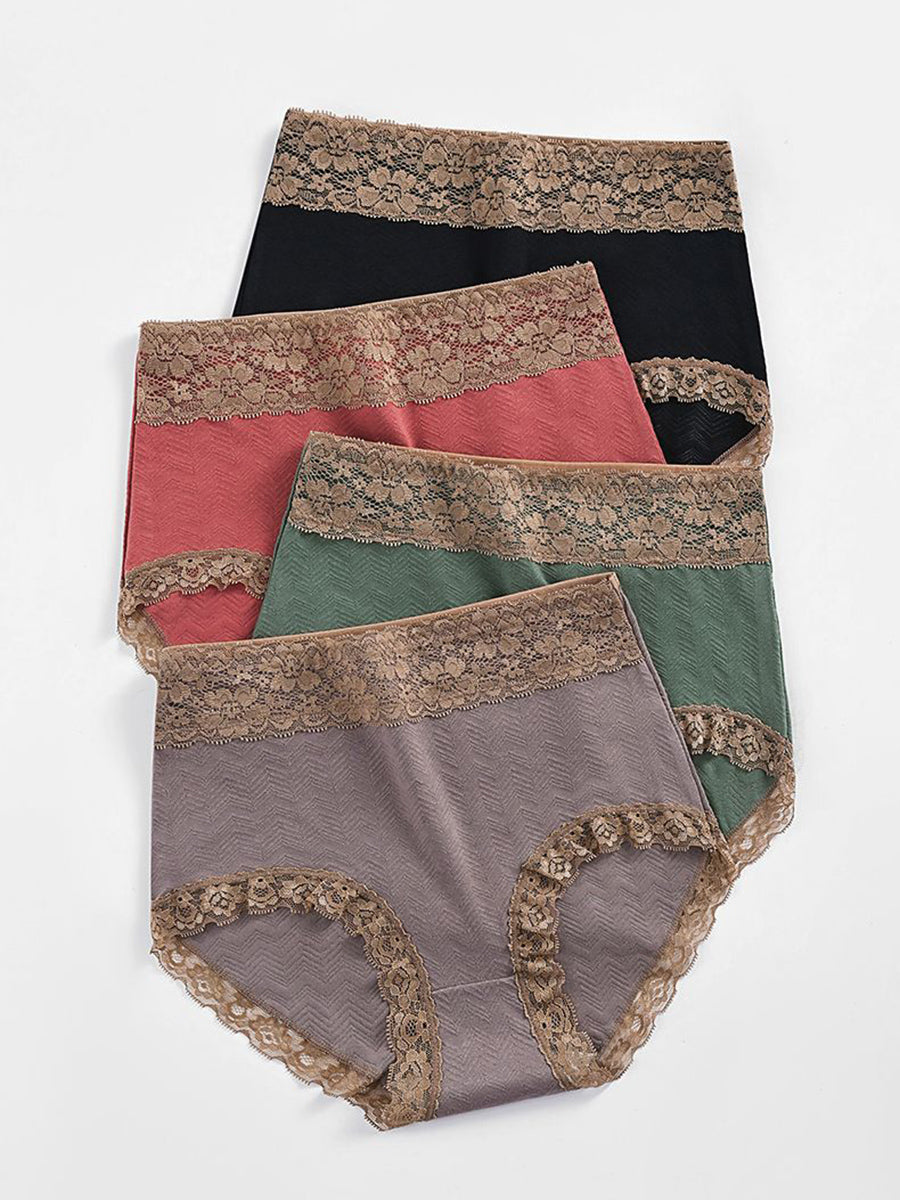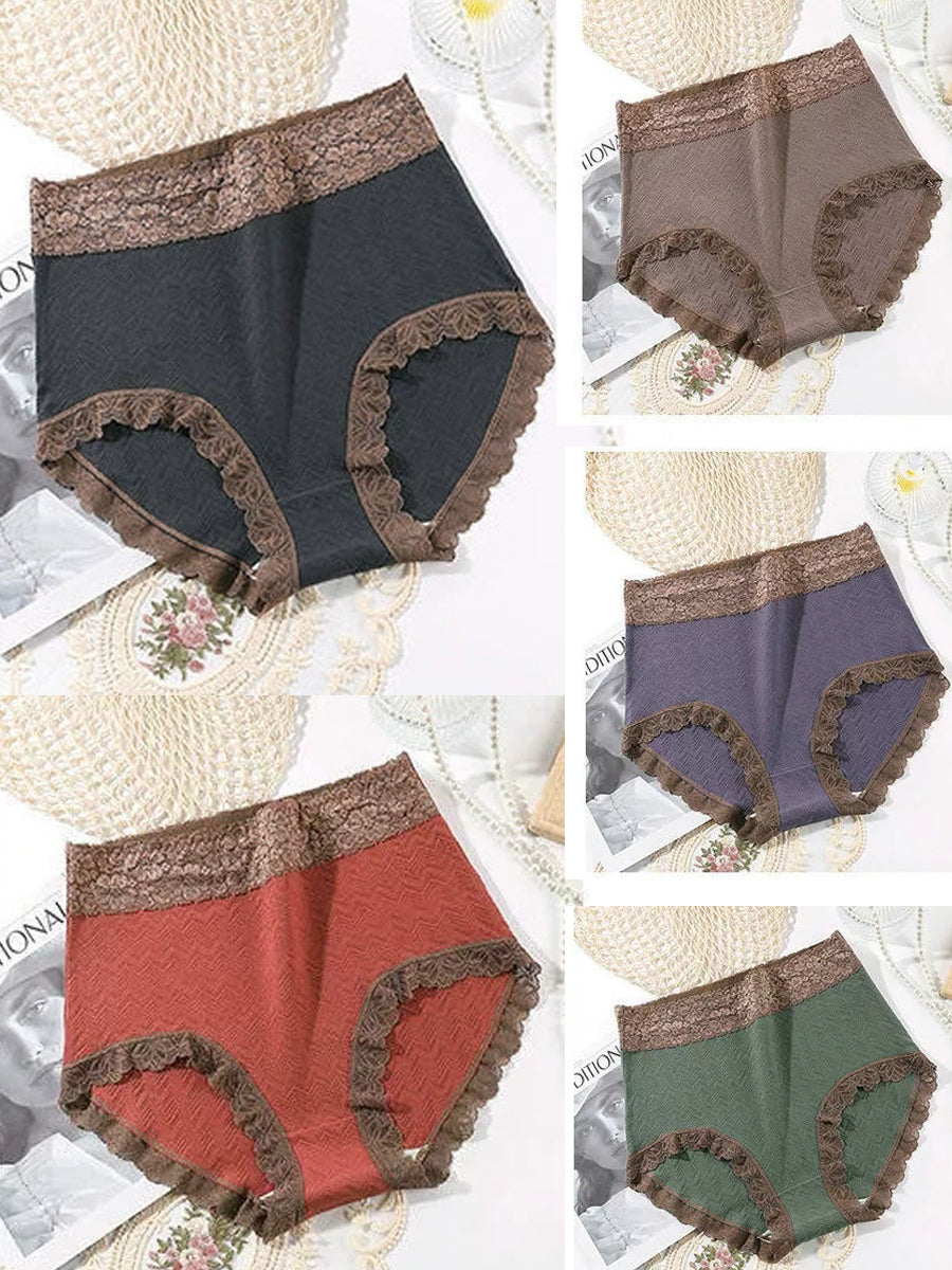 5 stykker kvinders kunstneriske blondeundertøj med høj talje