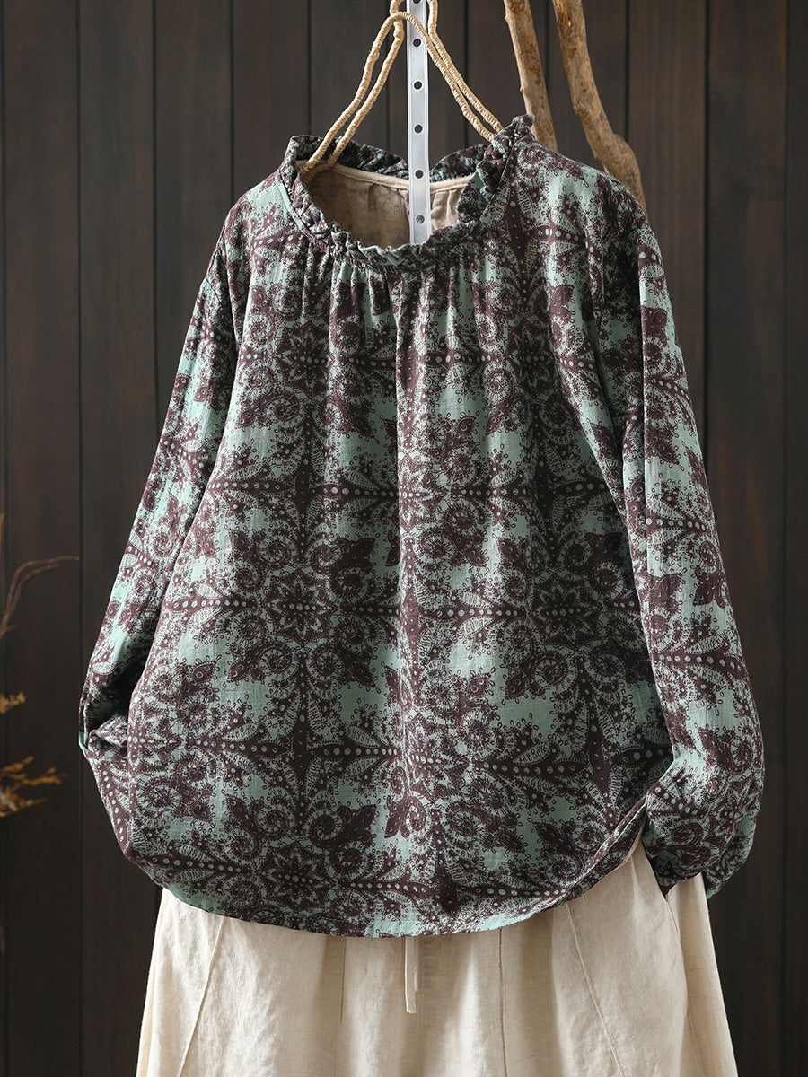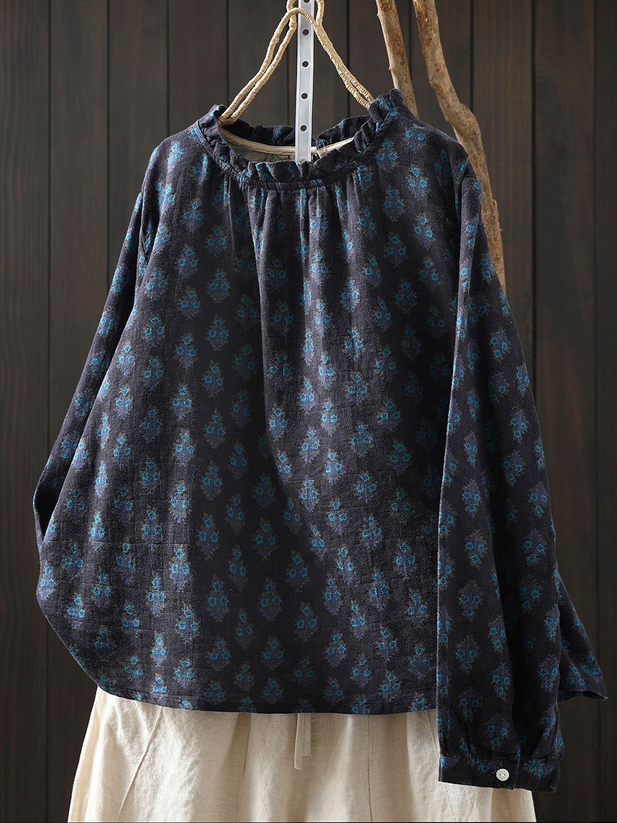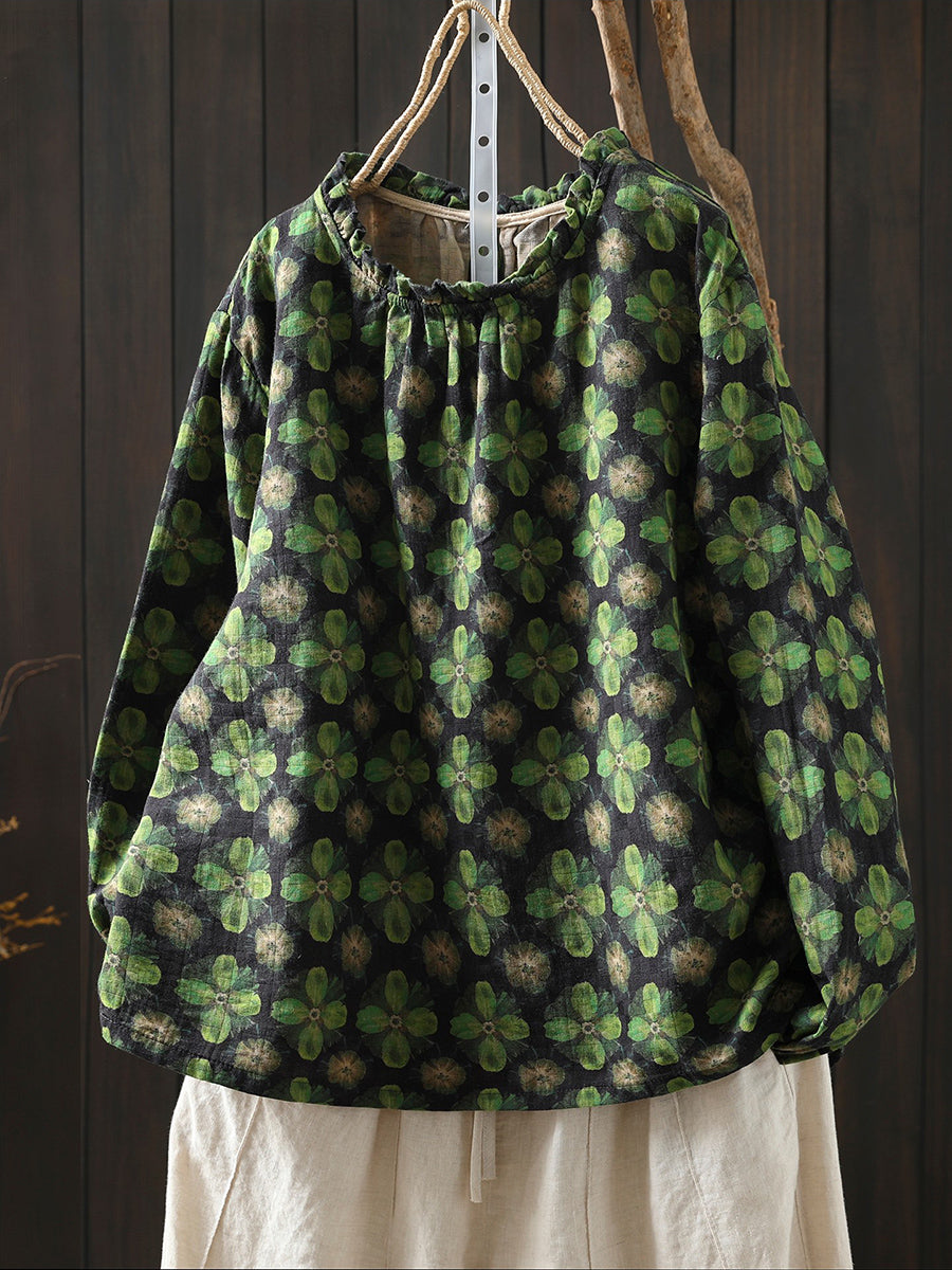 Kvinders forårsbluse med kunstnerisk blomsterprint og bomuld