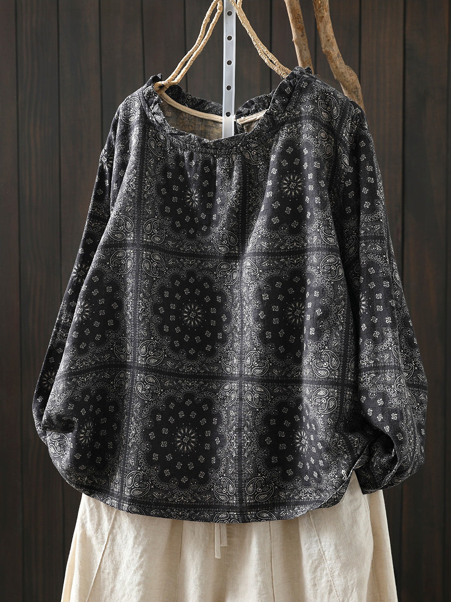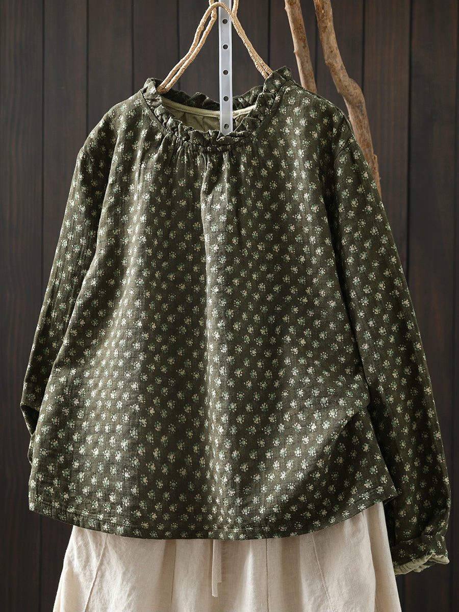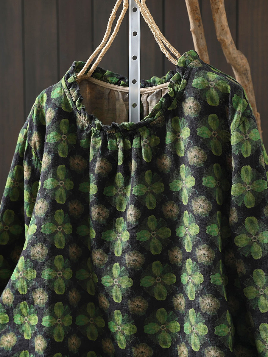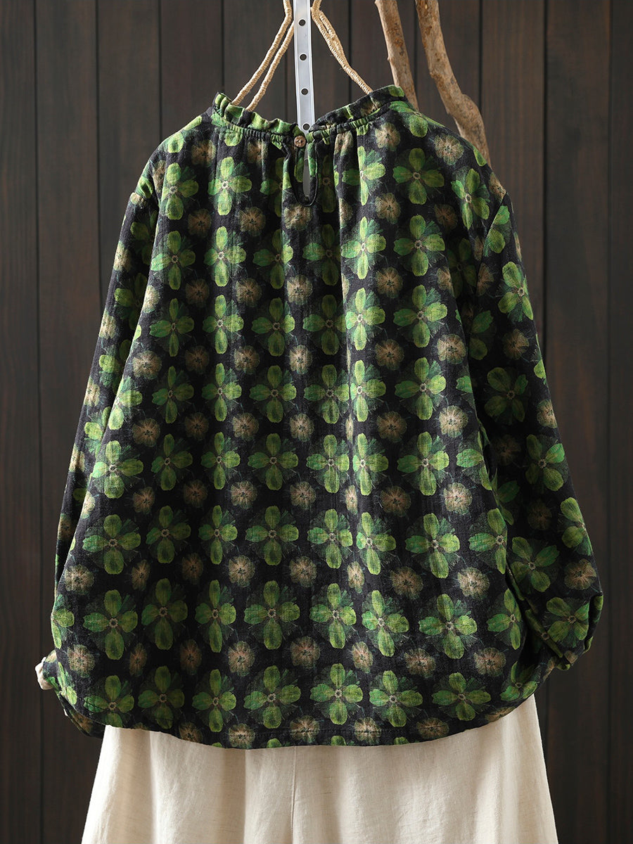 Kvinders forårsbluse med kunstnerisk blomsterprint og bomuld