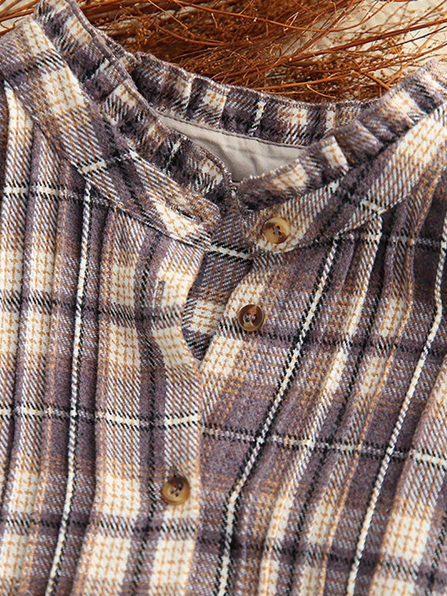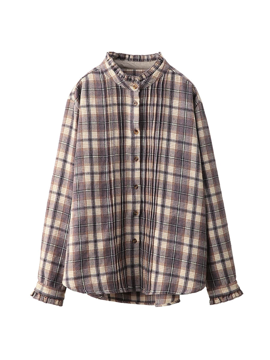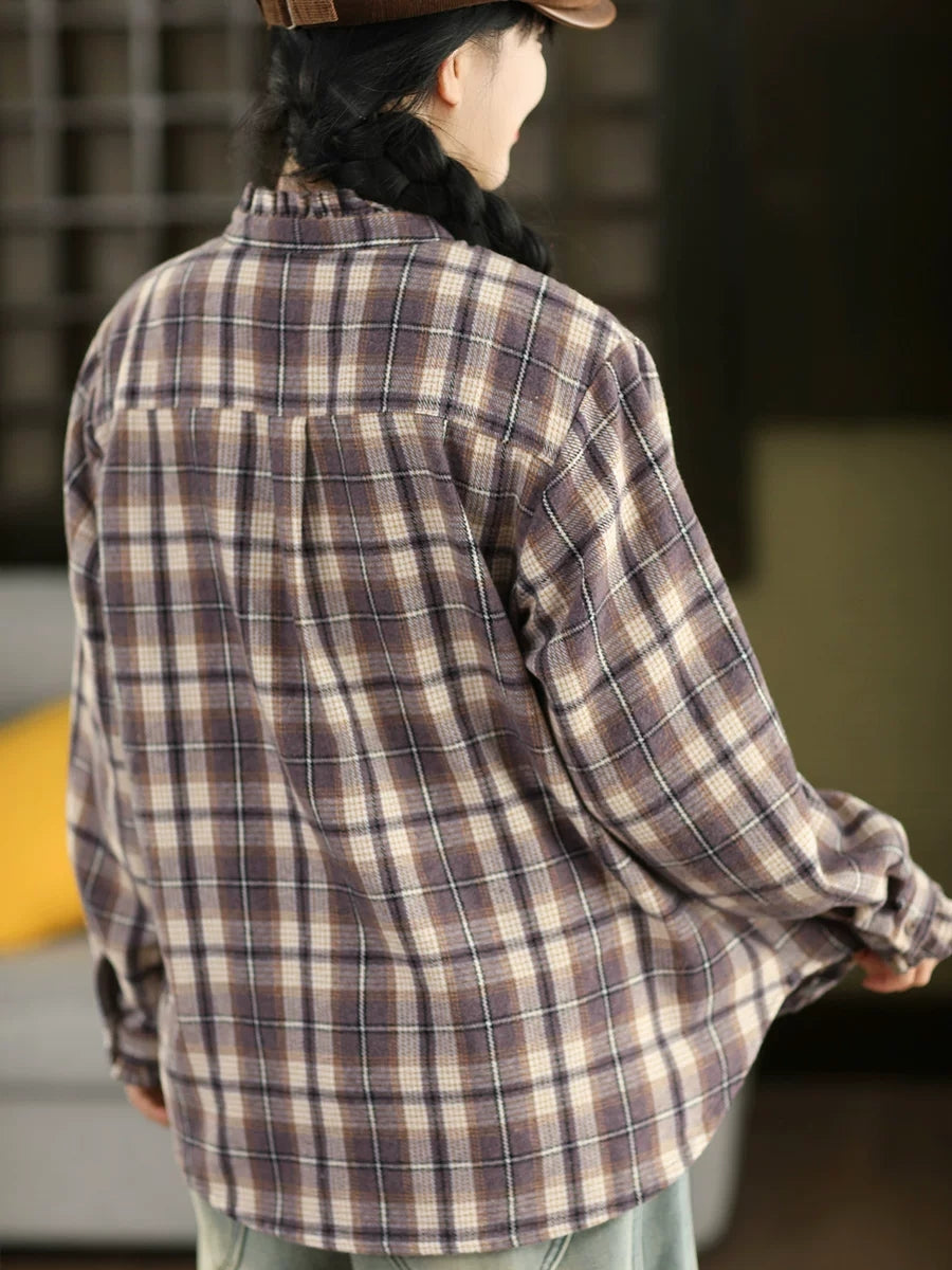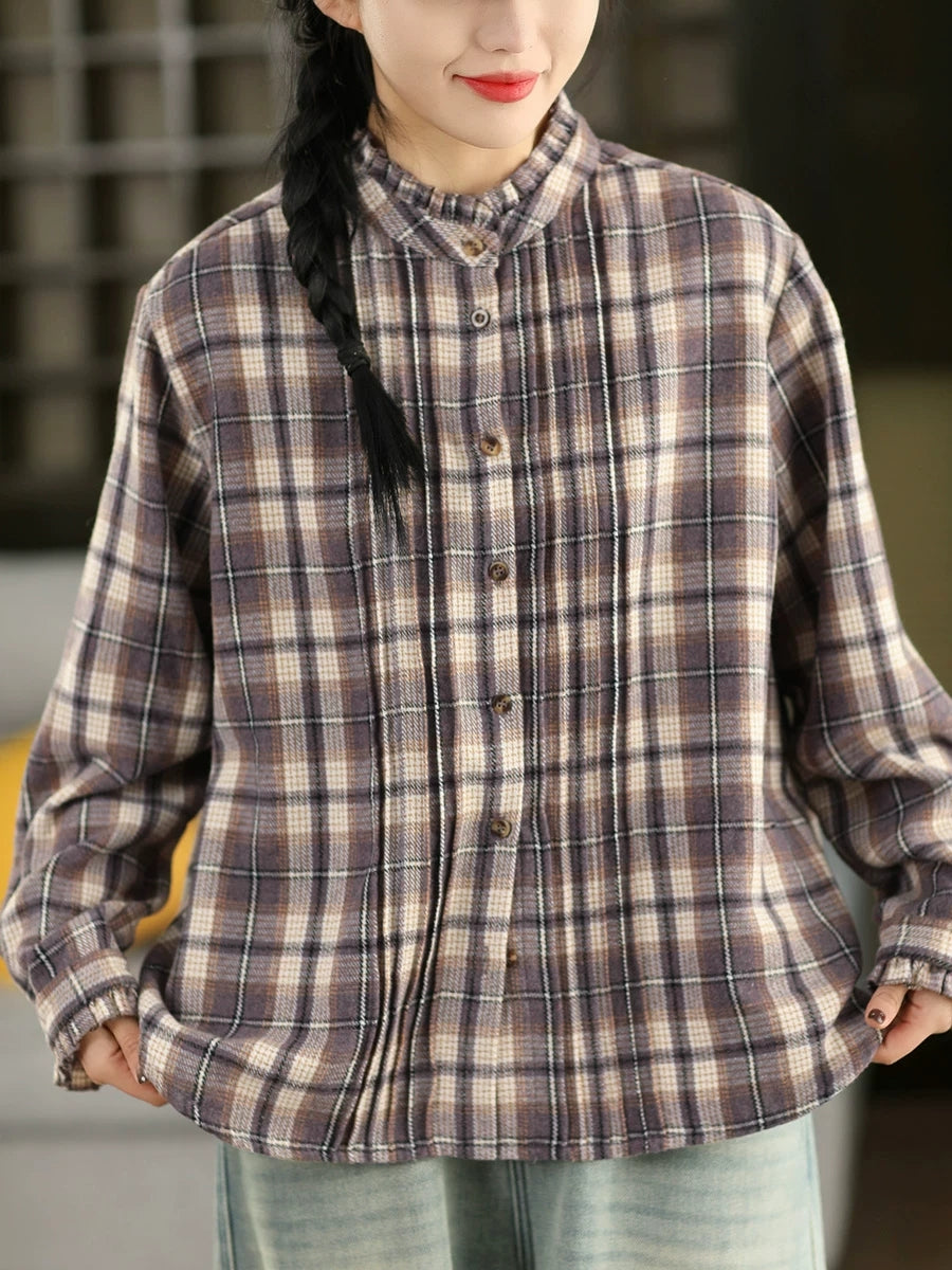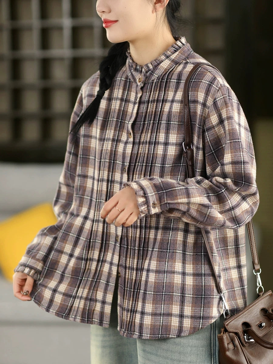 Dame forårsskjorte med vintage-ternet krave