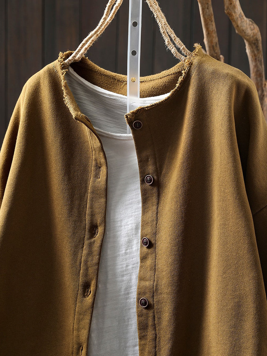 Kvinders forårsfrakke i ren farve med O-hals i bomuld