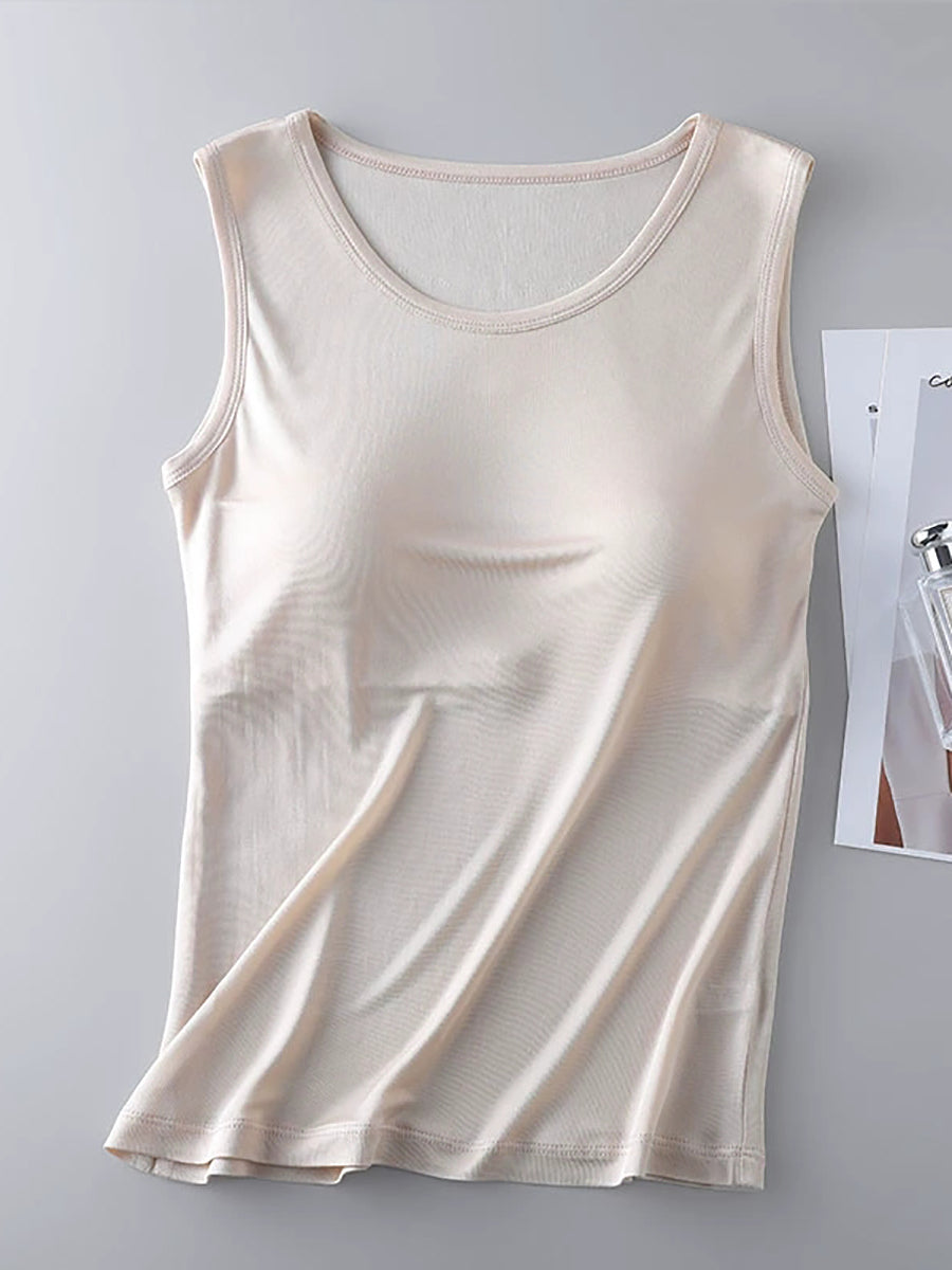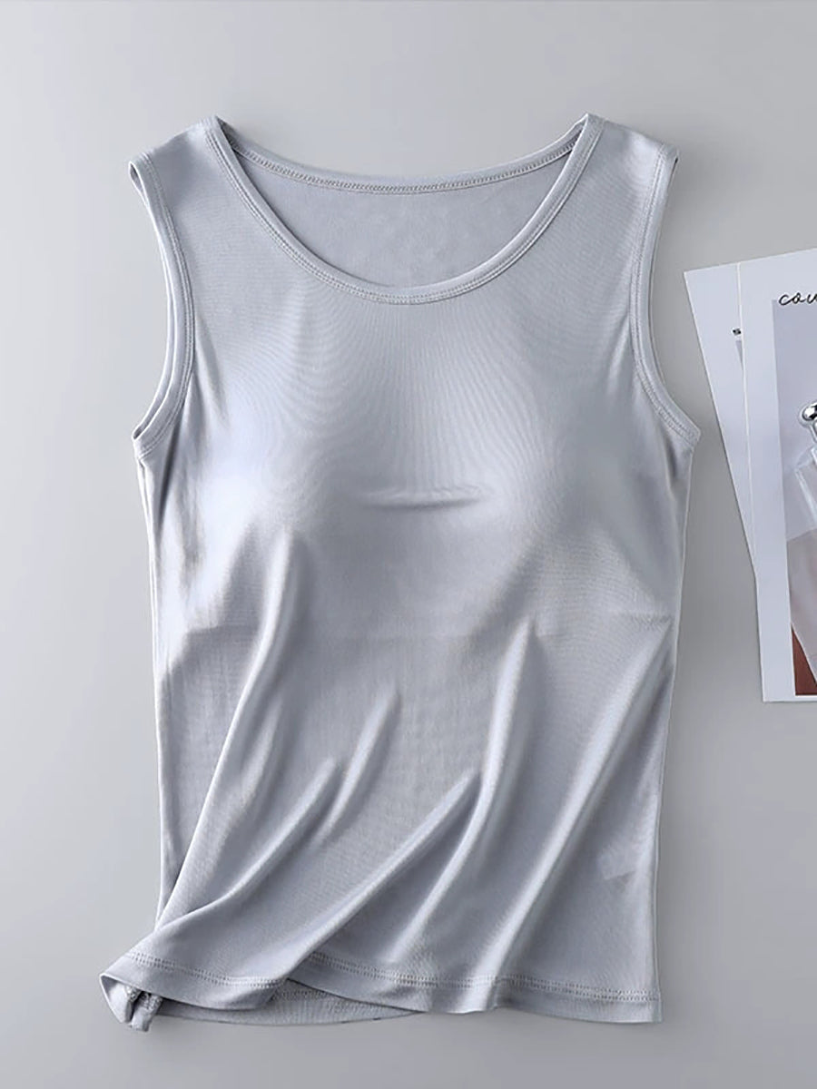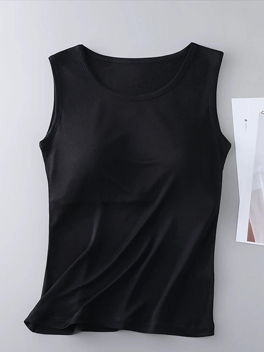 Kvinders ren farve O-hals med bh-indlæg basevest
