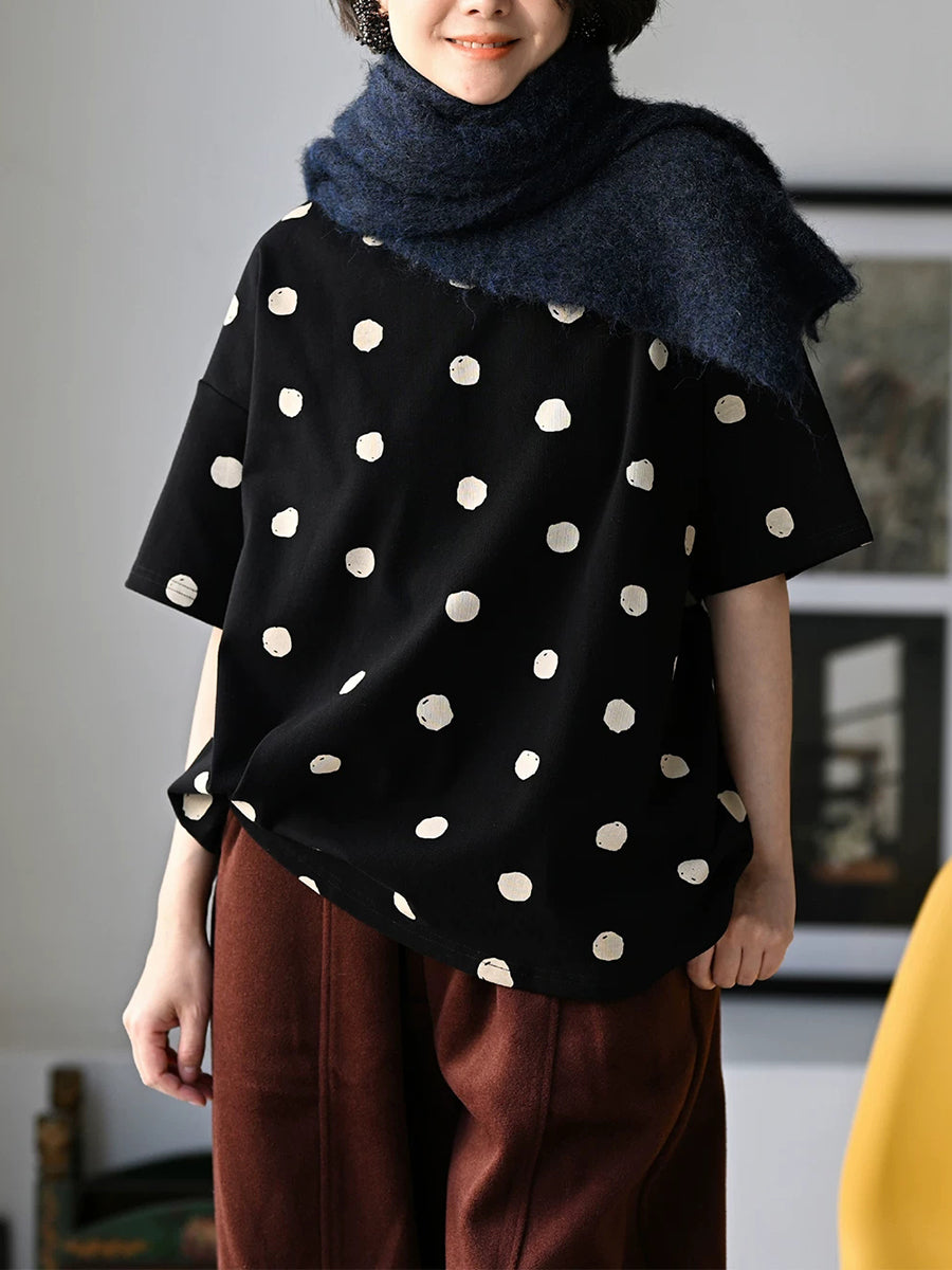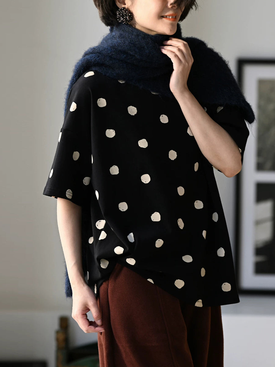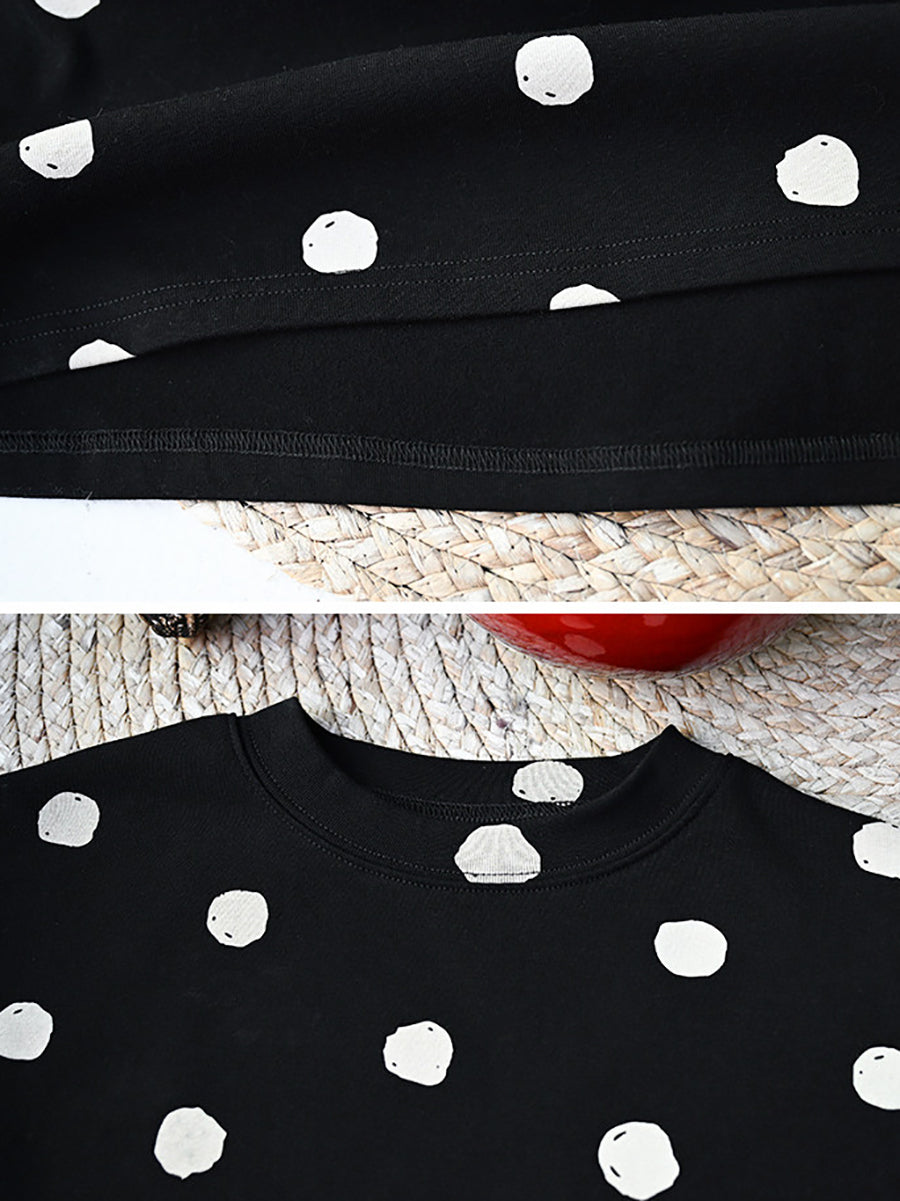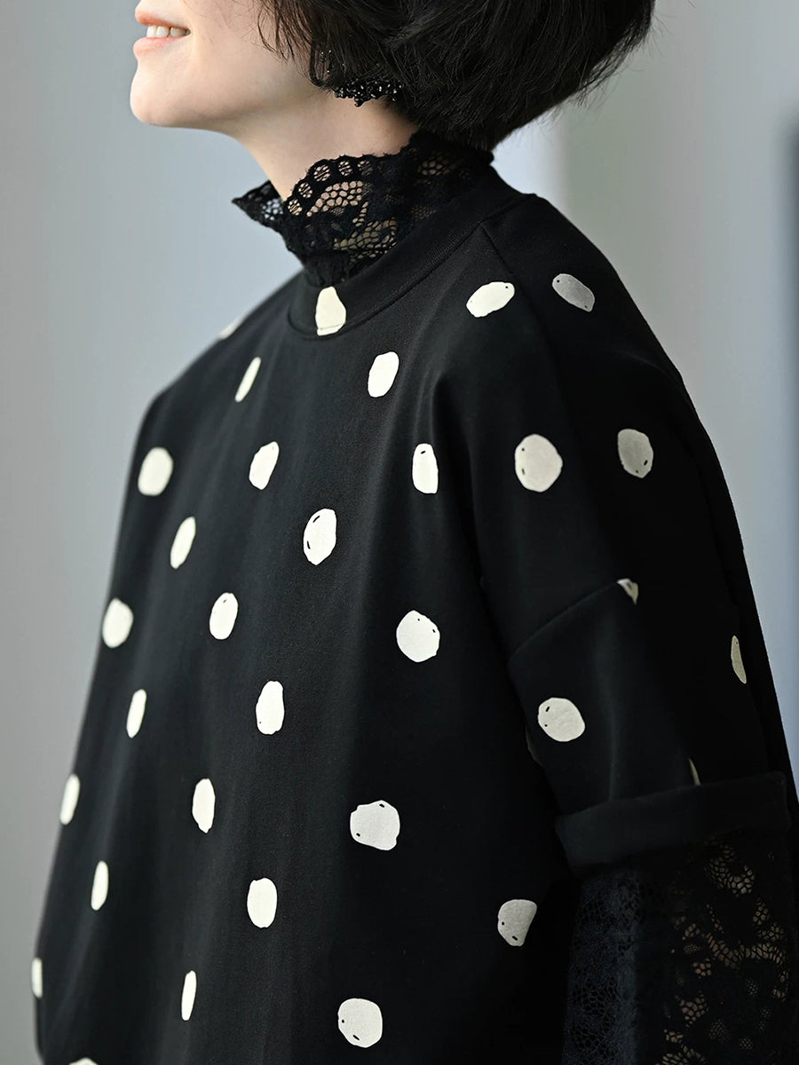 Kvinder Forår Vintage Prikket O-hals Tyk Bluse