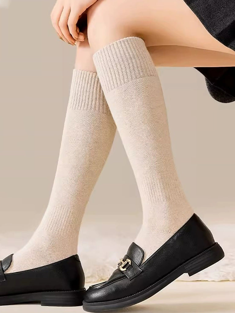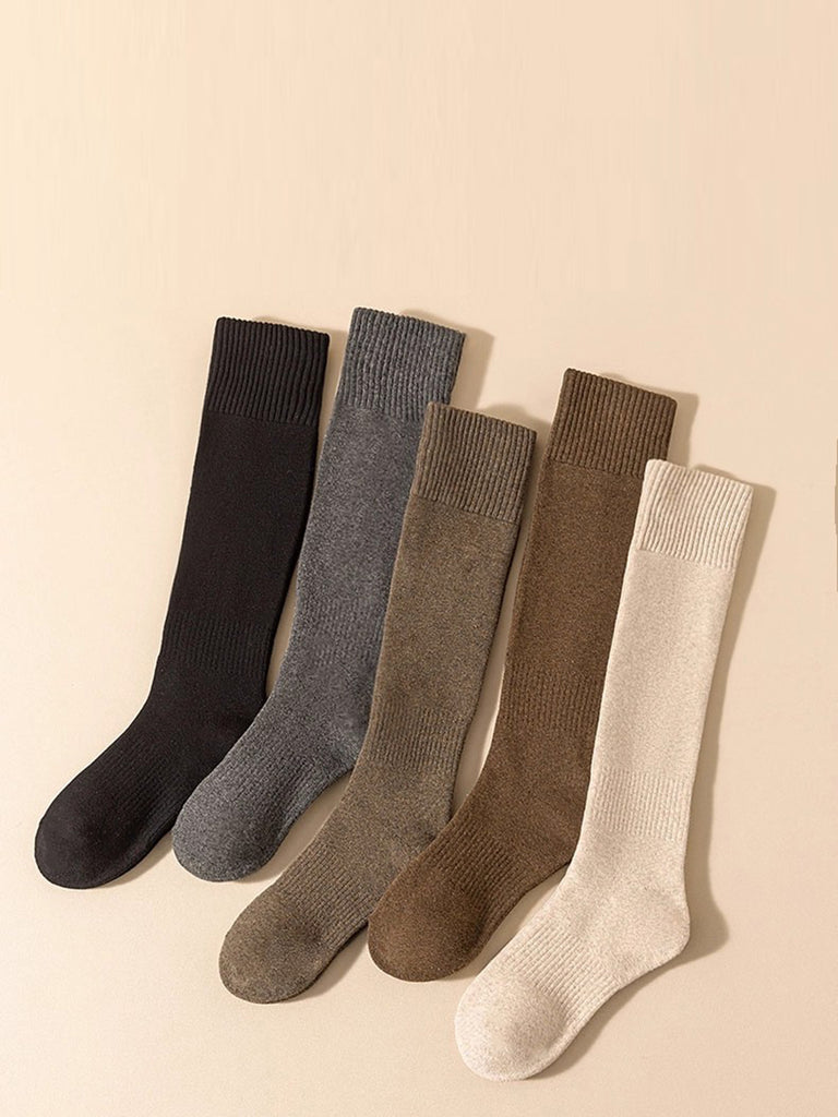 5 par dame vintersokker med fleecefor, tykke lægsokker