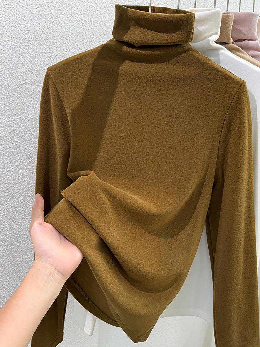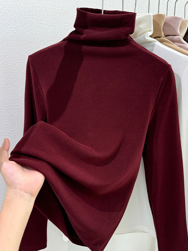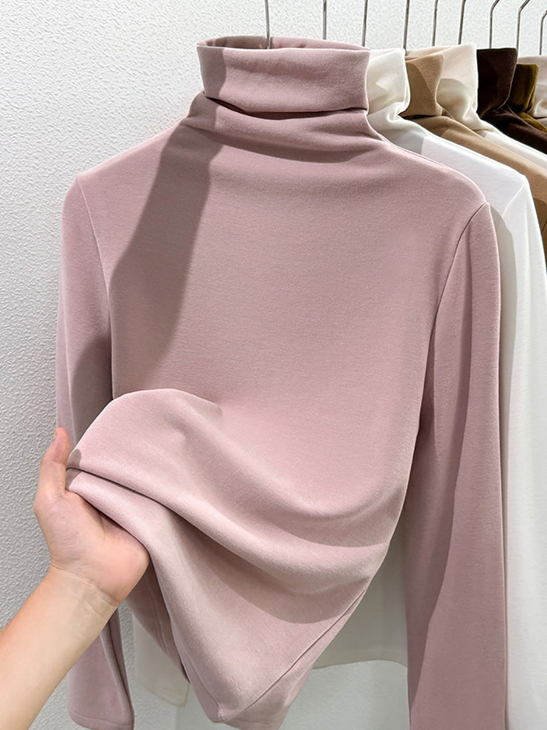 Kvinder Vinter Casual Ren Farve Rullekravebluse