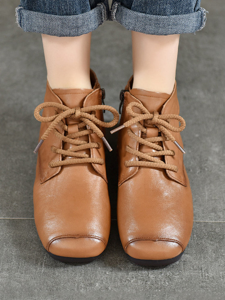 Kvinder Efterårs Ankelstøvler i ægte læder med lav hæl