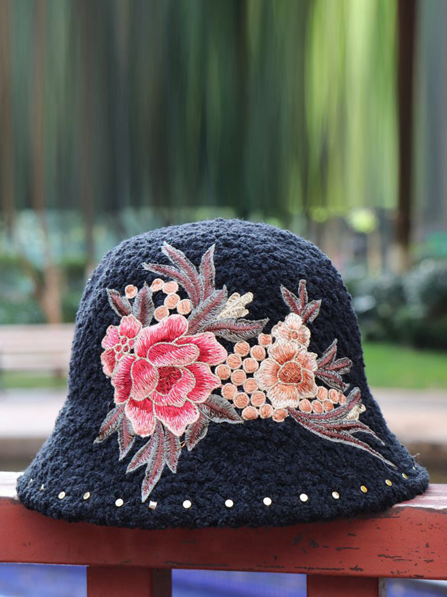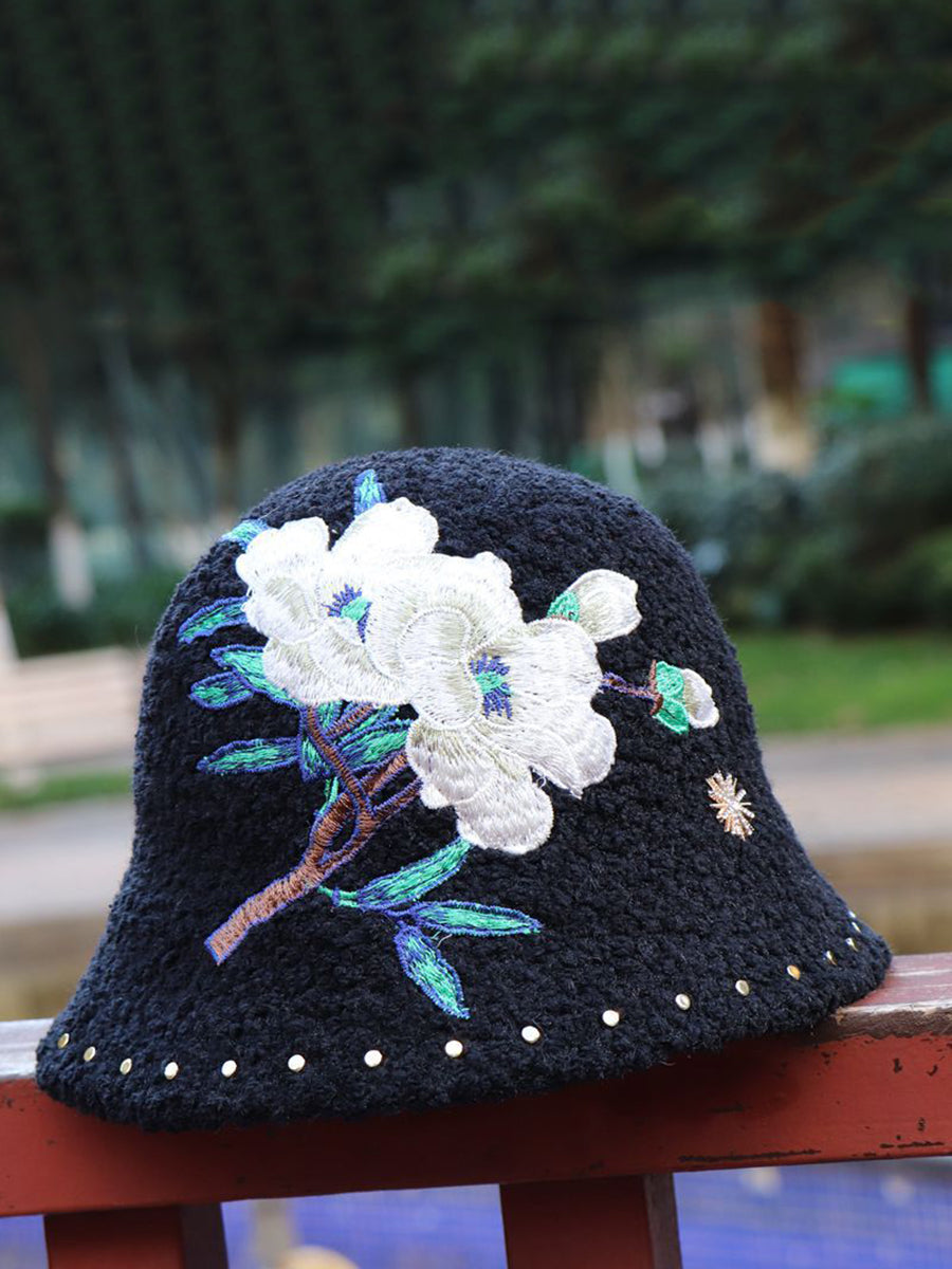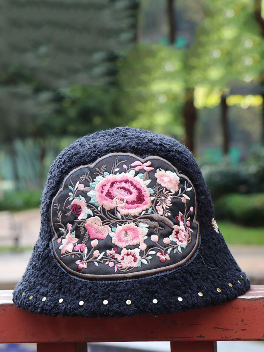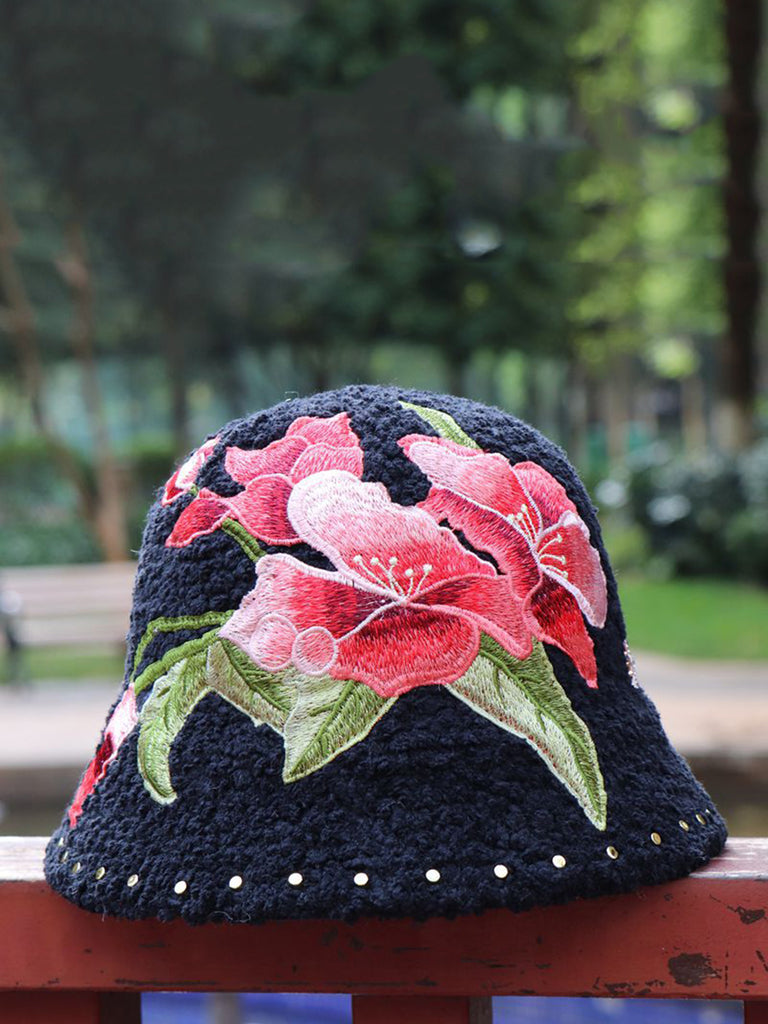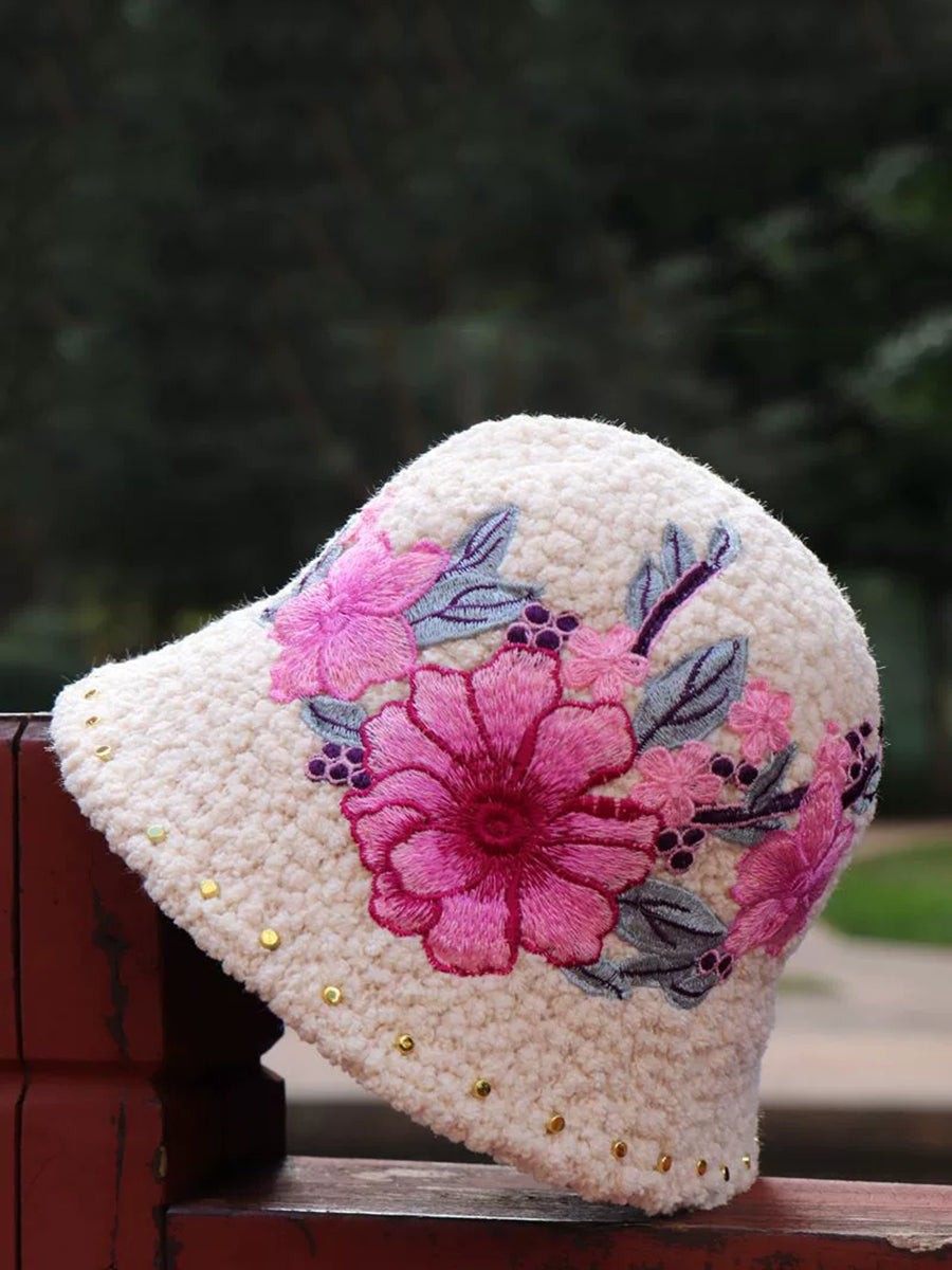 Kvinder Kunstnerisk Vinter Blomsterbroderi Fleecehue