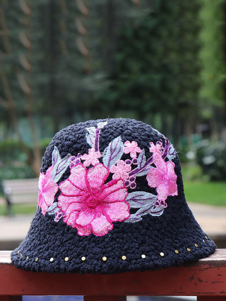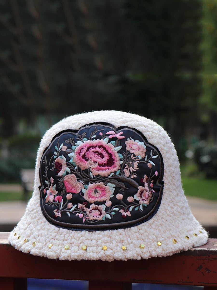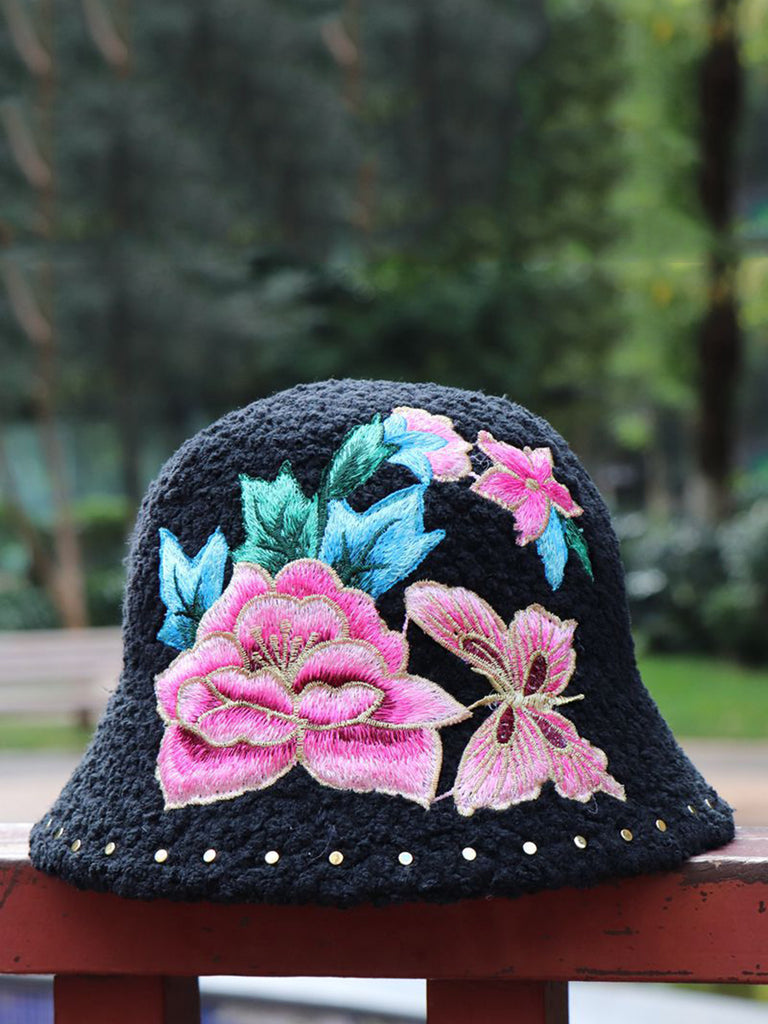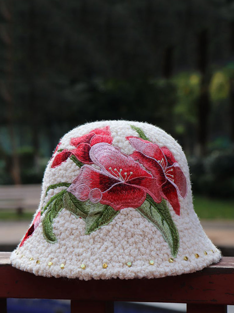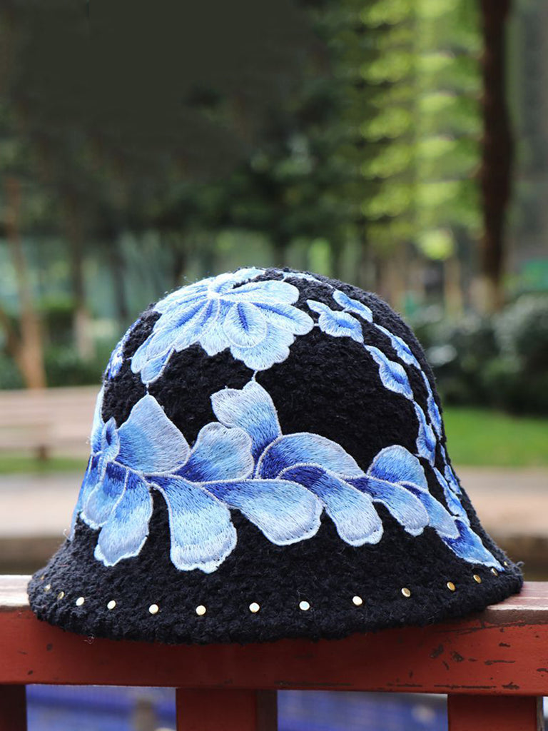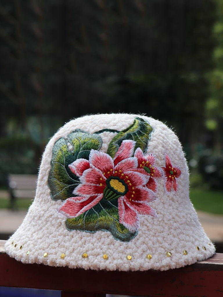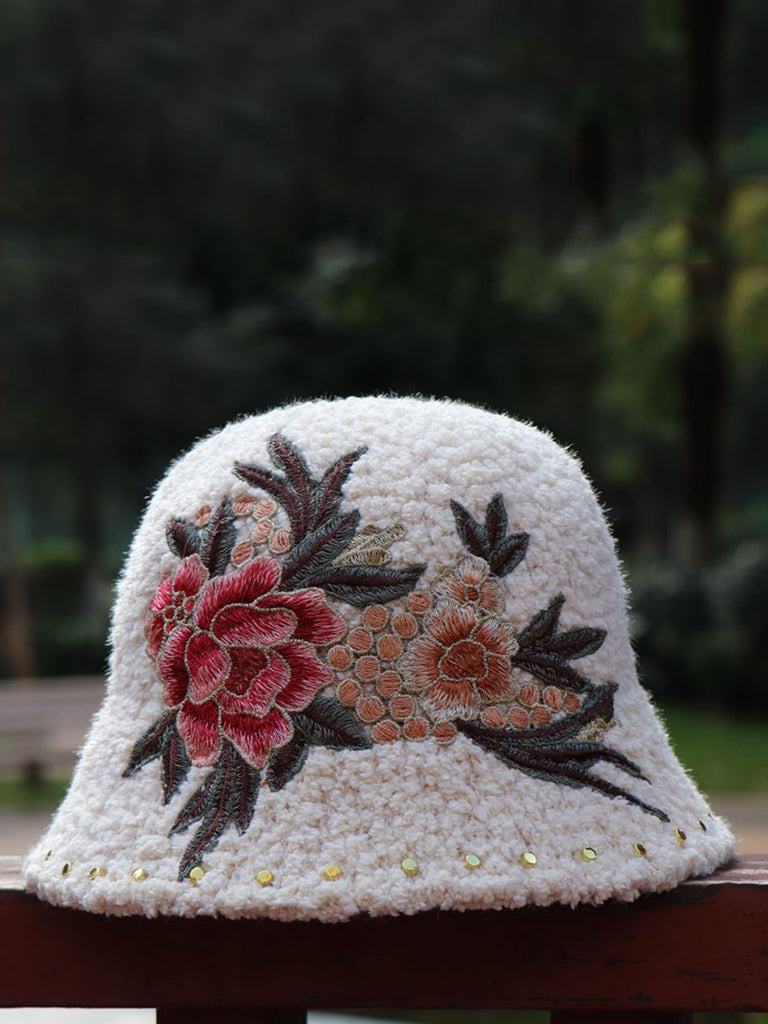 Kvinder Kunstnerisk Vinter Blomsterbroderi Fleecehue