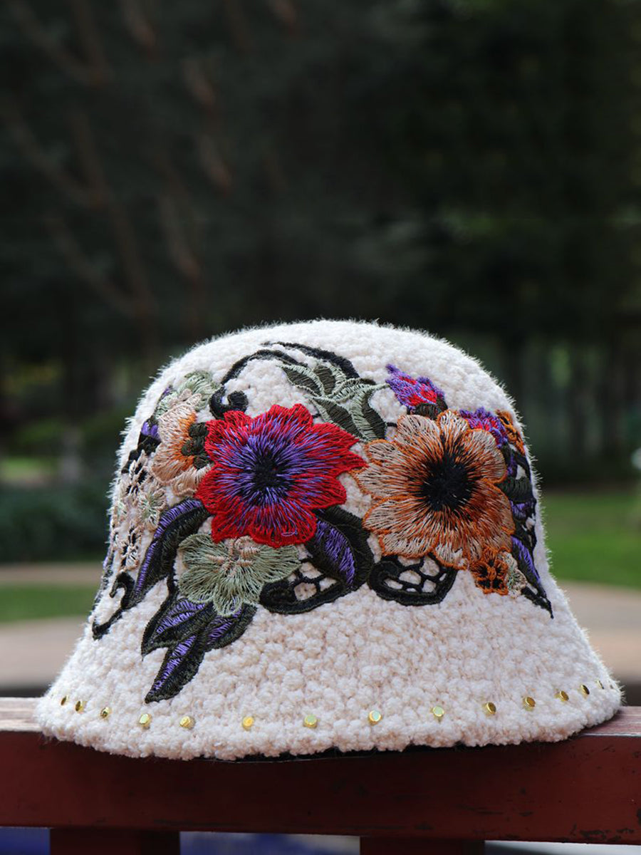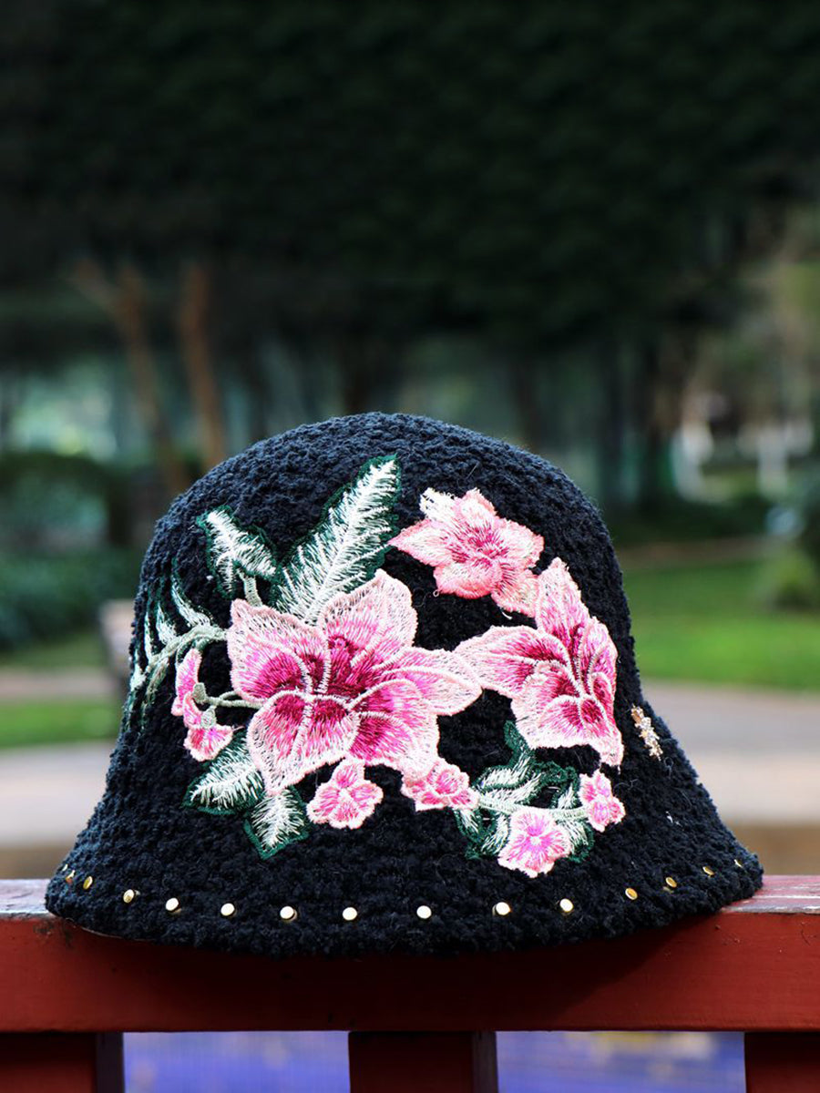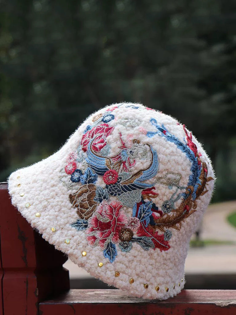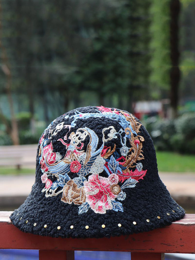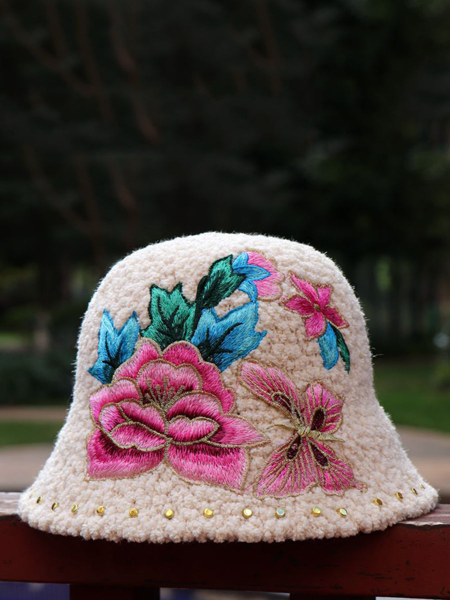 Kvinder Kunstnerisk Vinter Blomsterbroderi Fleecehue