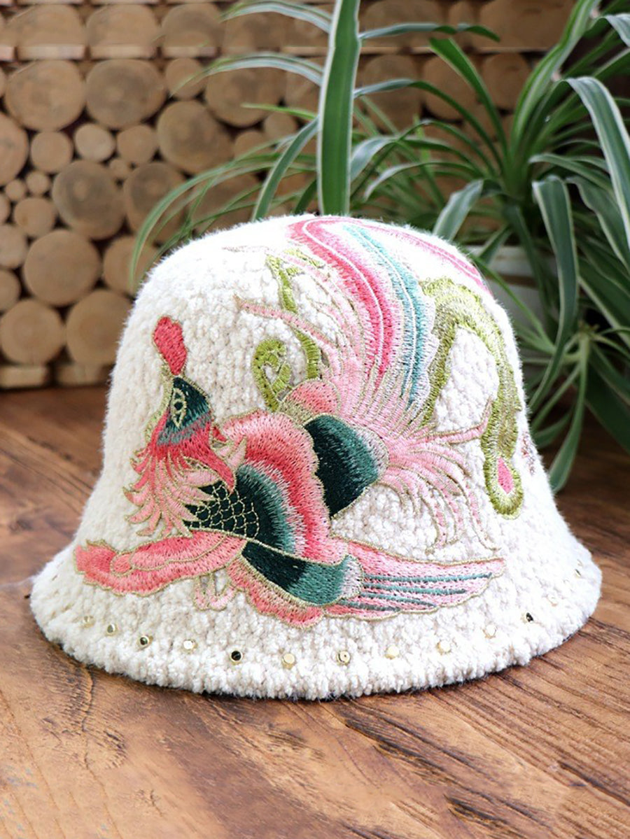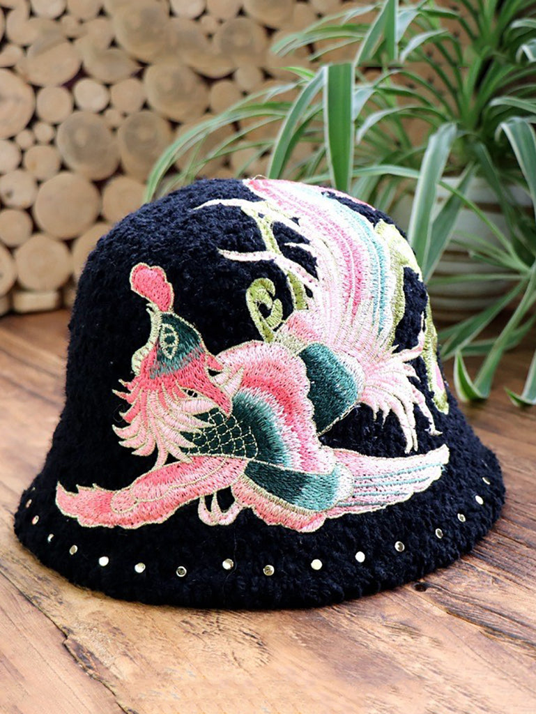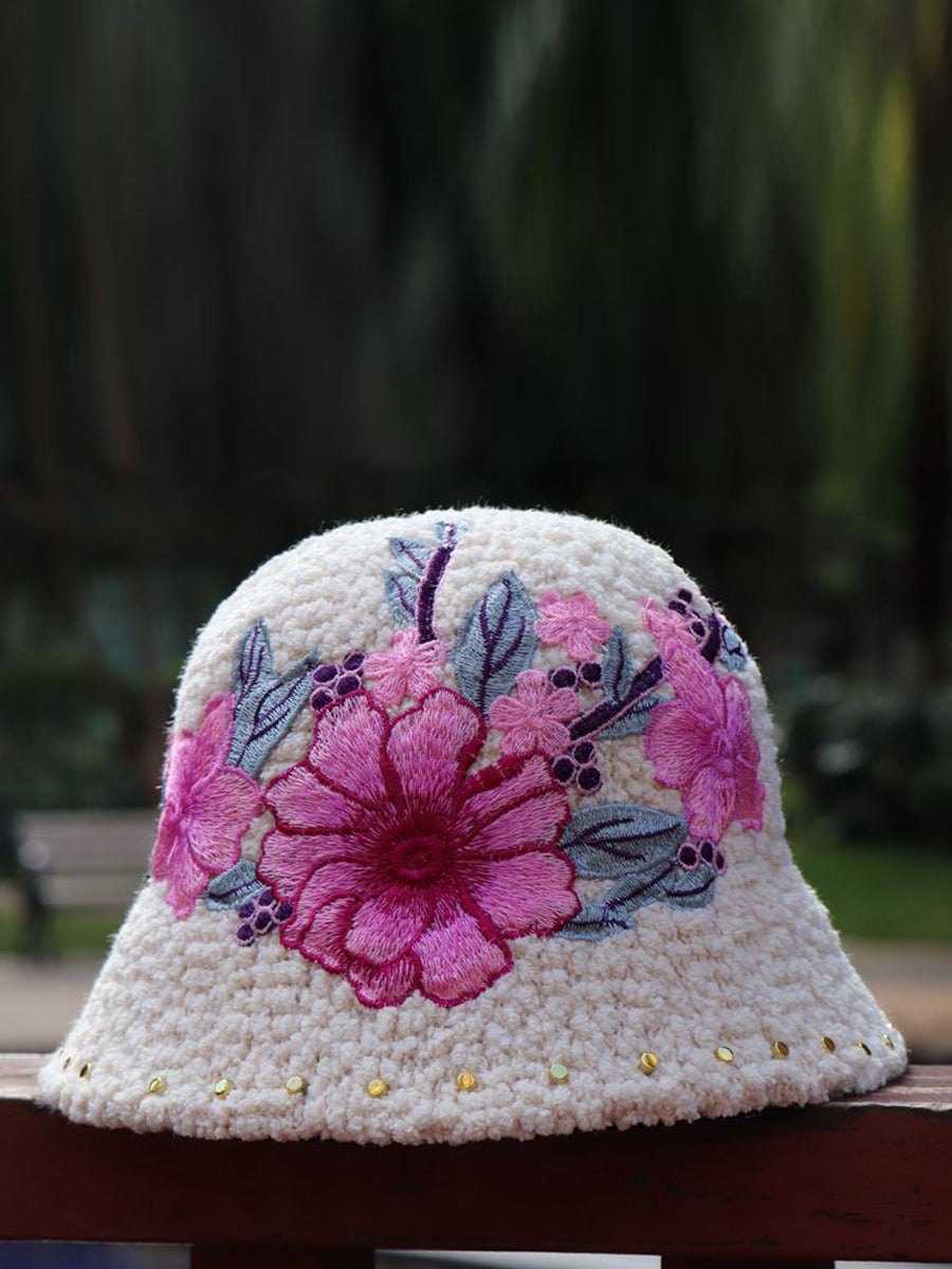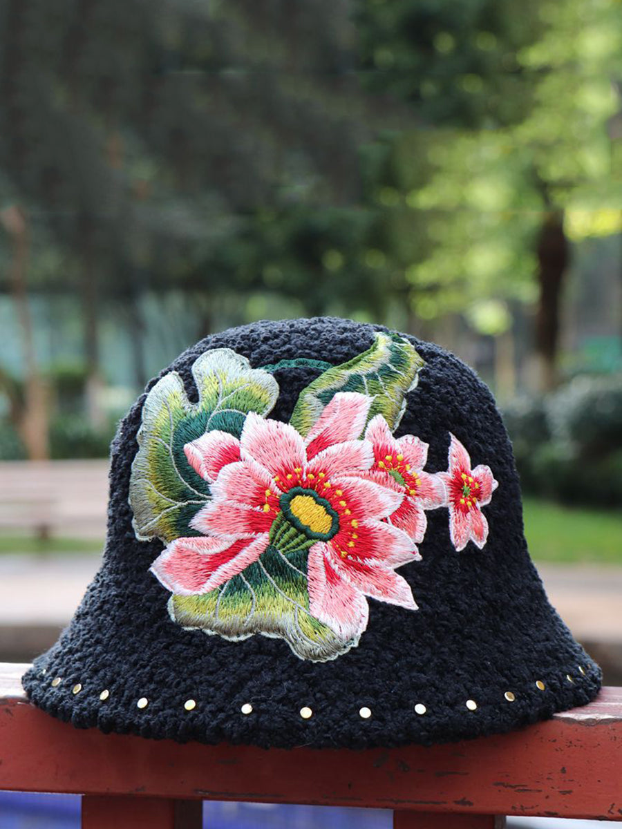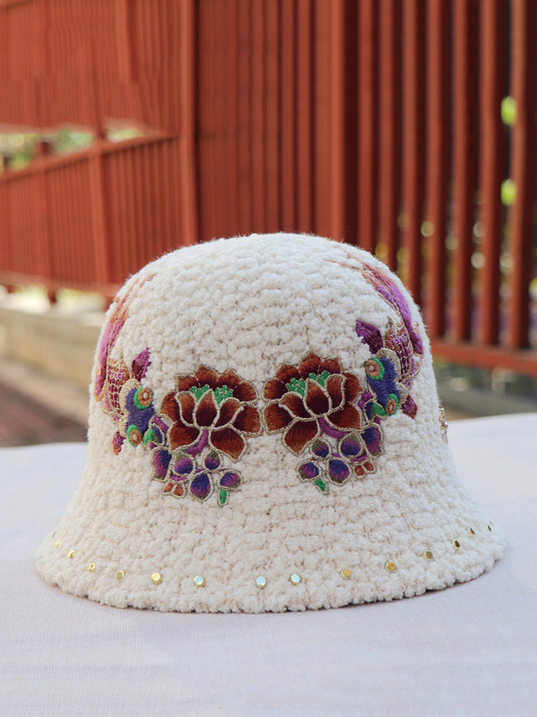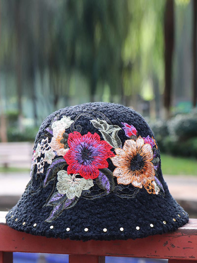 Kvinder Kunstnerisk Vinter Blomsterbroderi Fleecehue