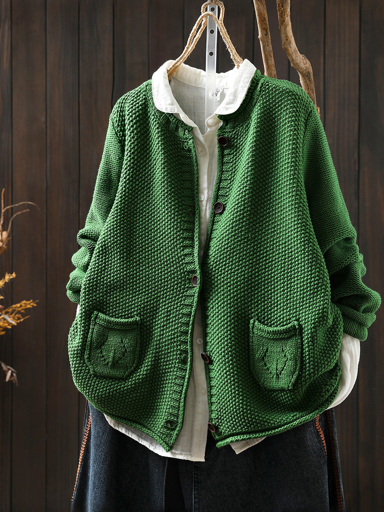 Kvinder efterårskunstnerisk ren farve strikket O-hals sweater