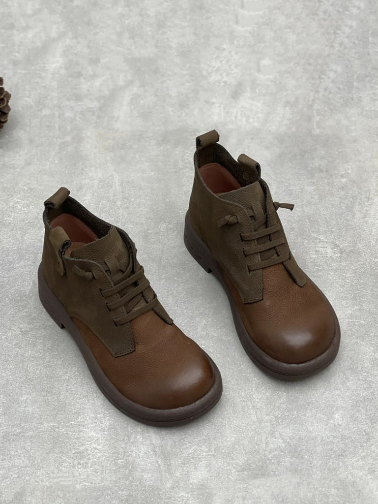 Kvinder Retro Colorblock Læder Lave Hell Støvler