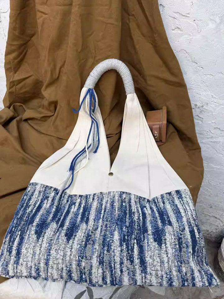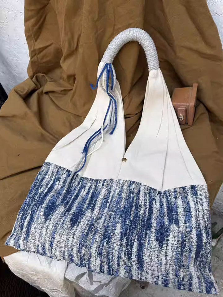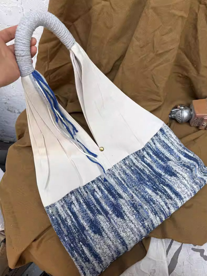 3038 Etnisk Farveblokerende Stribet Skuldertaske