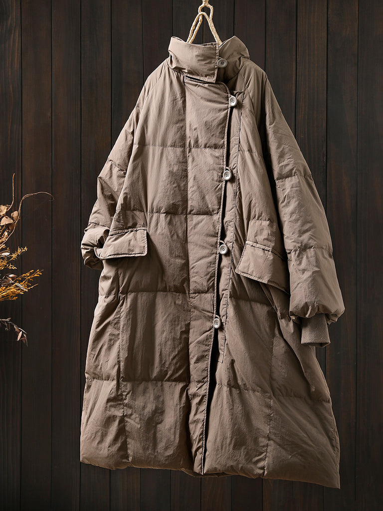 Kvinder Efterår Casual Ren Farve Stand Collar Dunfrakke
