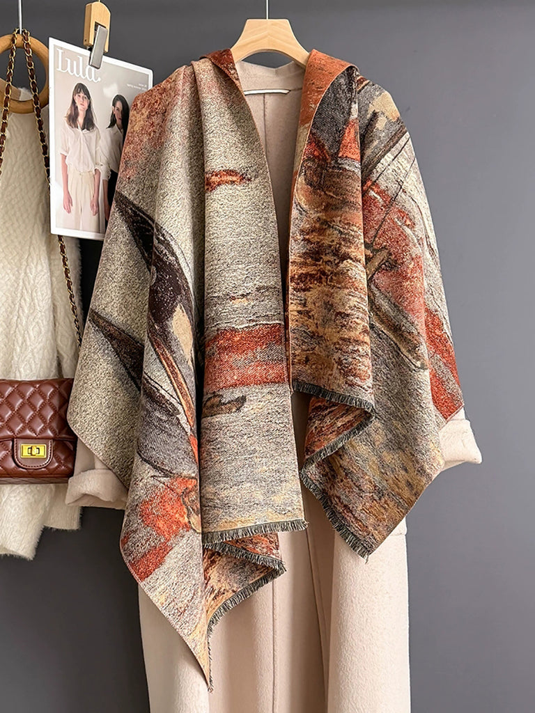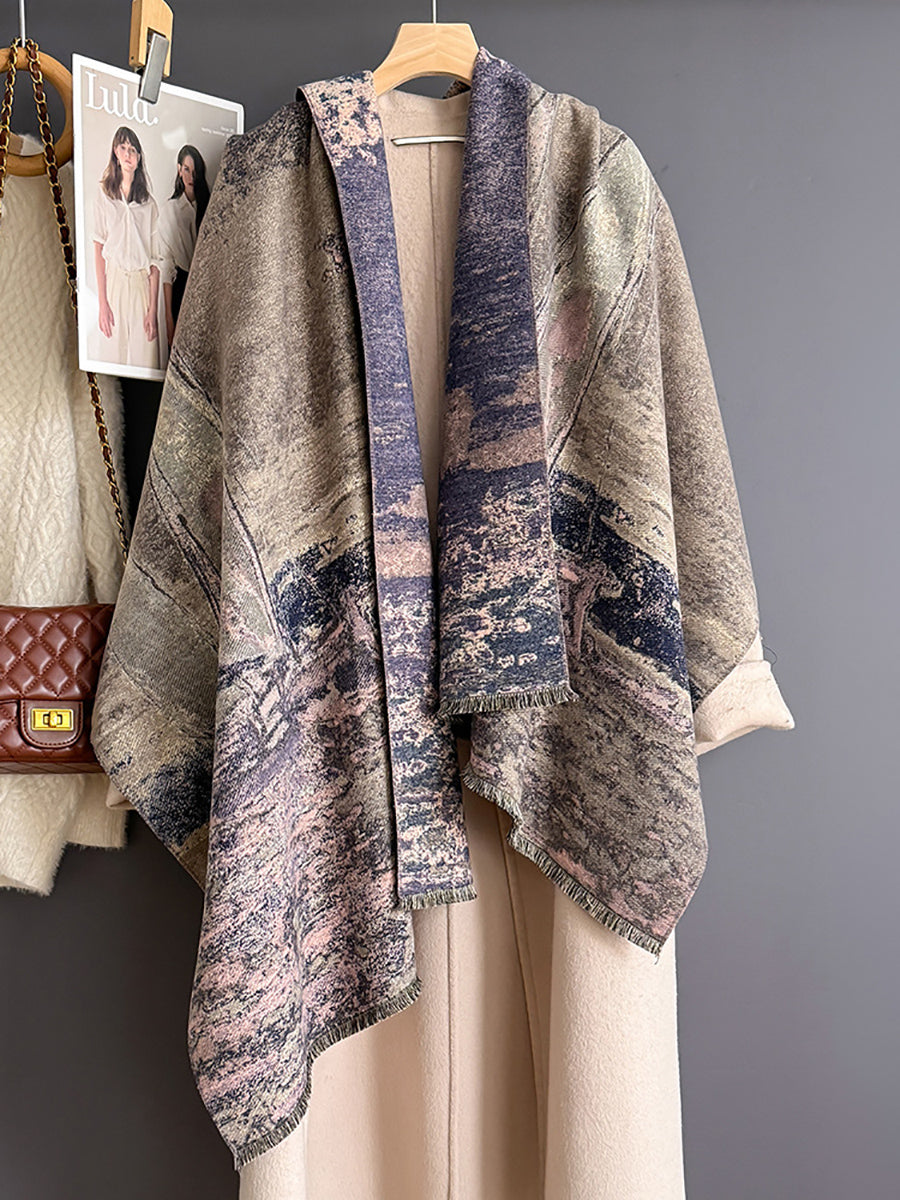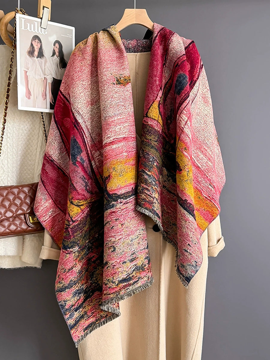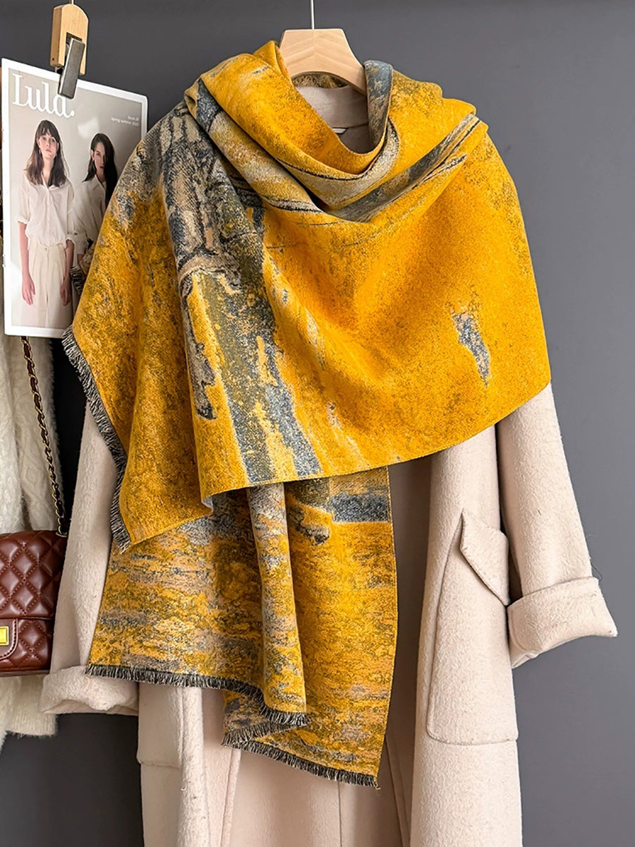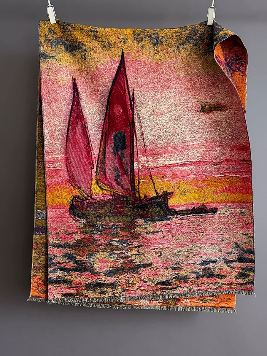 Vintage vinter oliemaleri sejlbåd sjal tørklæde