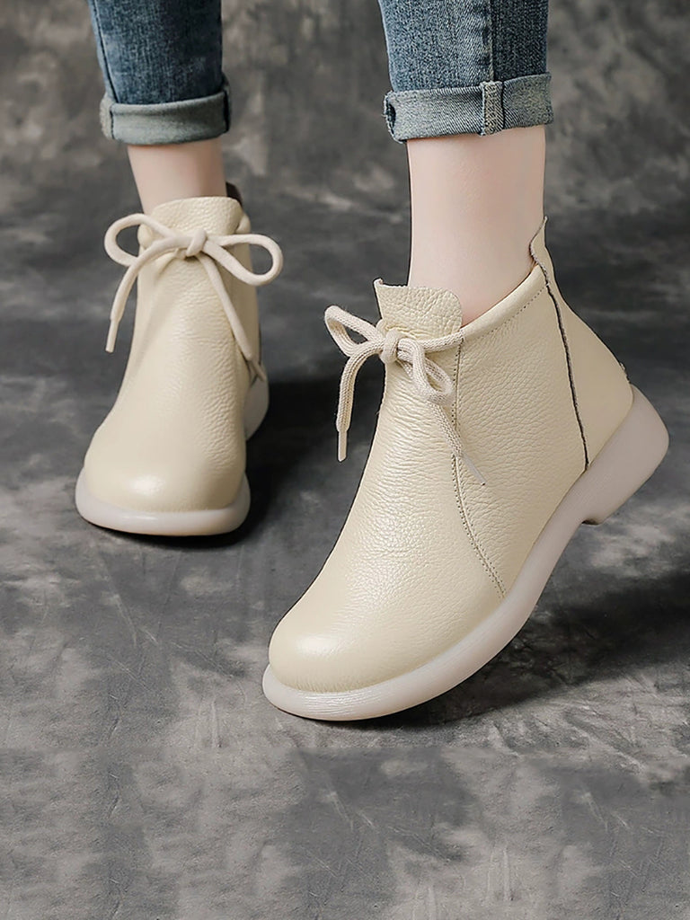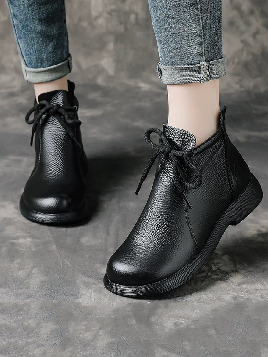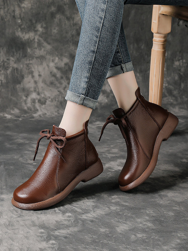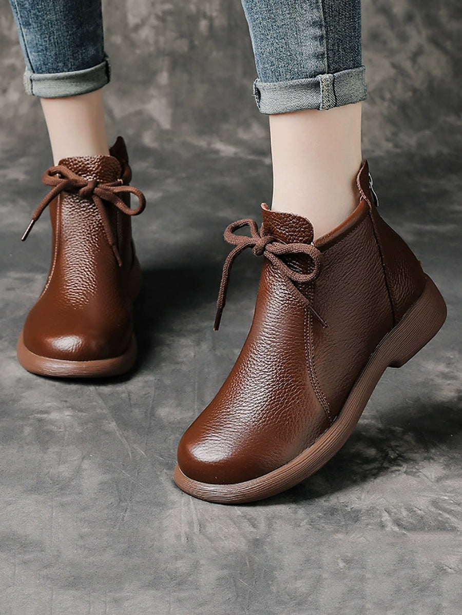 Kvinder Vintage ægte læder lavhælede støvler