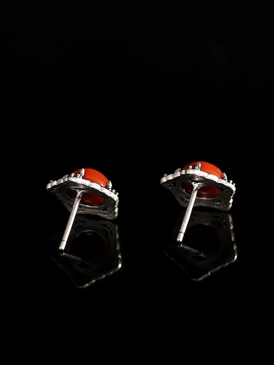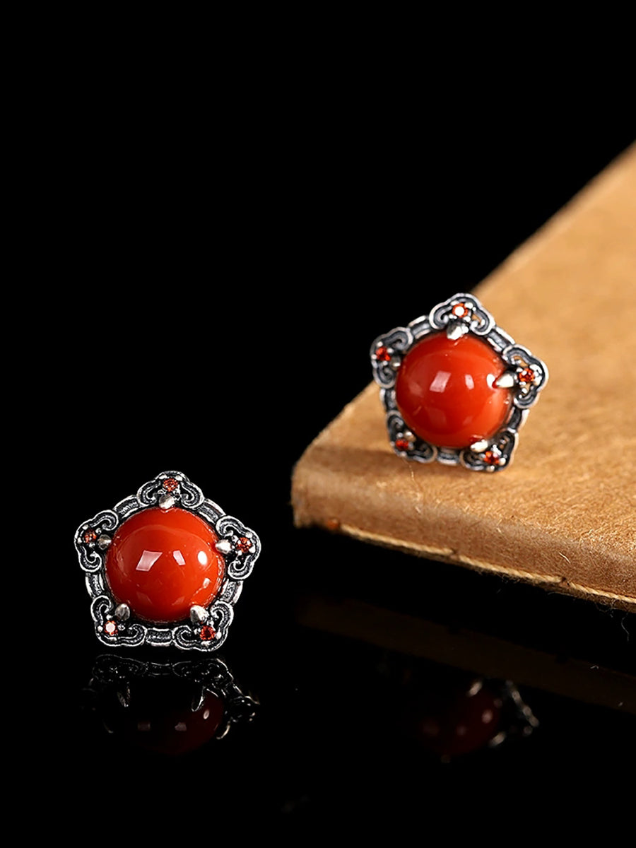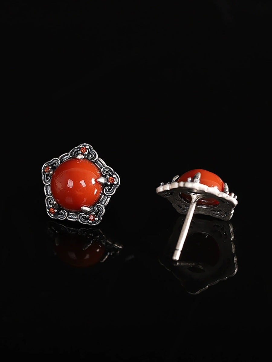 Kvinder Vintage S925Sølv Rød Agat Øreringe