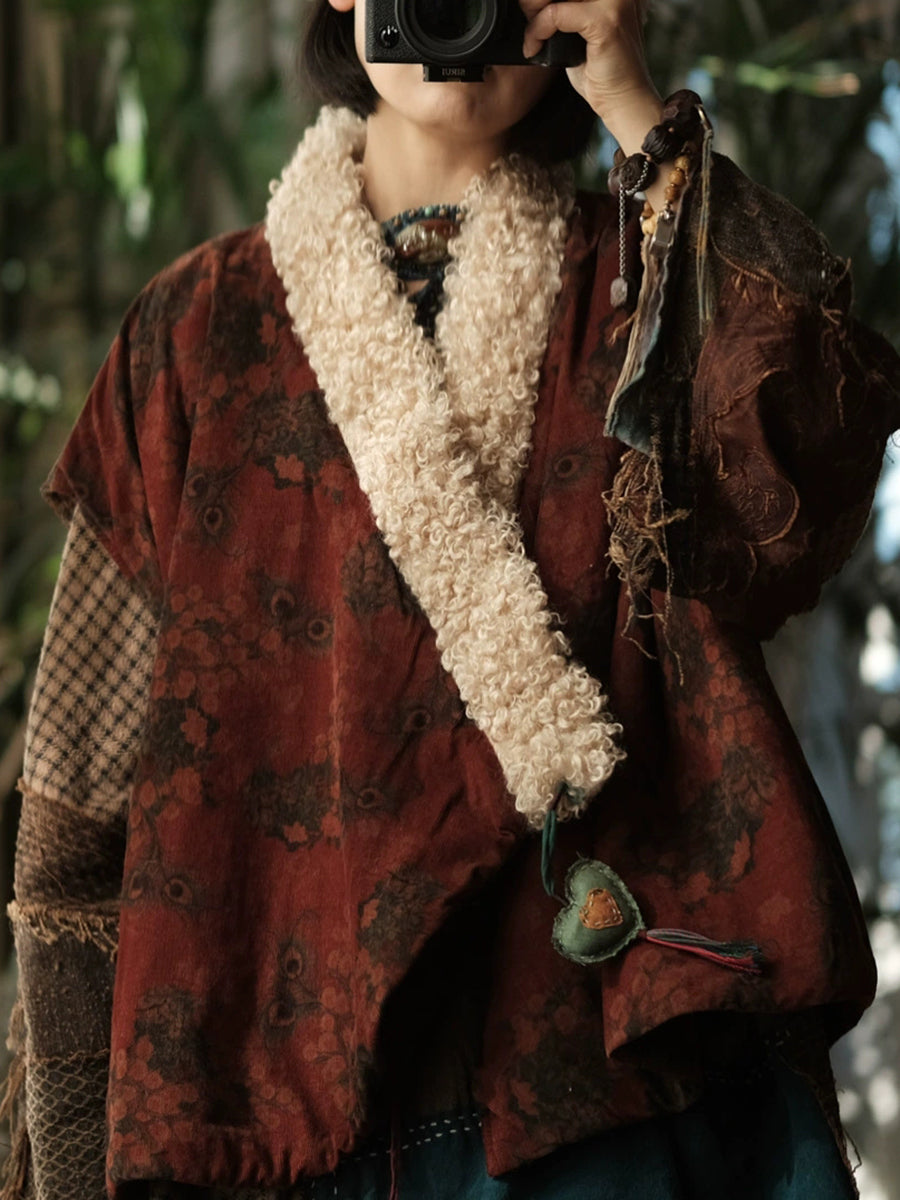 Kvinder Vinter Vintage Blomster Fleece Spliced Polstret Vest