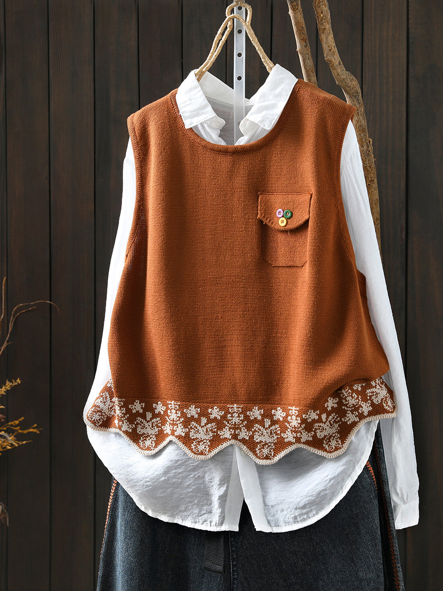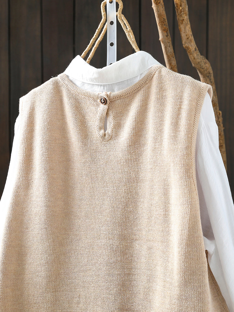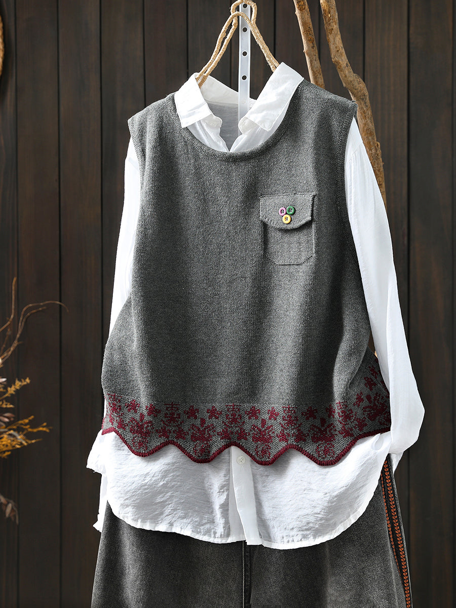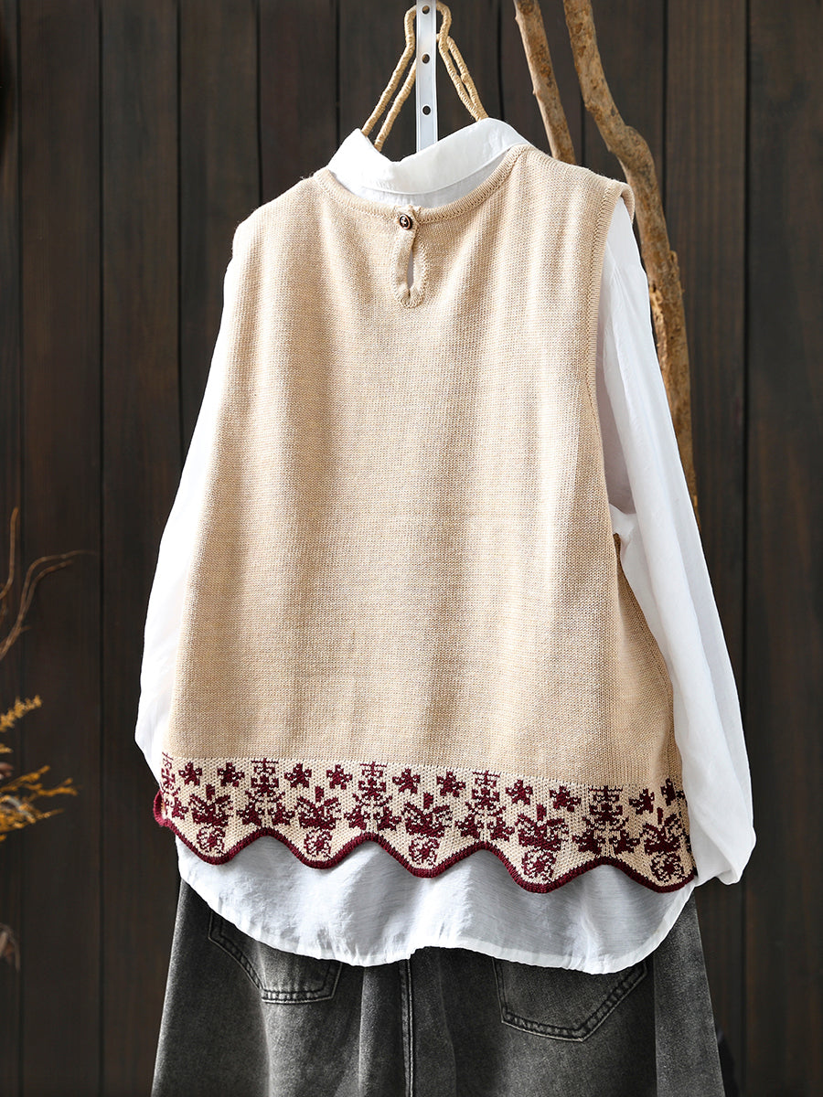 Kvinder efterårs kunstnerisk bølgekant O-hals strikket vest