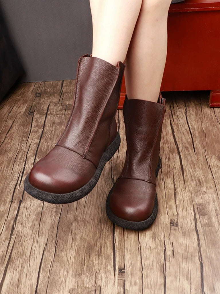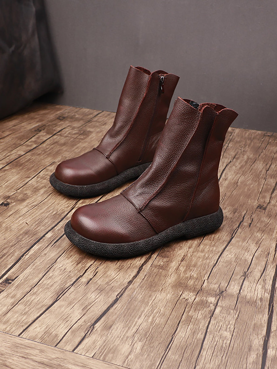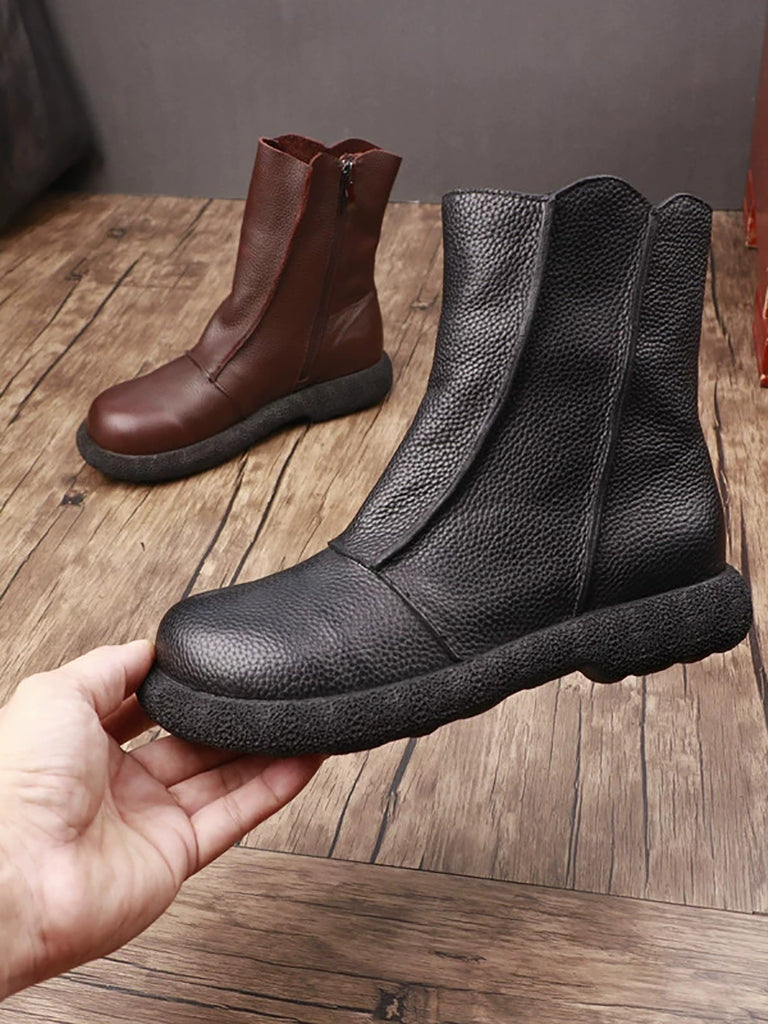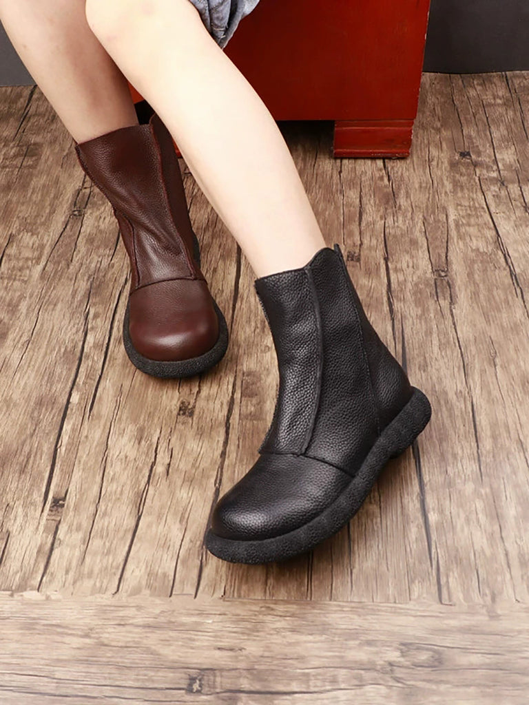 Kvinder Retro Ægte Læder Spliced Ankelstøvler