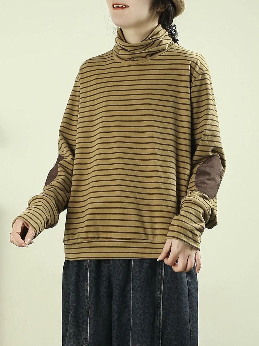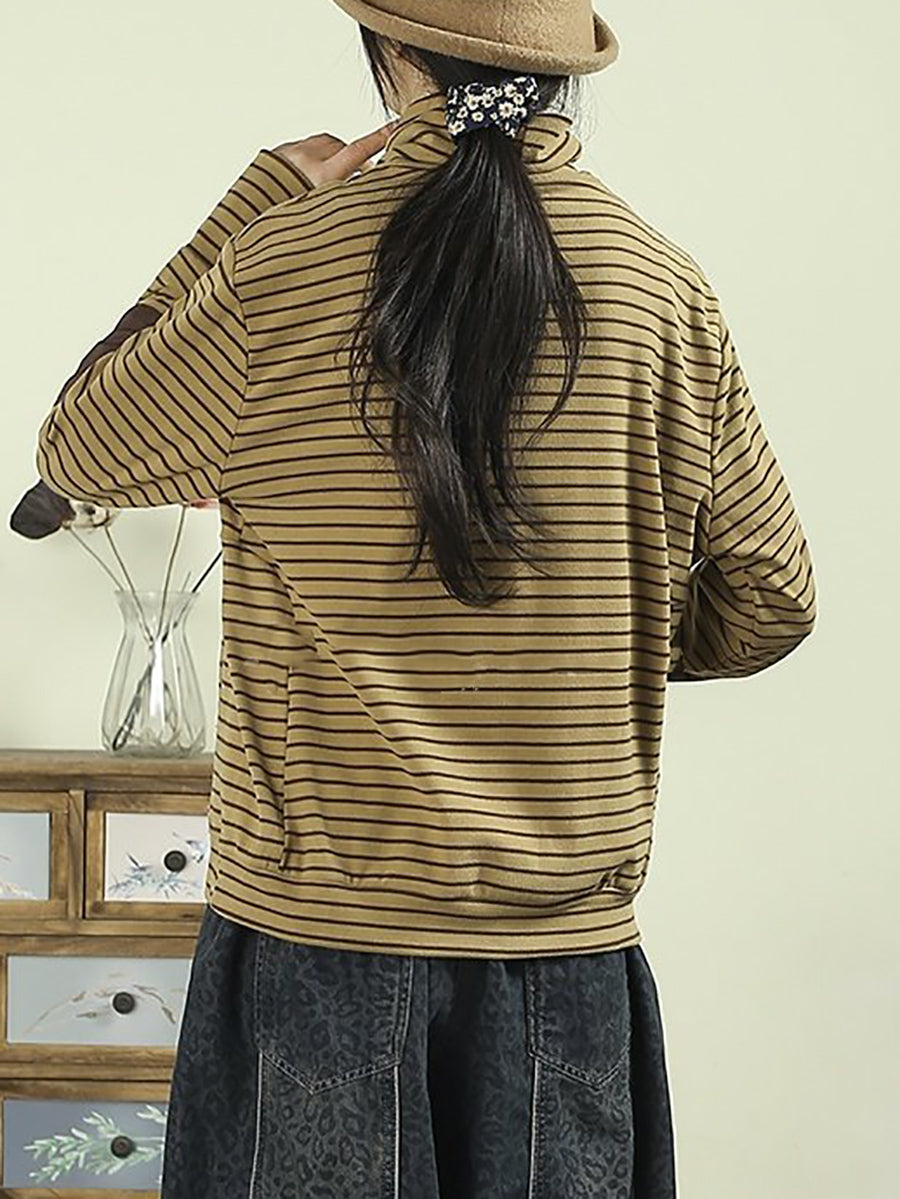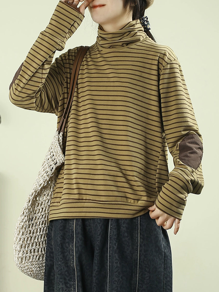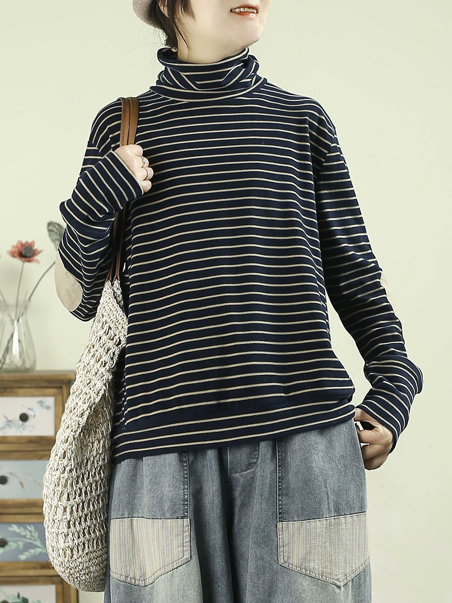 Dame kunstnerisk forårsbluse med striber og rullekrave