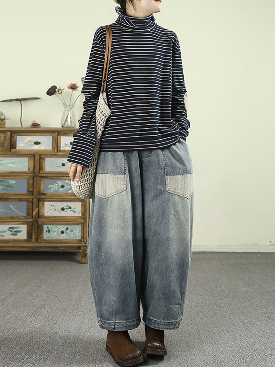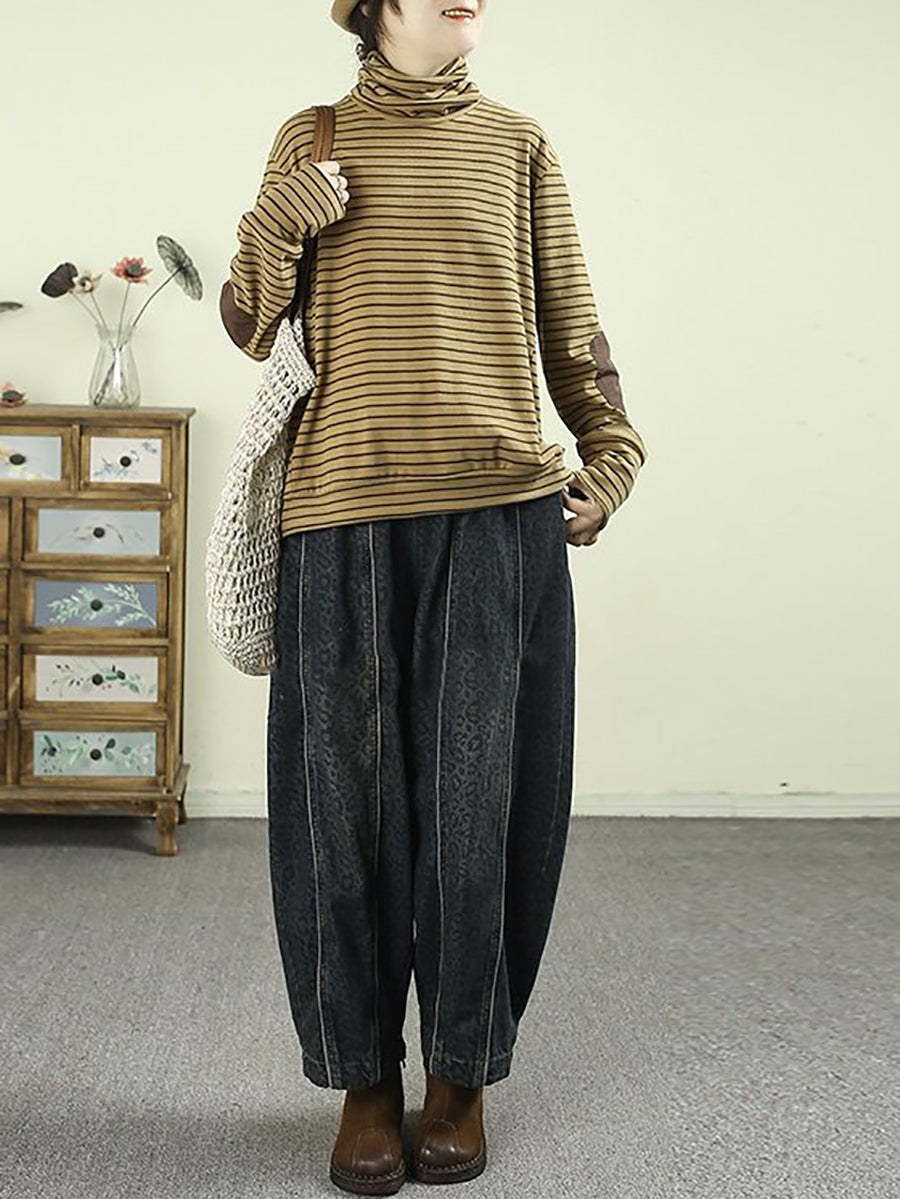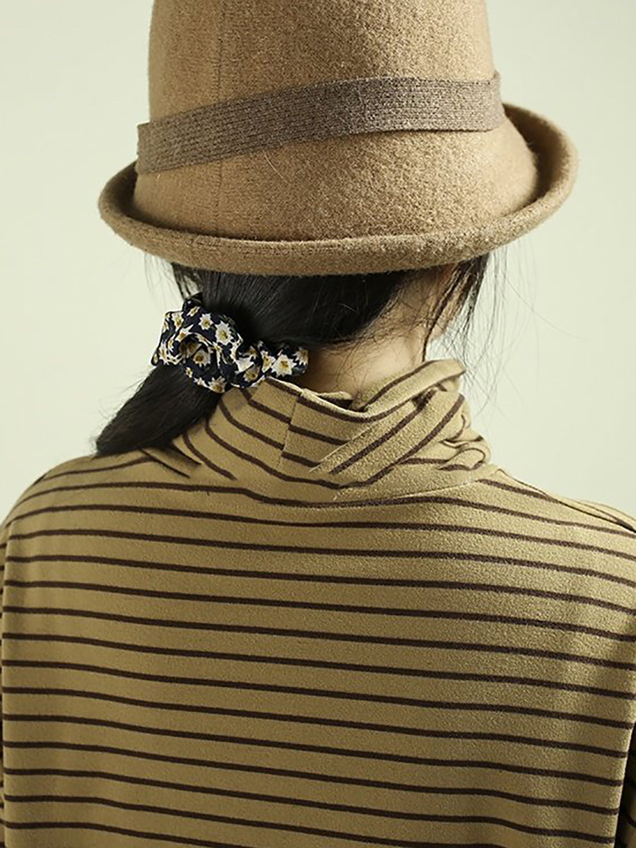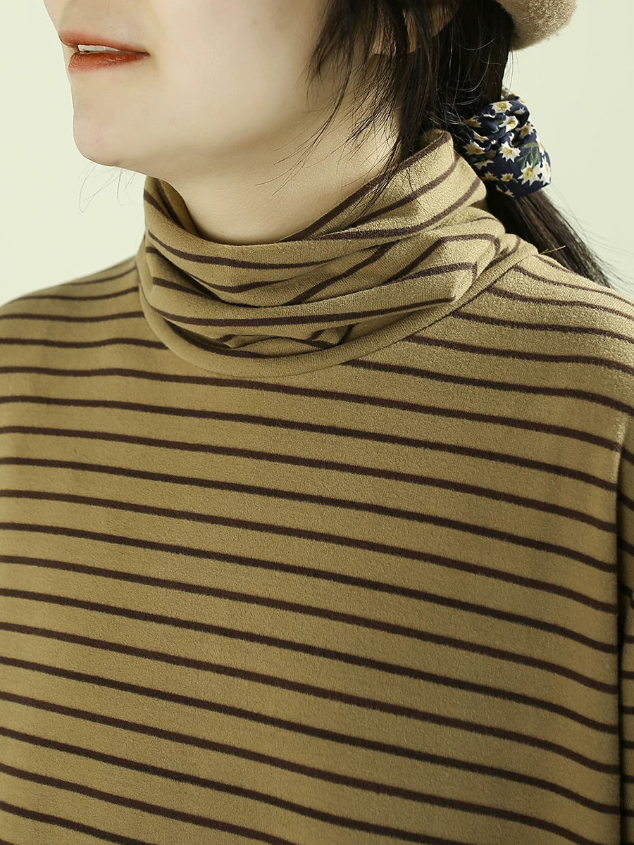 Dame kunstnerisk forårsbluse med striber og rullekrave