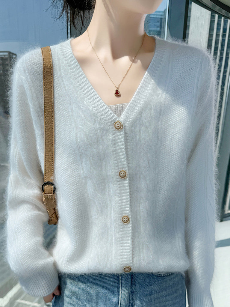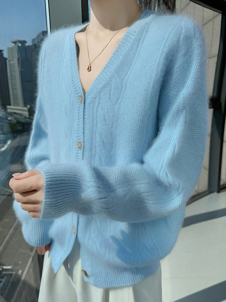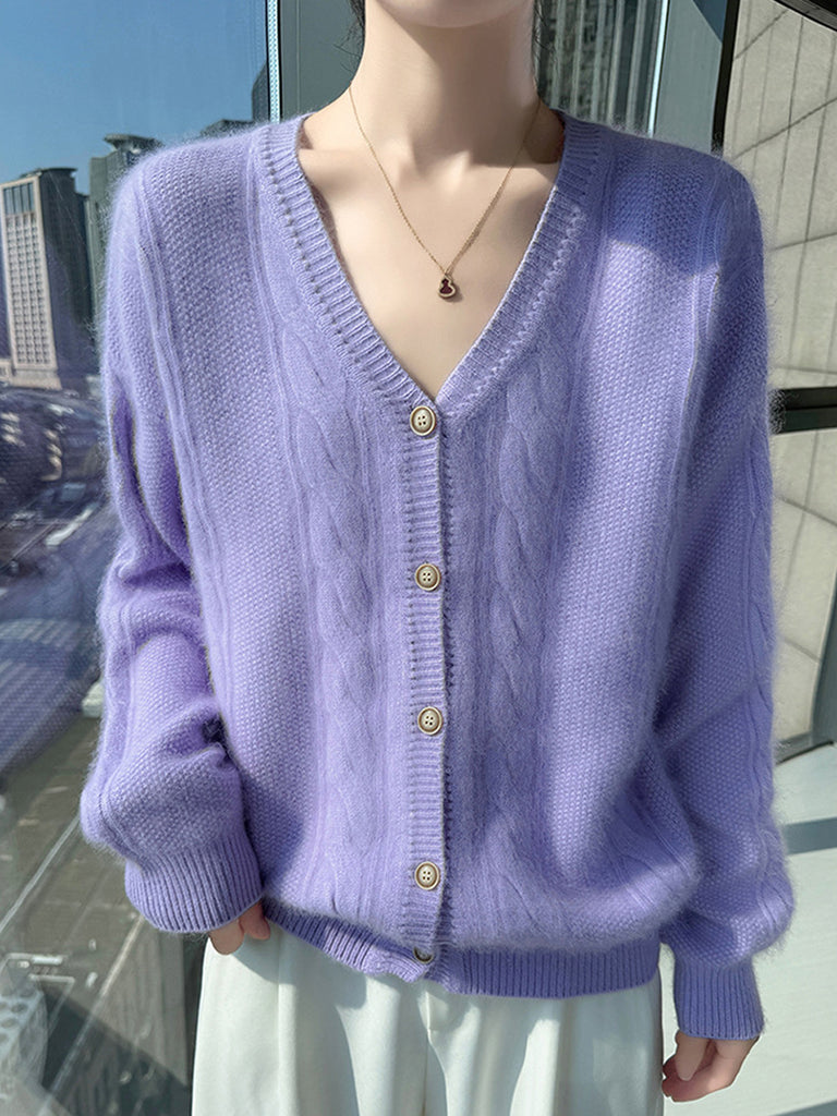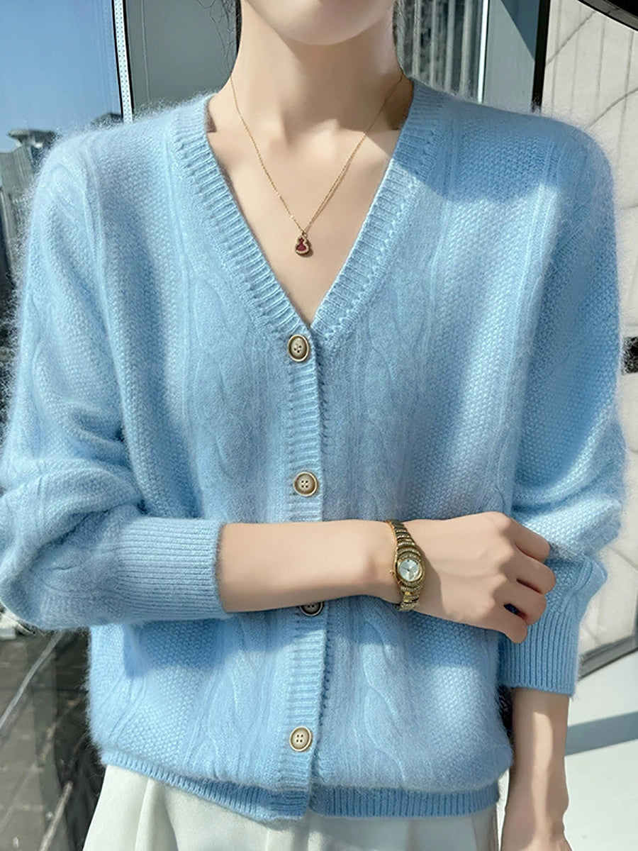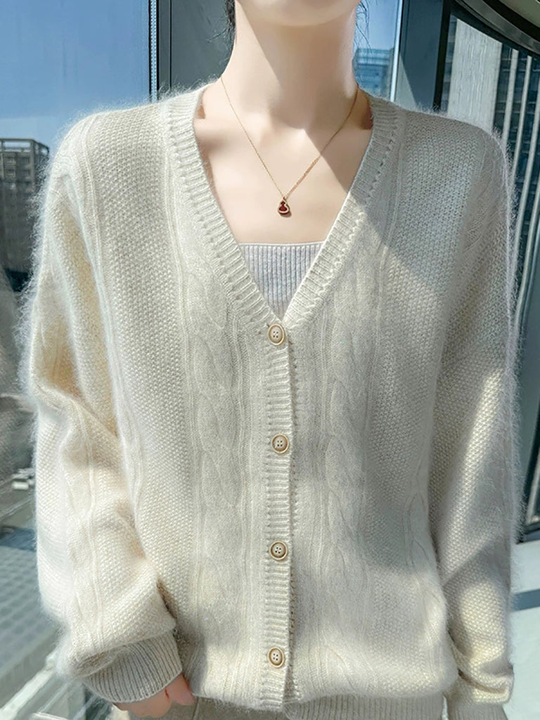 Kvinder Efterår Casual Ren Farve V-hals Sweater