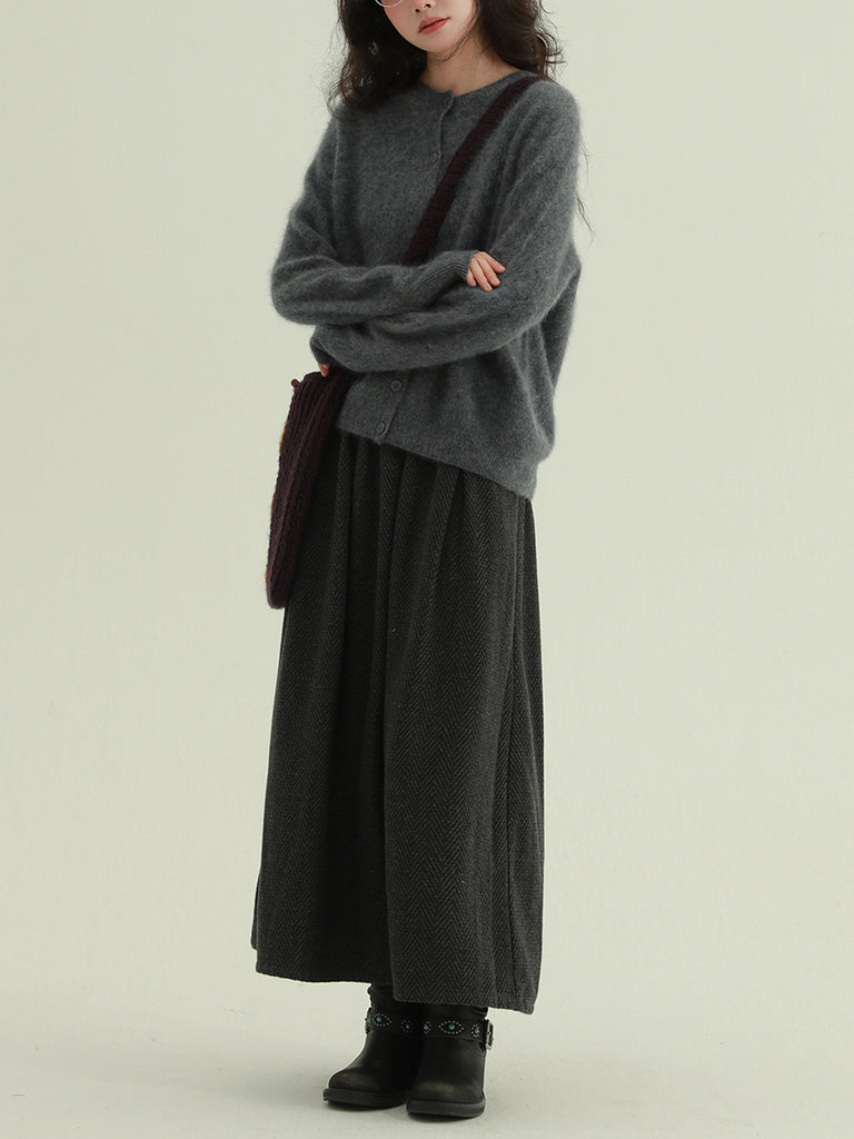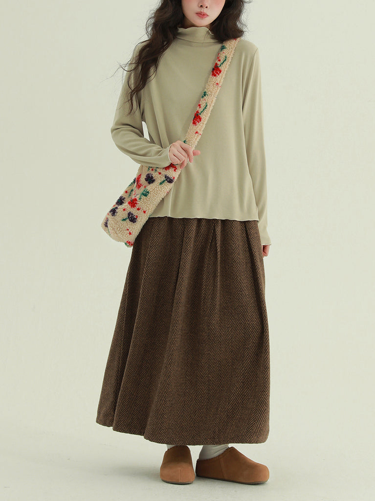 Kvinder Efterår Retro Ren Farve A-Form Nederdel