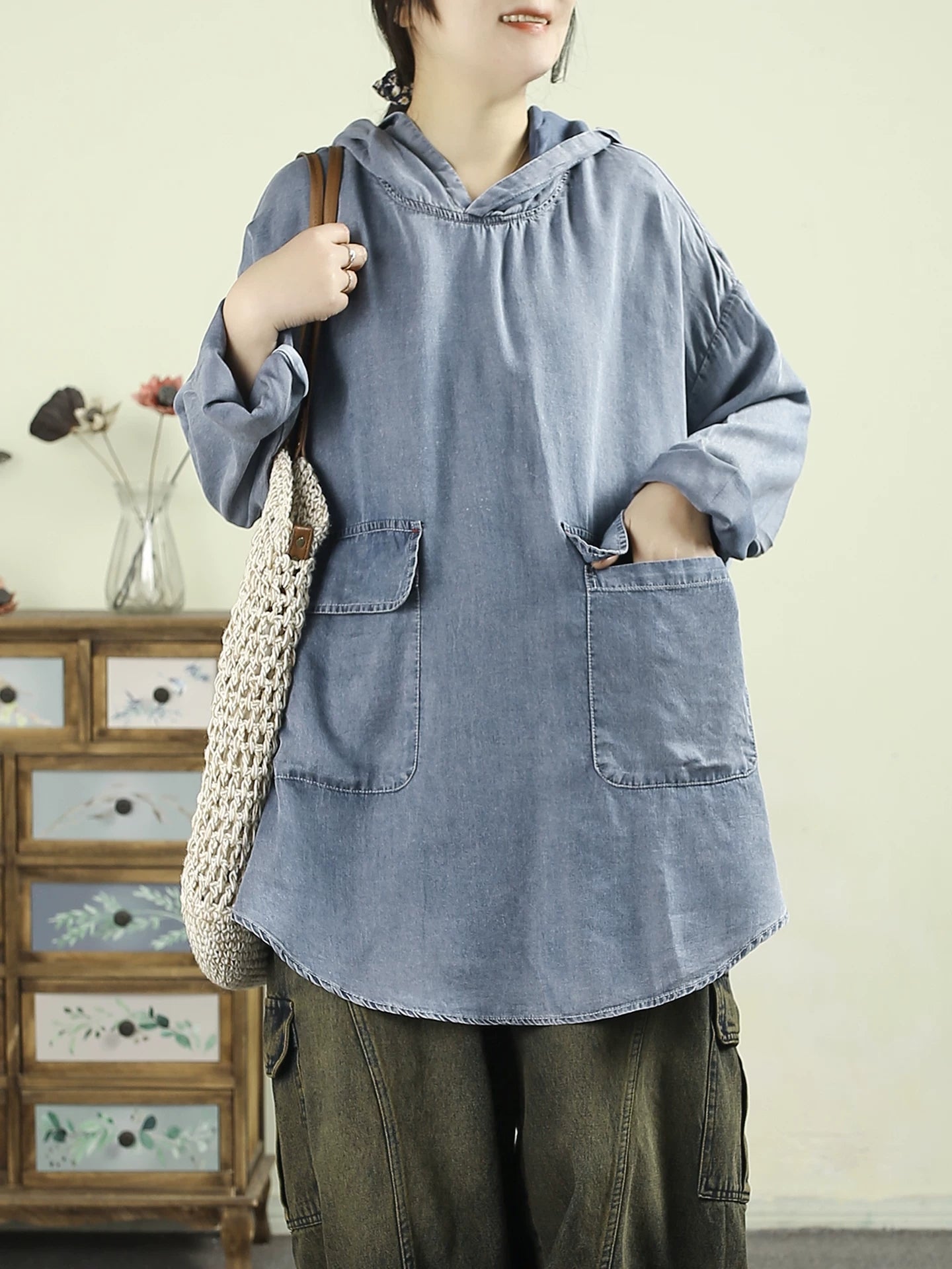 Kvinders forårshættetrøje i kunstnerisk, ren farve i 90% bomuld
