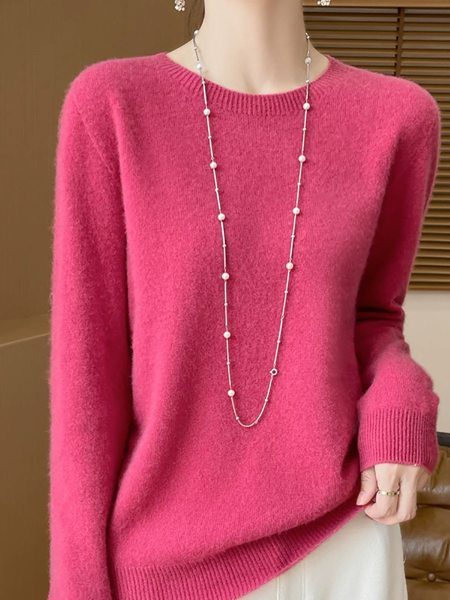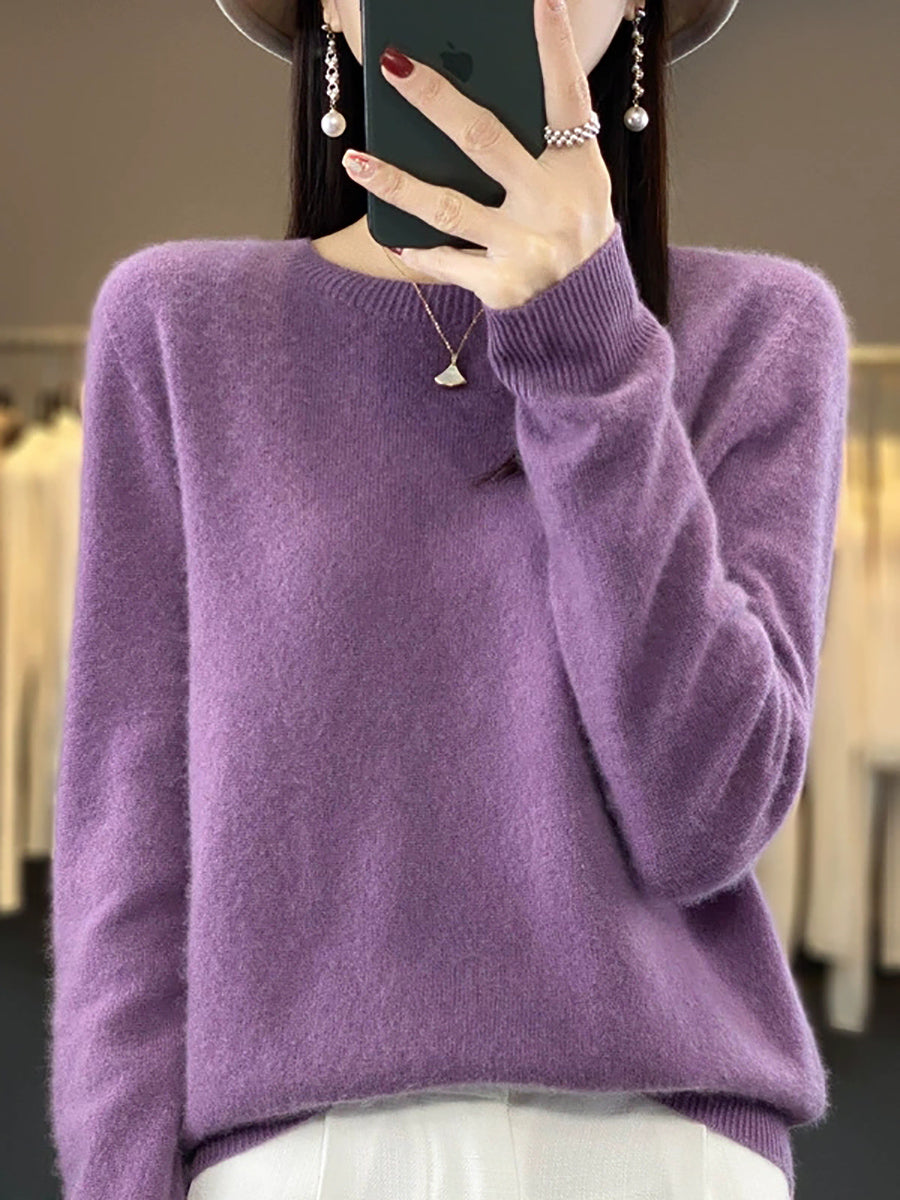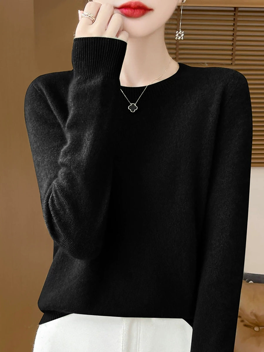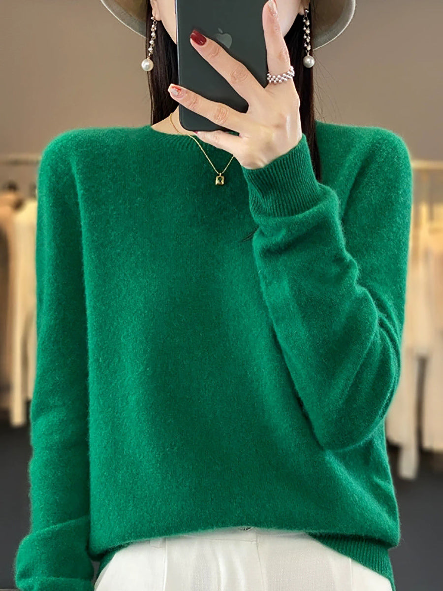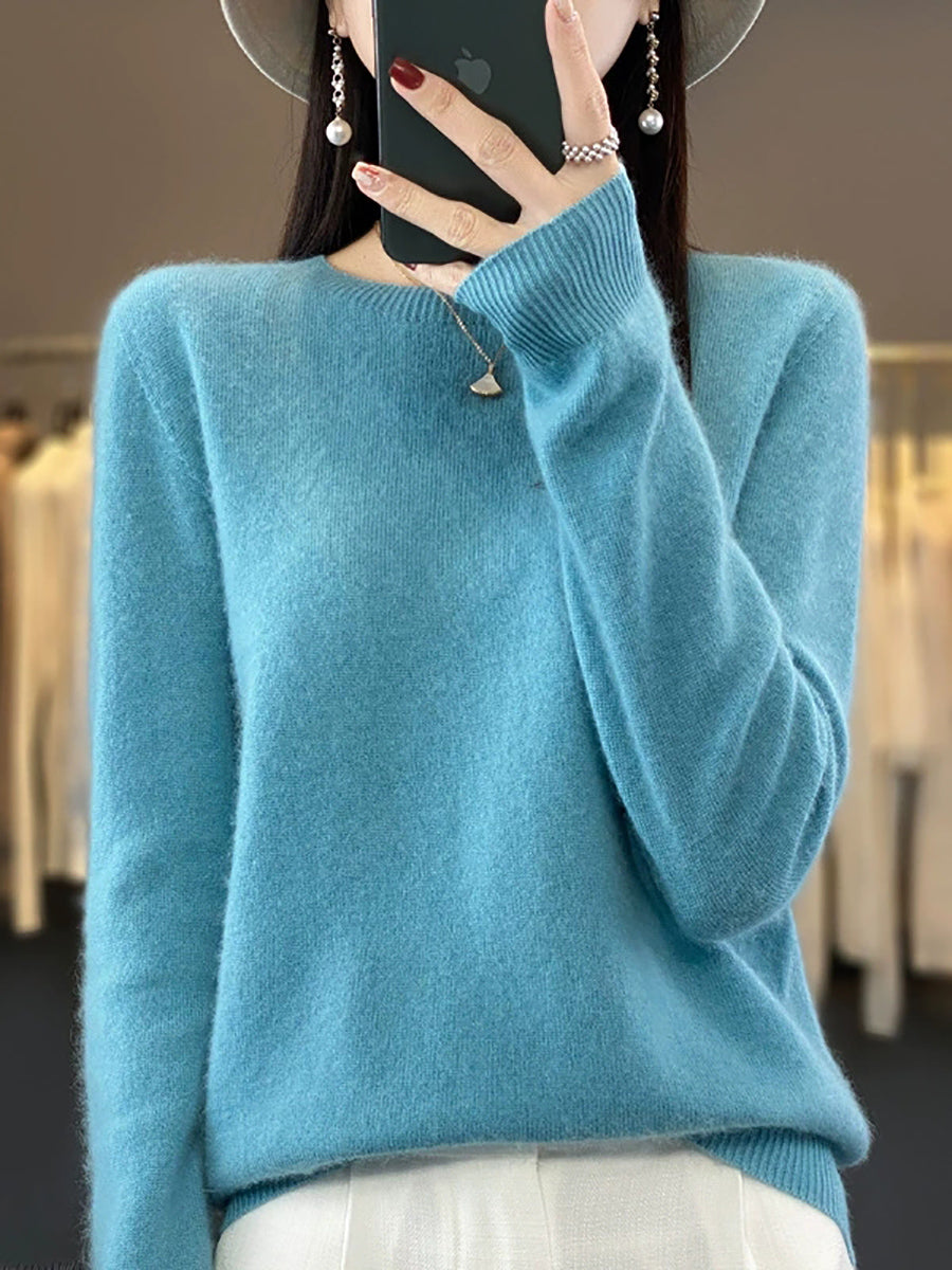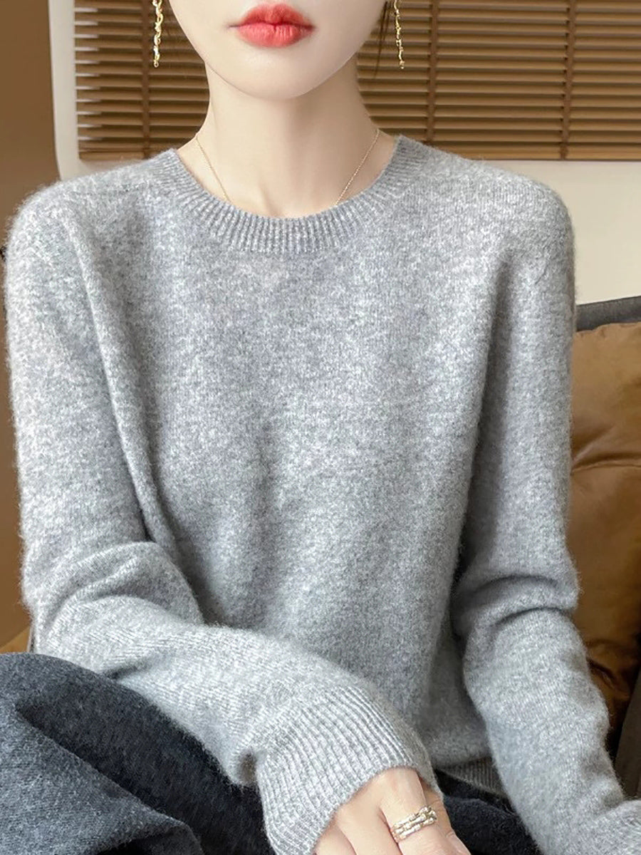 Kvinder Forårs Casual Ren Farve O-hals Sweater